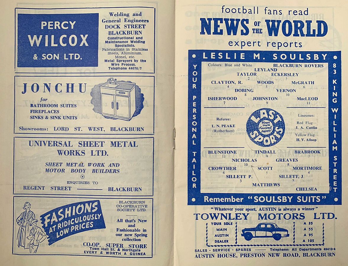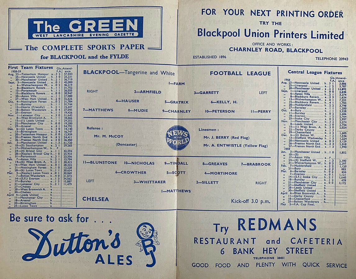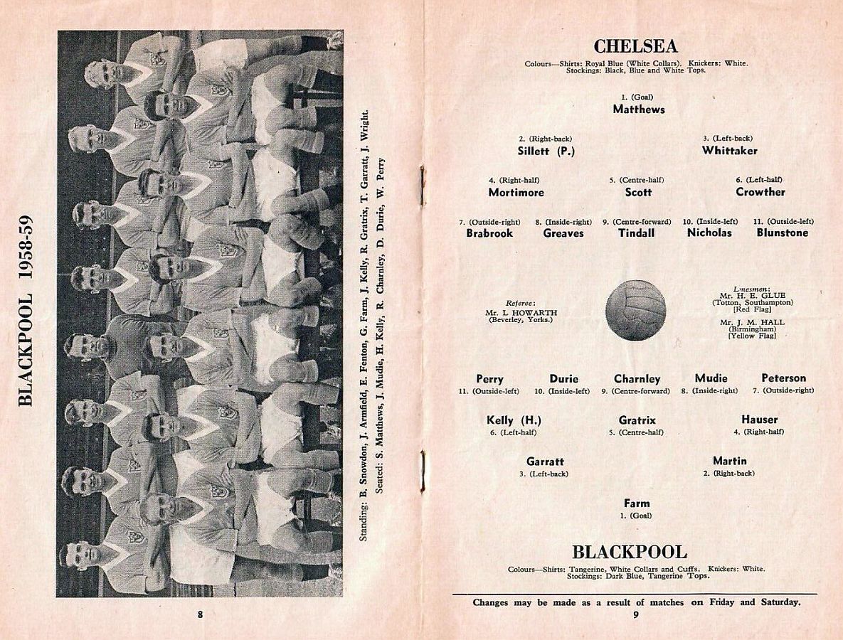 George Farm, Jimmy Armfield, Tommy Garrett, Peter Hauser, Roy Gratrix, Hugh Kelly, Stanley Matthews, Jackie Mudie, Ray Charnley, Brian Peterson, Bill Perry |