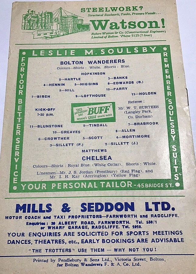 Nigel Sims, Stan Lynn, John Sharples, Gordon Lee, Jimmy Dugdale, Pat Saward, Les Smith, Gerry Hitchens, Johnny Dixon, Wally Hazelden, Peter McParland |