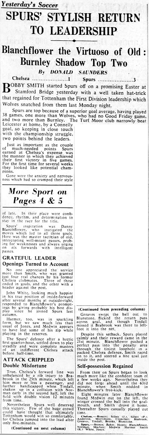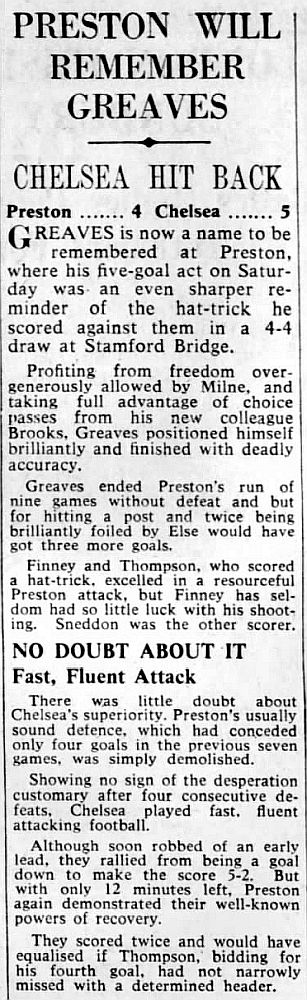 Greaves 4, Greaves 6, Blunstone 32, Greaves 90 |