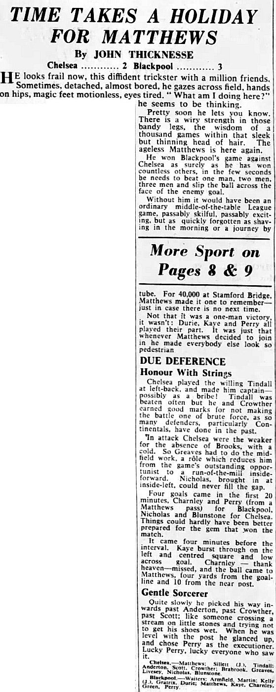Tony Waiters, Jimmy Armfield, Barrie Martin, Jimmy Kelly, Roy Gratrix, Dave Durie, Stanley Matthews, Arthur Kaye, Ray Charnley, Johnny Green, Bill Perry |