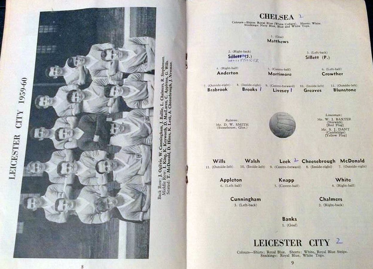 1 Peter Bonetti, 2 John Sillett, 3 Peter Sillett, 4 Sylvan Anderton, 5 John Mortimore, 6 Stan Crowther, 7 Johnny Brooks, 8 Jimmy Greaves, 9 Ron Tindall, 10 Derek Gibbs, 11 Frank Blunstone |