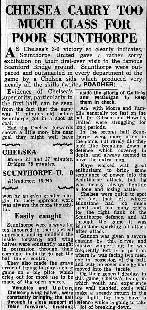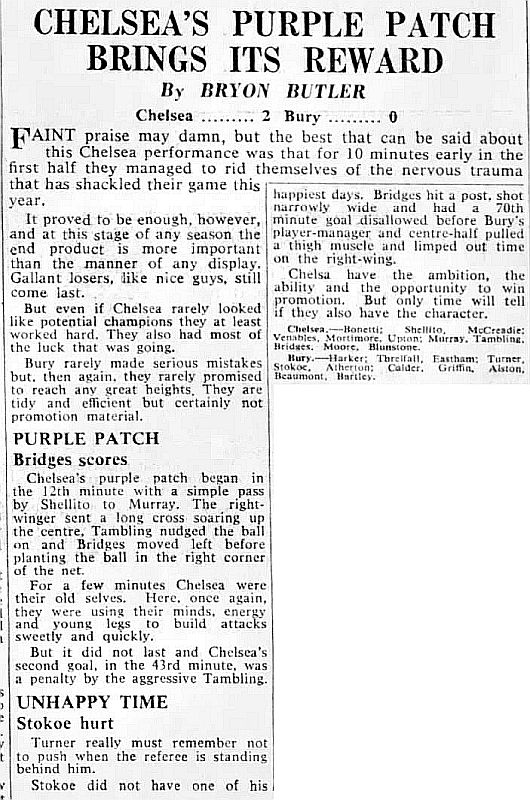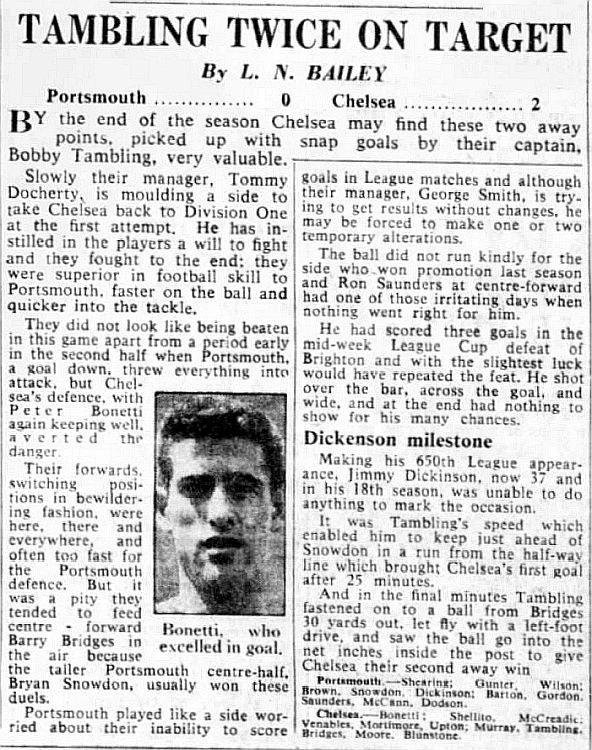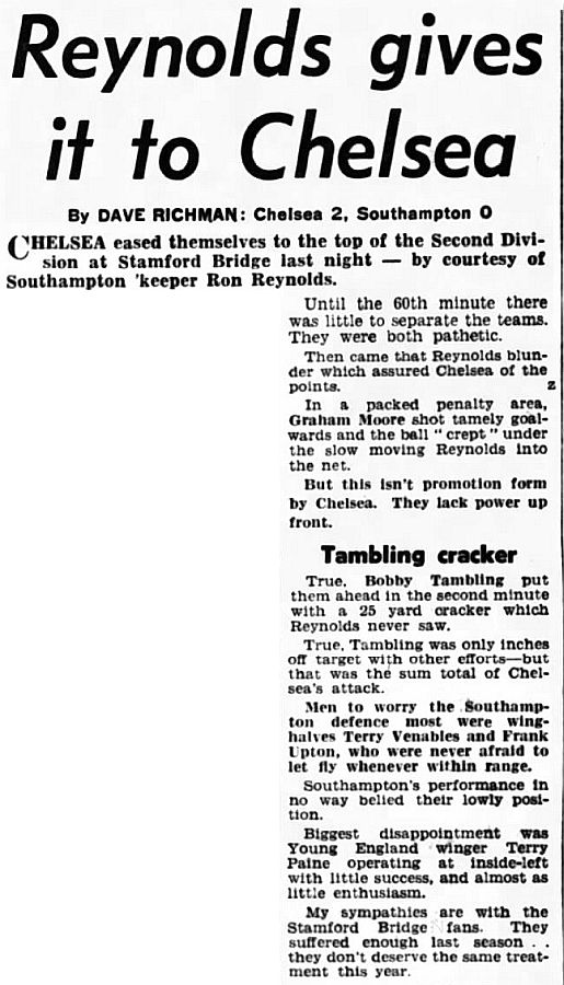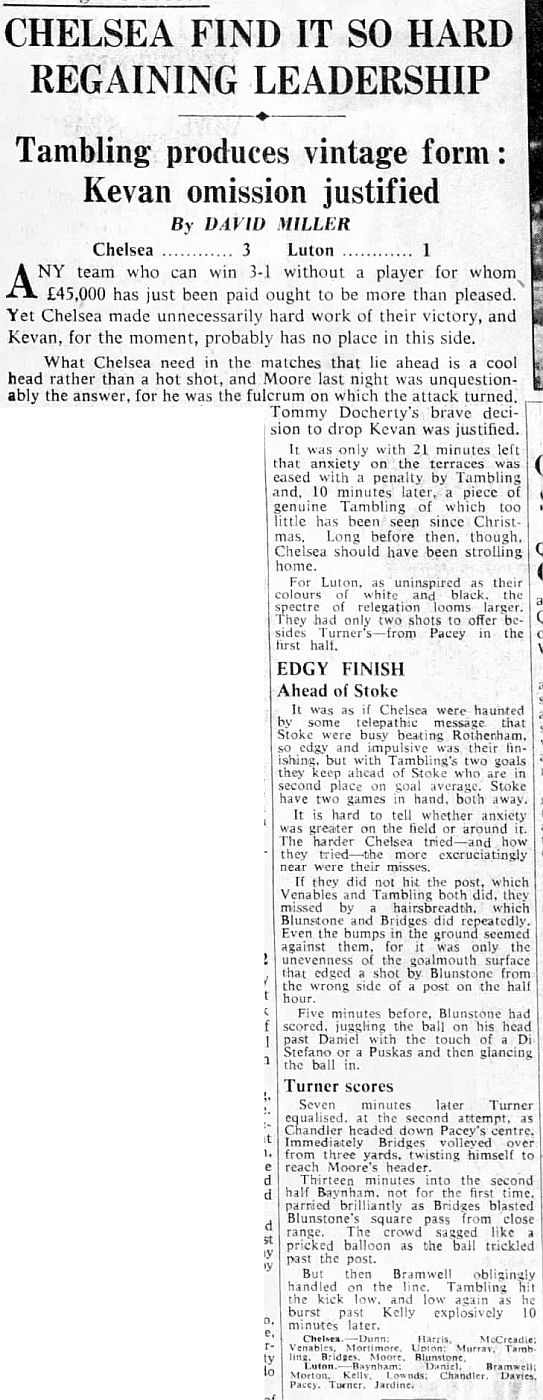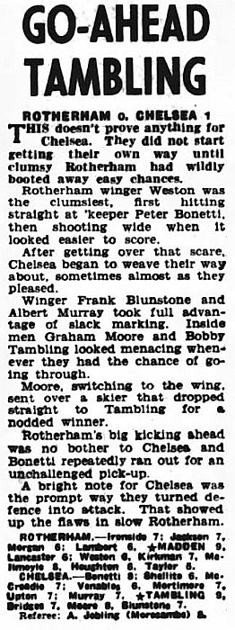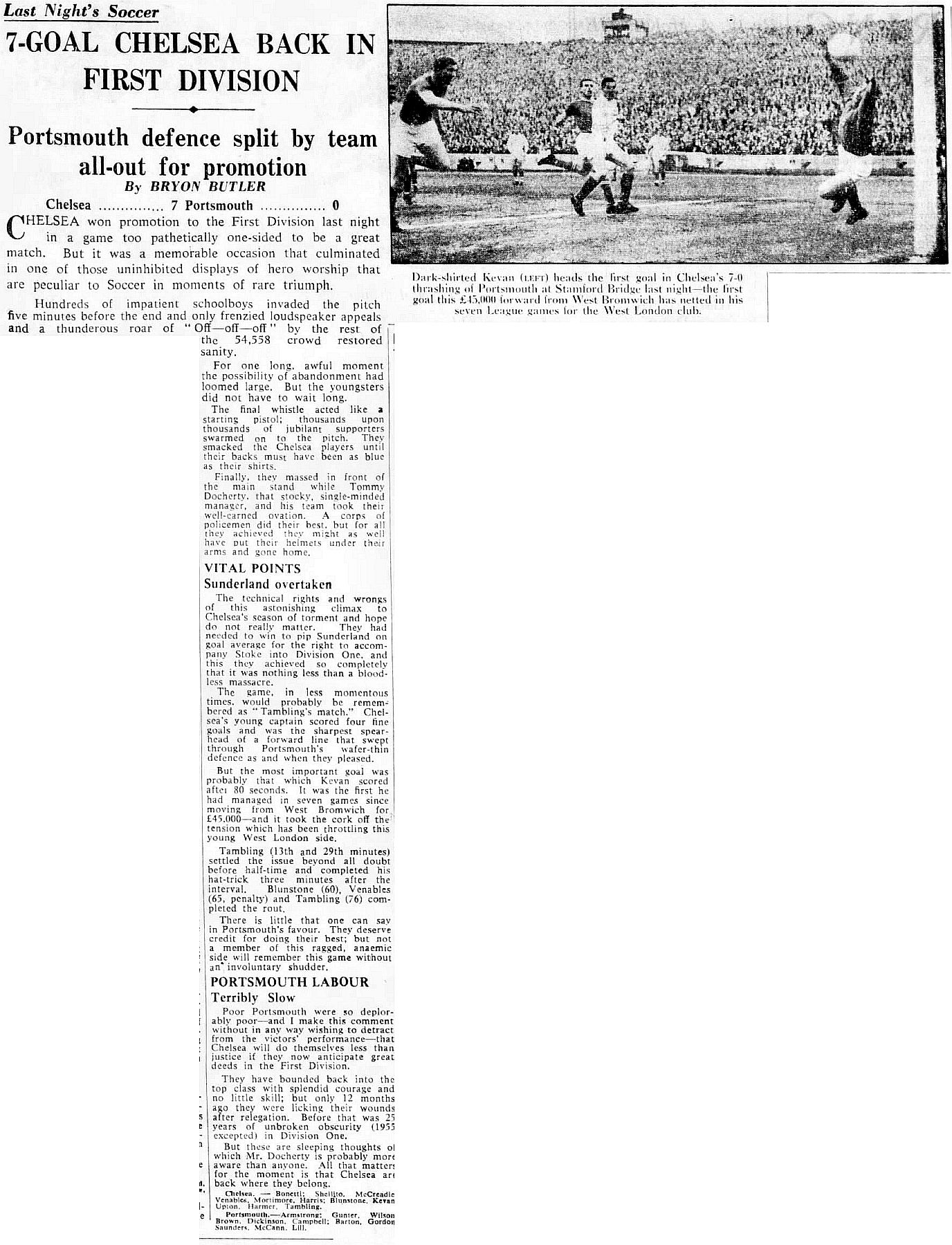 Kevan 2, Tambling 15, Tambling 30, Tambling 48, Blunstone 60, Venables 65 (Pen), Tambling 77 |