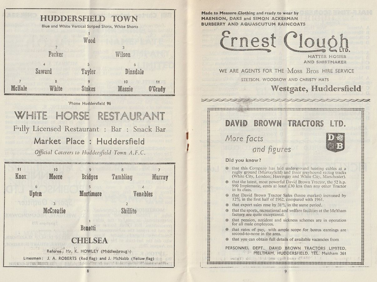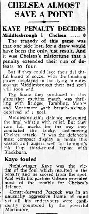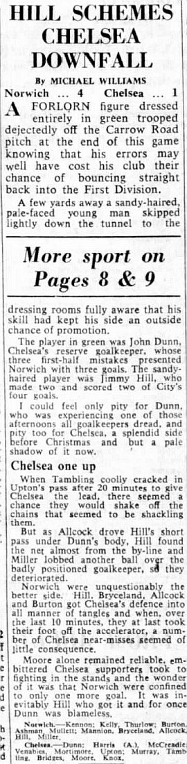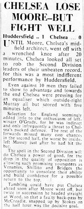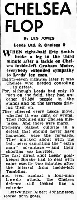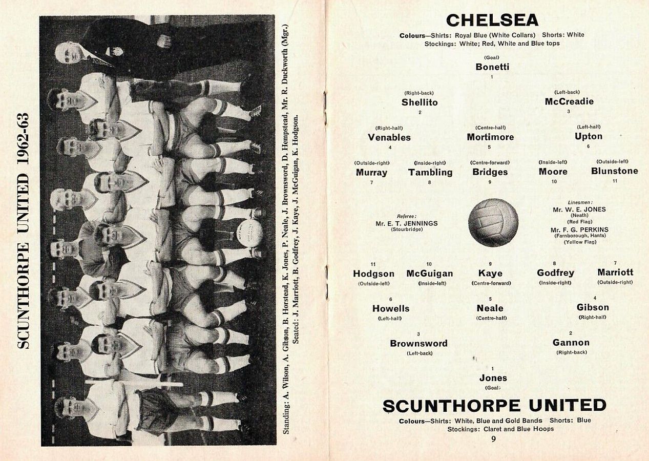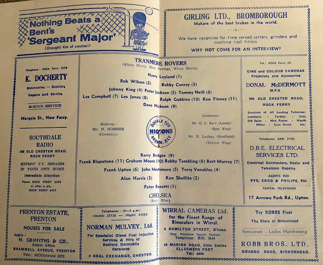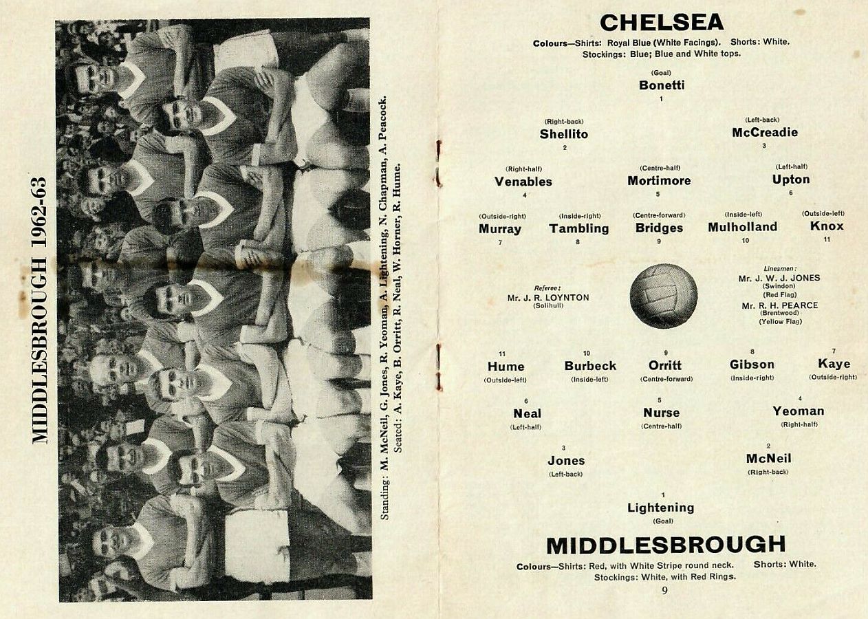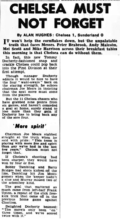 1 John Dunn, 2 Allan Harris, 3 Eddie McCreadie, 4 Terry Venables, 5 John Mortimore, 6 Frank Upton, 7 Bert Murray, 8 Bobby Tambling, 9 Barry Bridges, 10 Graham Moore, 11 Tommy Knox |