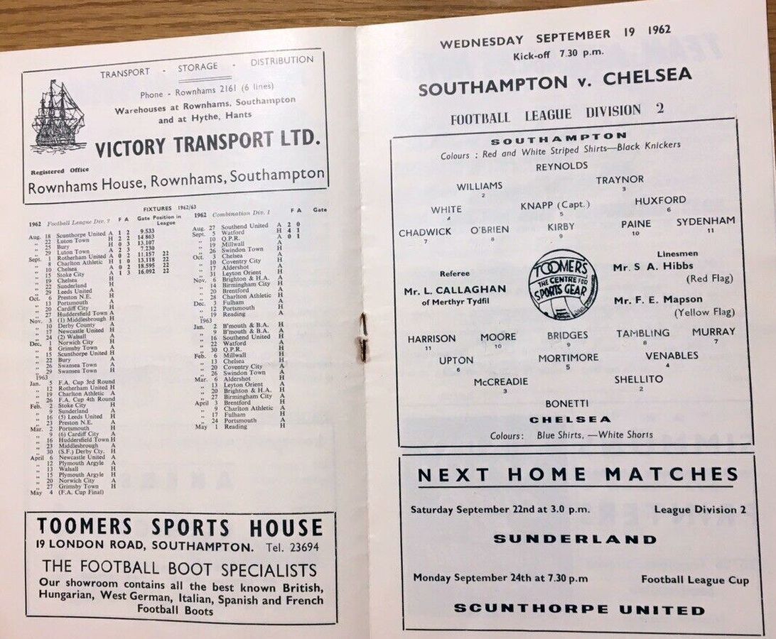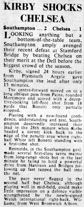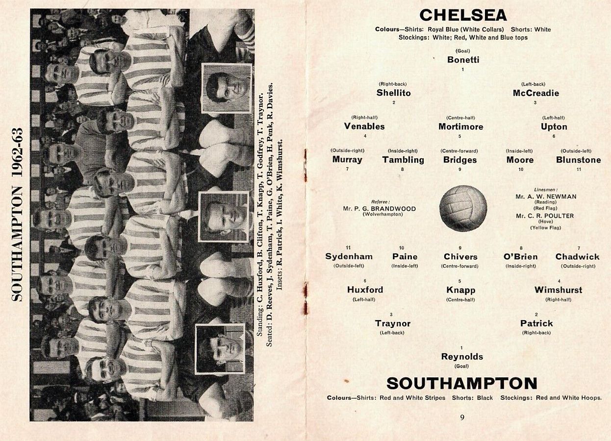 Ron Reynolds, Roy Patrick, Tommy Traynor, Ken Wimshurst, Tony Knapp, Cliff Huxford, Dave Chadwick, George O'Brien, Martin Chivers, Terry Paine, John Sydenham |