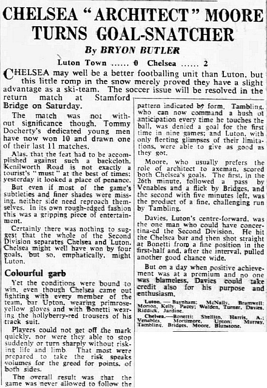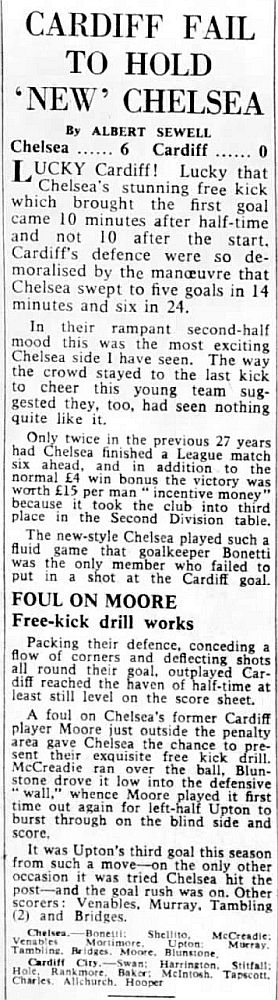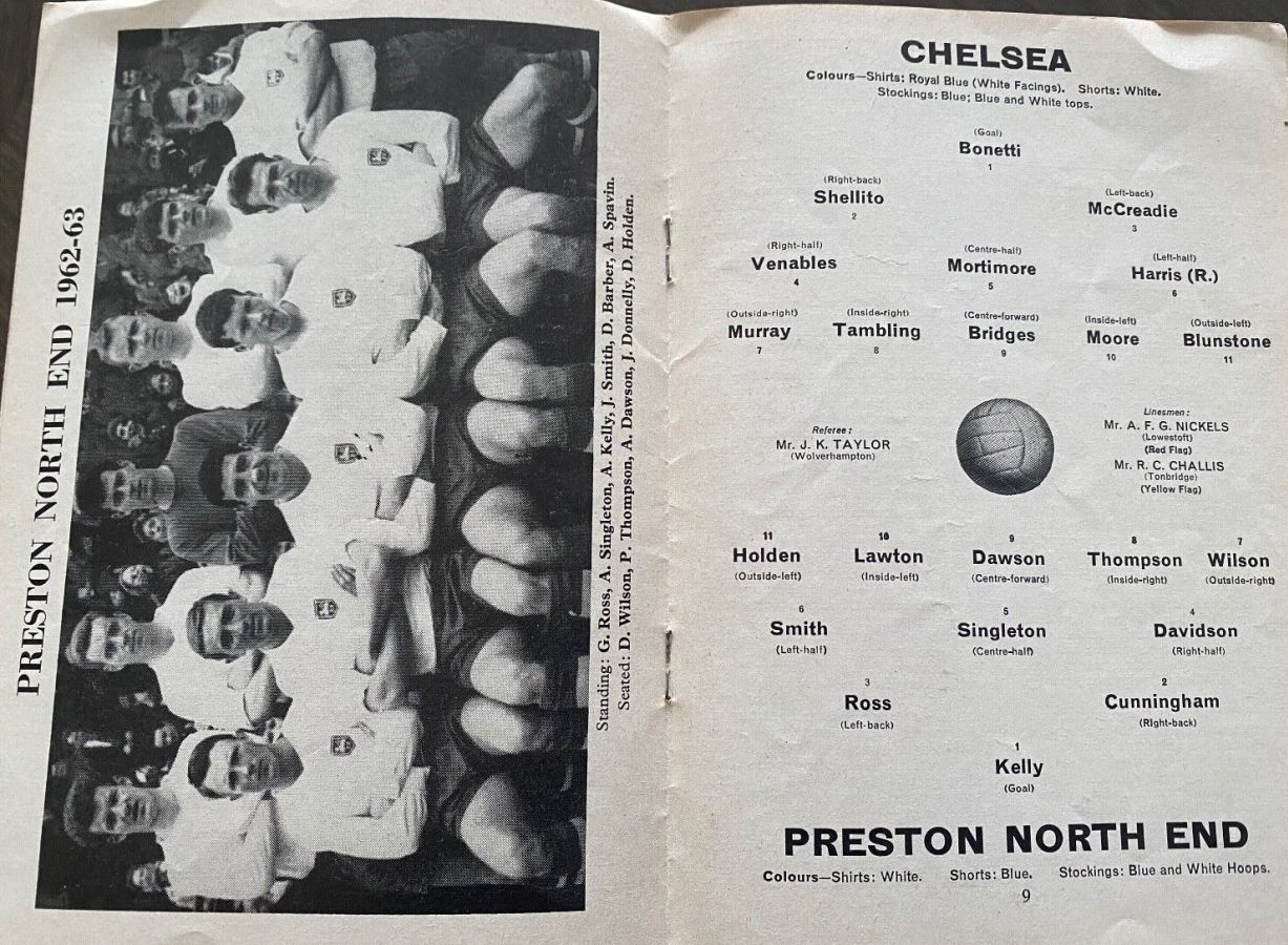 1 Peter Bonetti, 2 Ken Shellito, 3 Eddie McCreadie, 4 Terry Venables, 5 John Mortimore, 6 Frank Upton, 7 Bert Murray, 8 Bobby Tambling, 9 Barry Bridges, 10 Graham Moore, 11 Frank Blunstone |