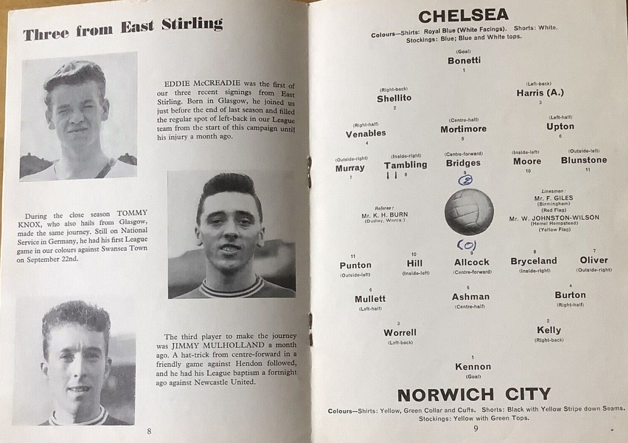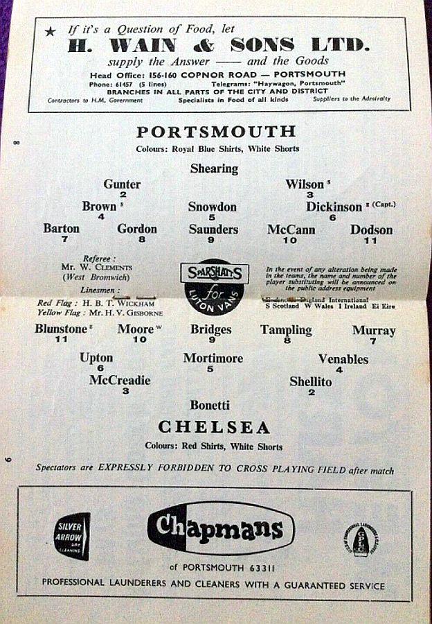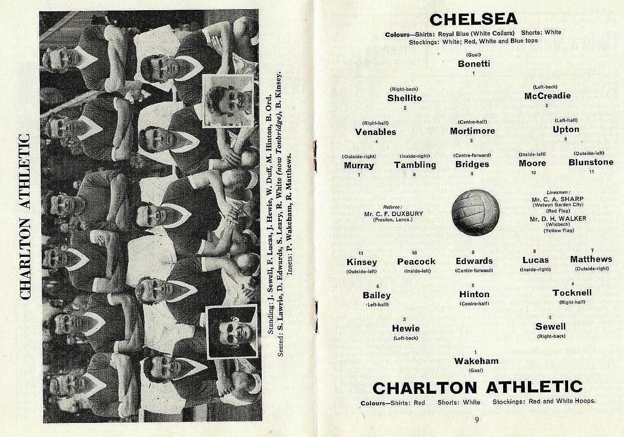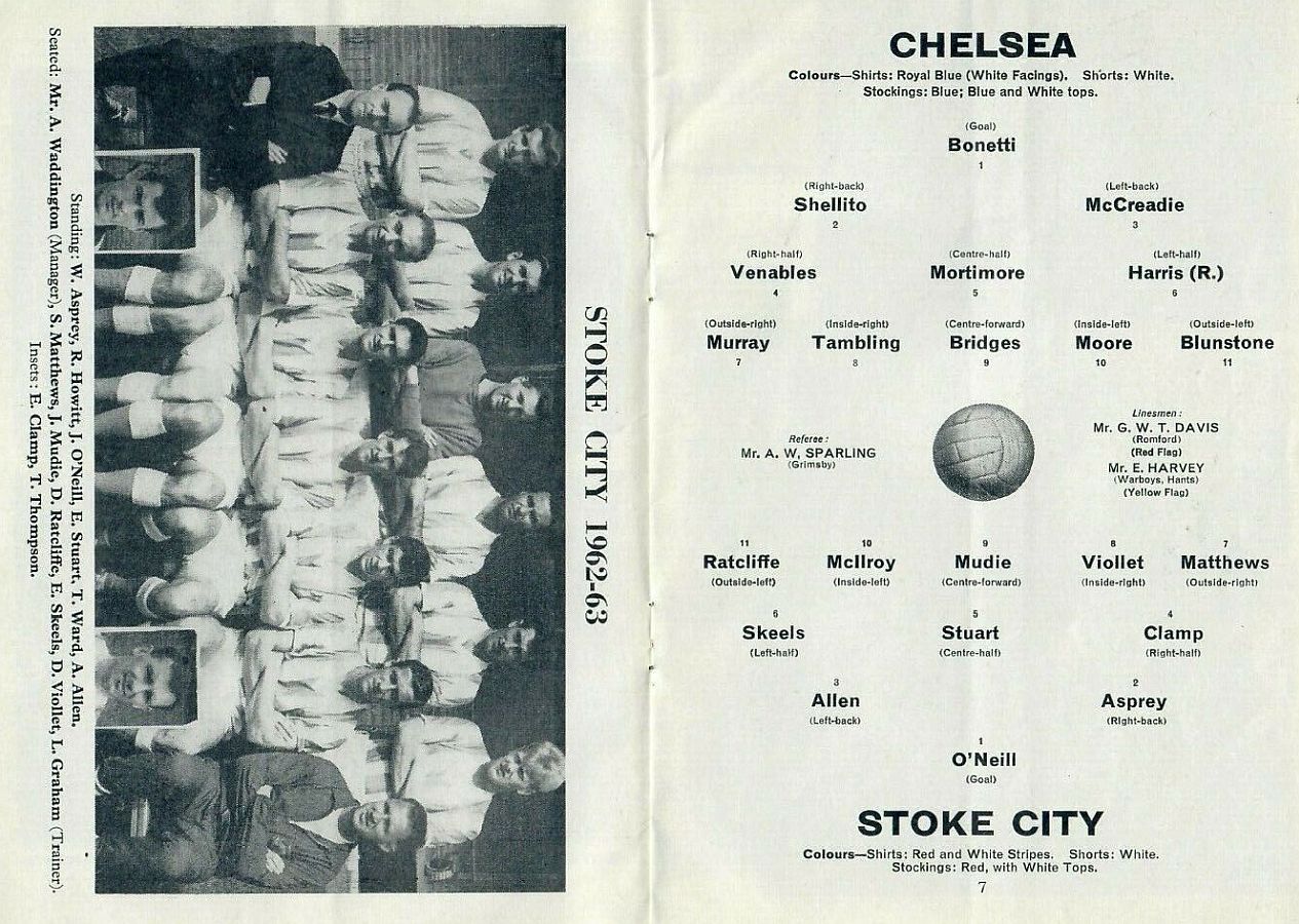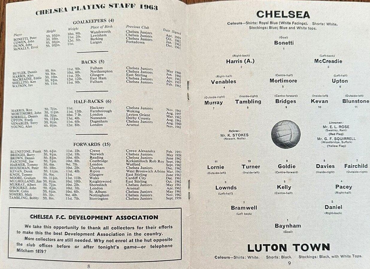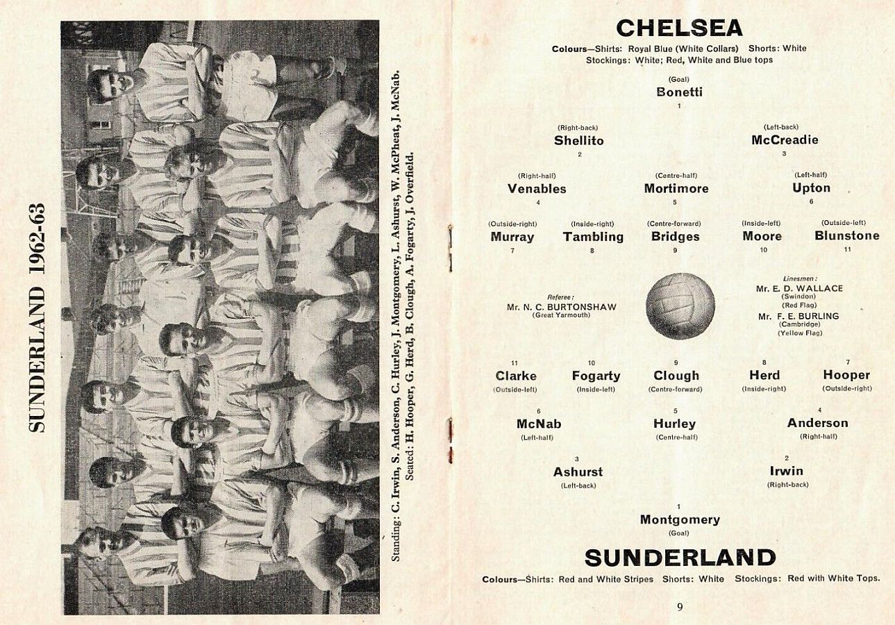 1 John Dunn, 2 Dennis Butler, 3 Eddie McCreadie, 4 Terry Venables, 5 John Mortimore, 6 Frank Upton, 7 Bert Murray, 8 Bobby Tambling, 9 Derek Kevan, 10 Tommy Harmer, 11 Frank Blunstone |