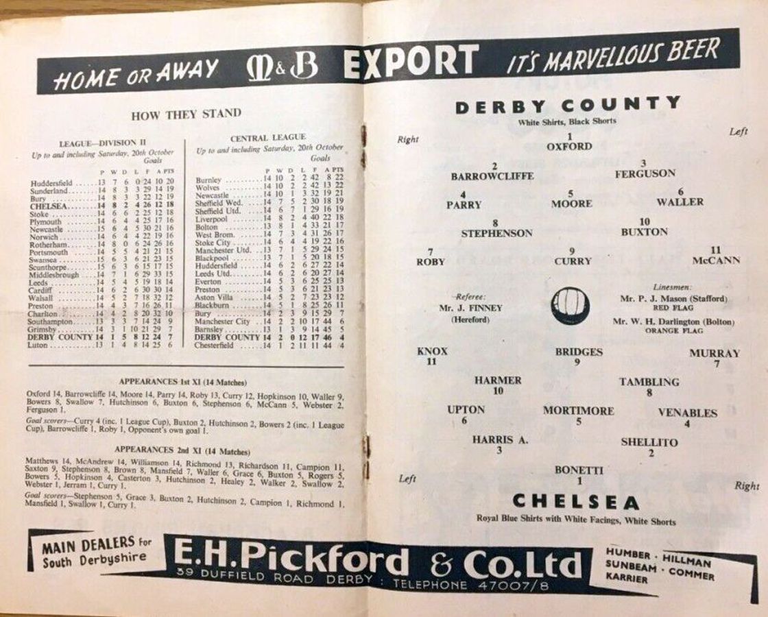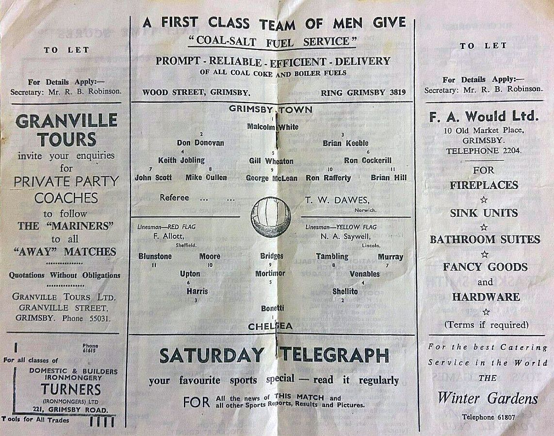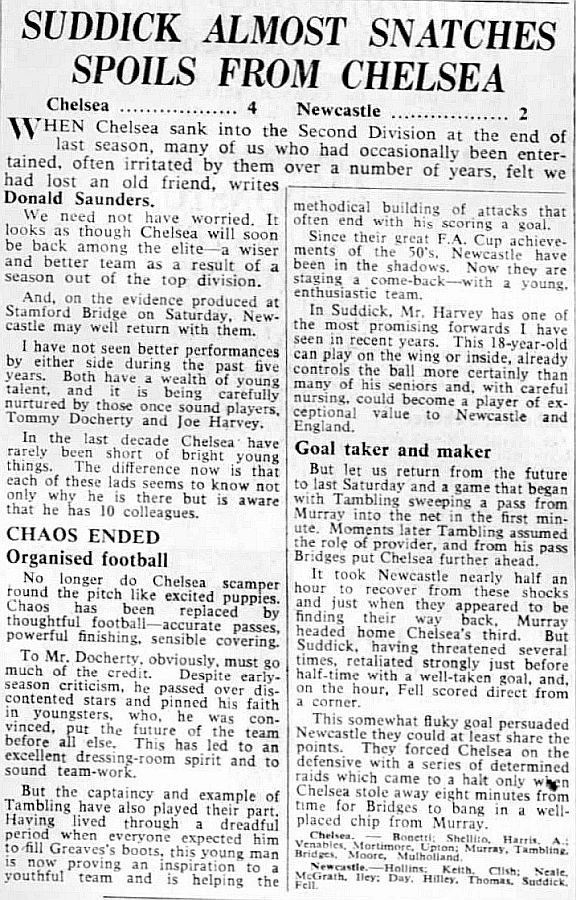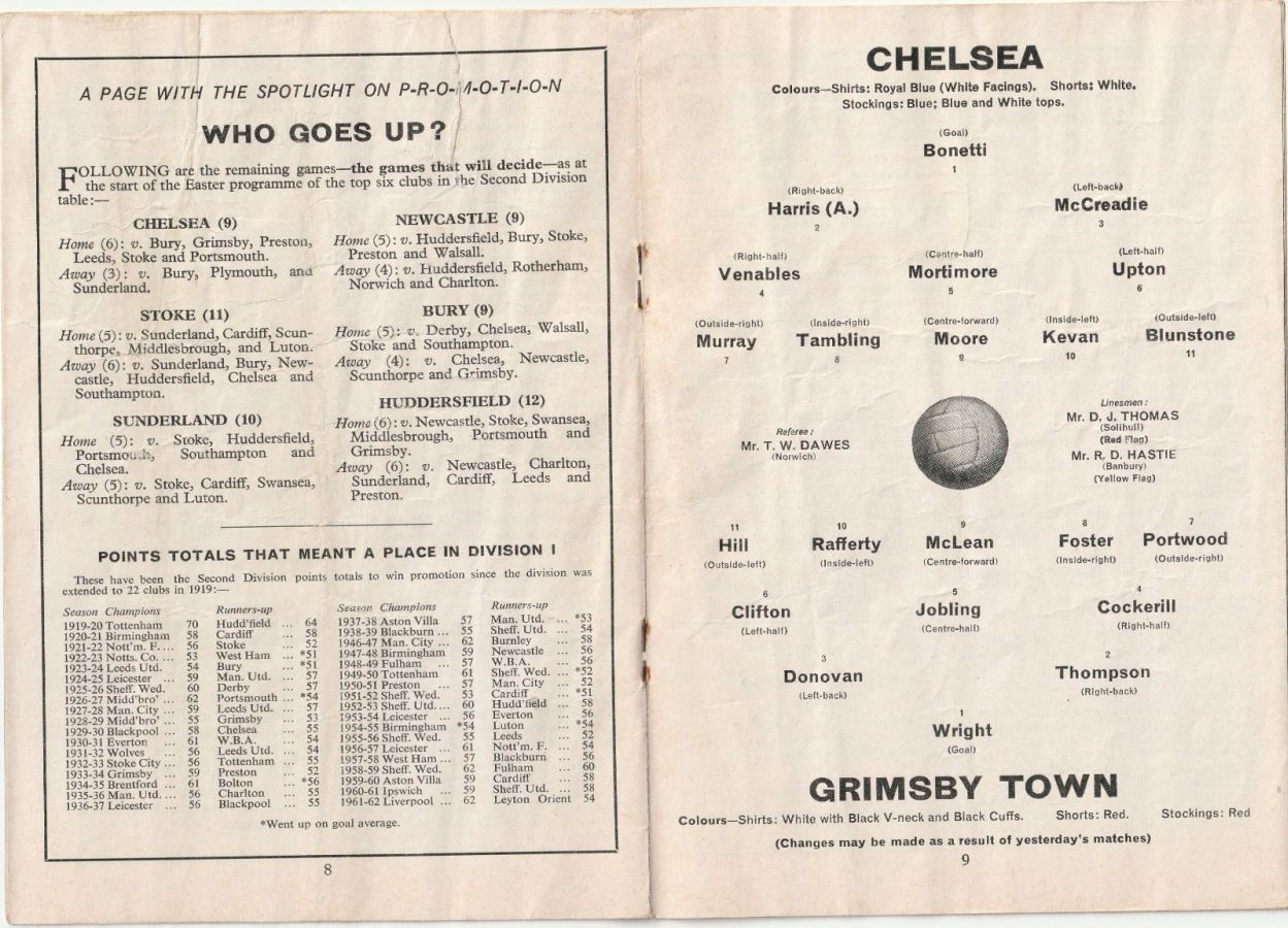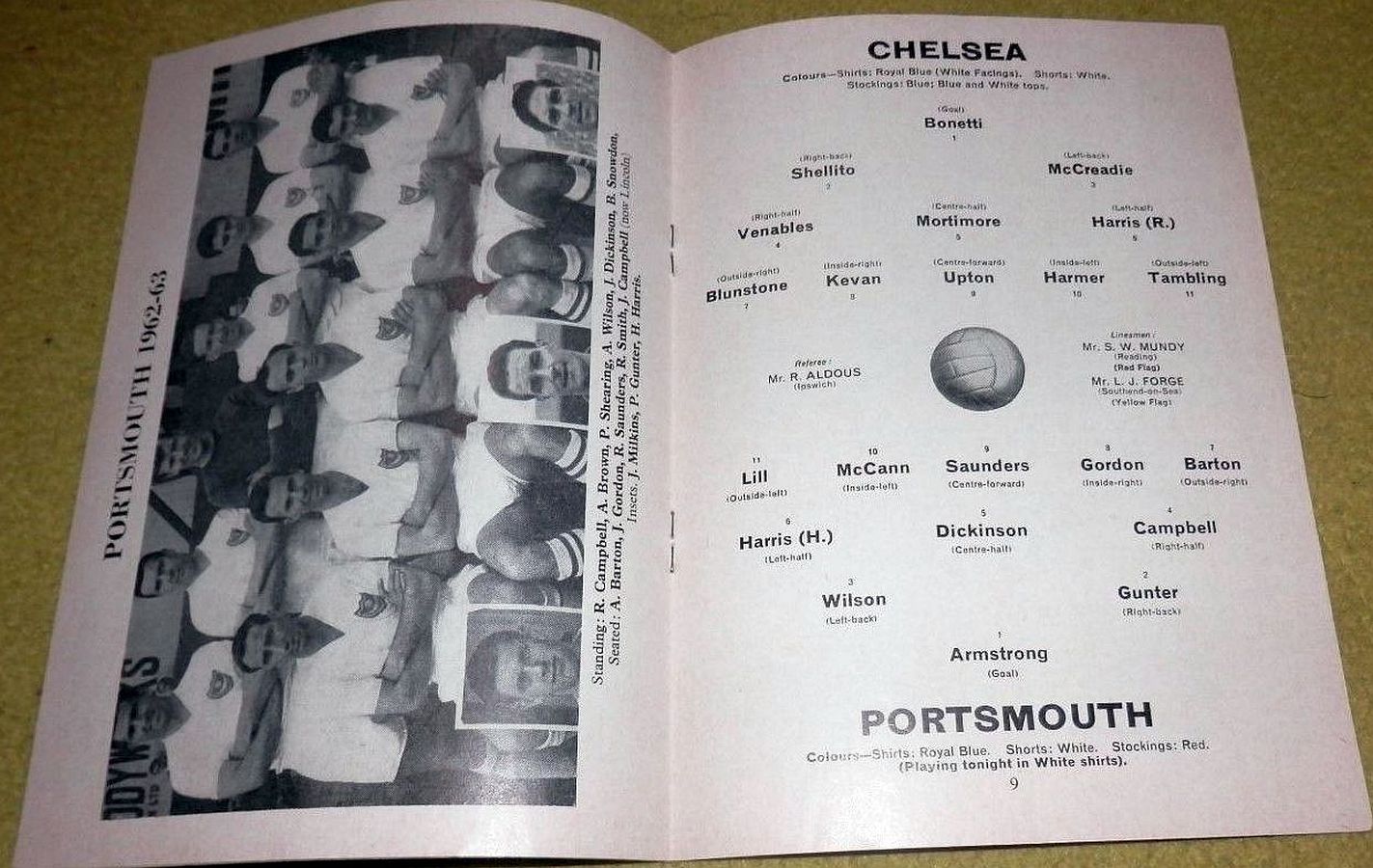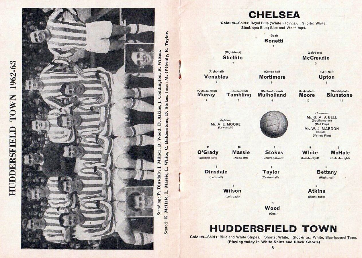 1 John Dunn, 2 Dennis Butler, 3 Eddie McCreadie, 4 Terry Venables, 5 John Mortimore, 6 Frank Upton, 7 Bert Murray, 8 Bobby Tambling, 9 Derek Kevan, 10 Tommy Harmer, 11 Frank Blunstone |