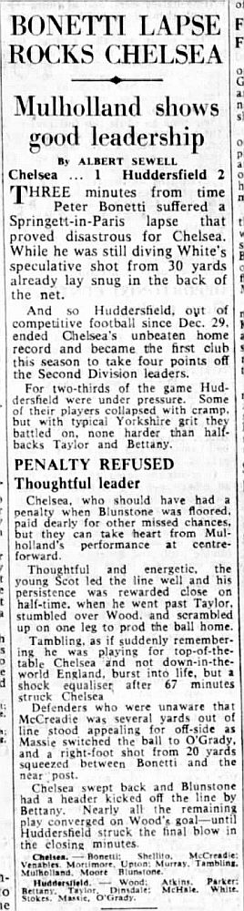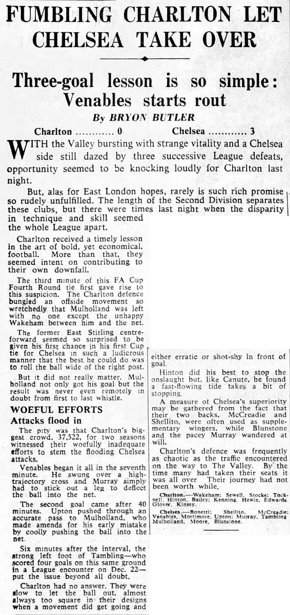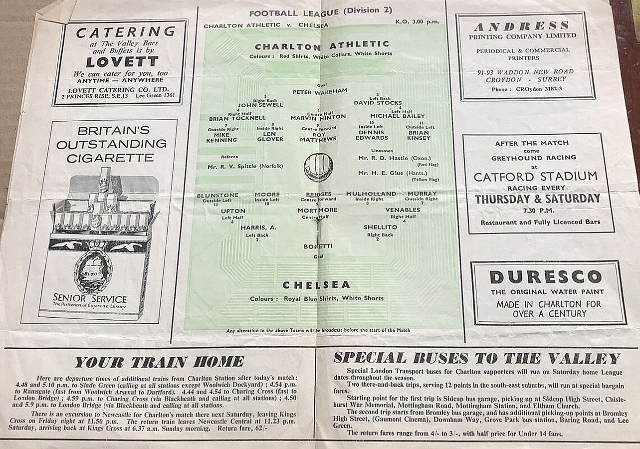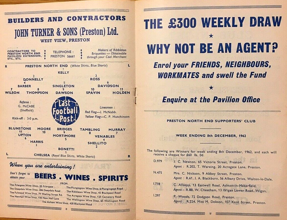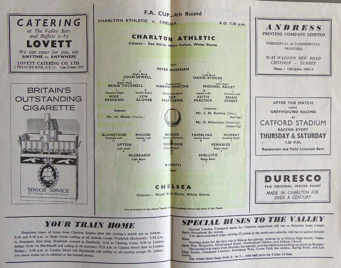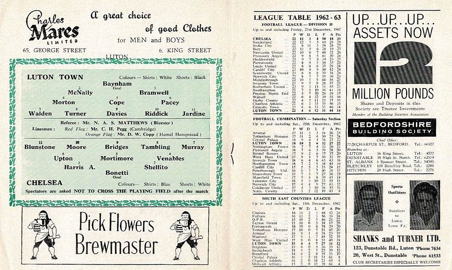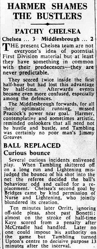 1 John Dunn, 2 Dennis Butler, 3 Eddie McCreadie, 4 Terry Venables, 5 John Mortimore, 6 Frank Upton, 7 Bert Murray, 8 Bobby Tambling, 9 Derek Kevan, 10 Tommy Harmer, 11 Frank Blunstone |