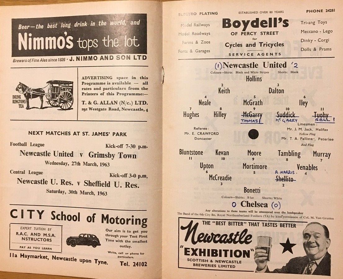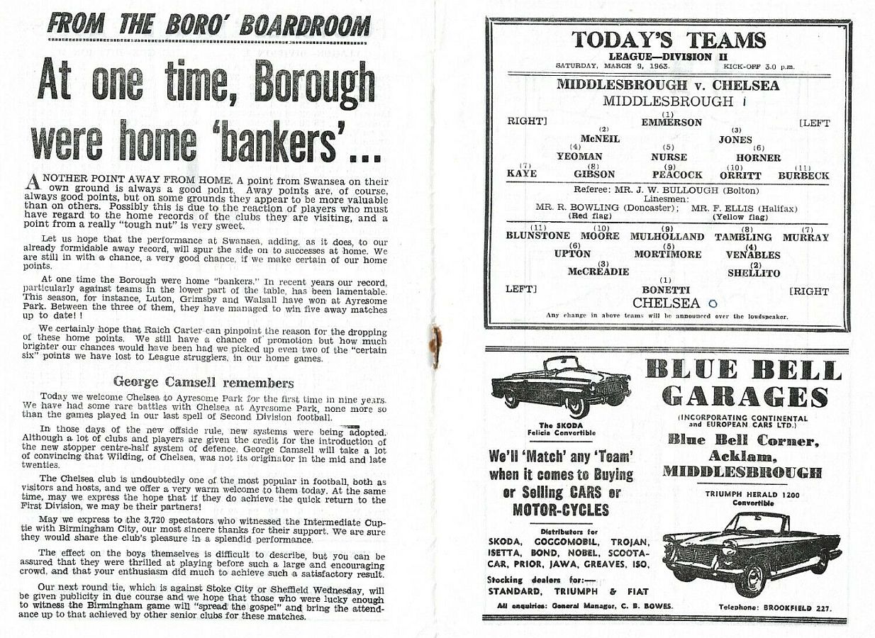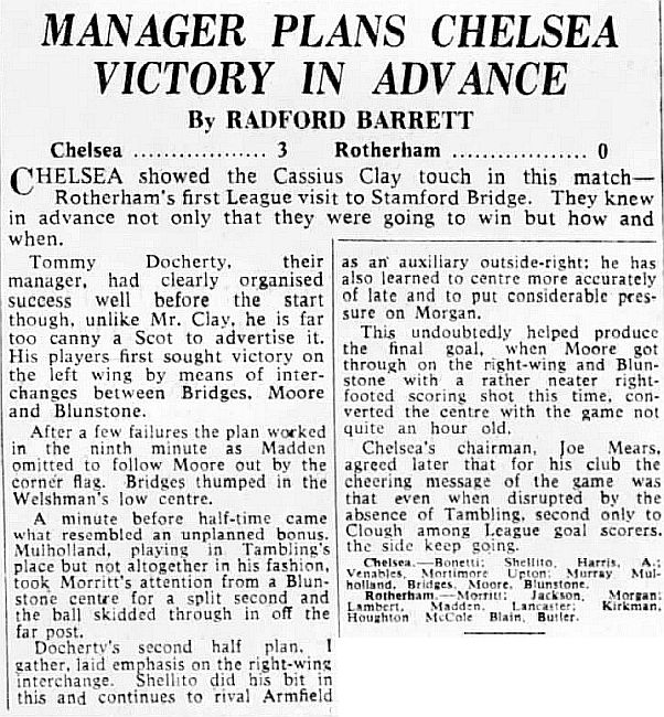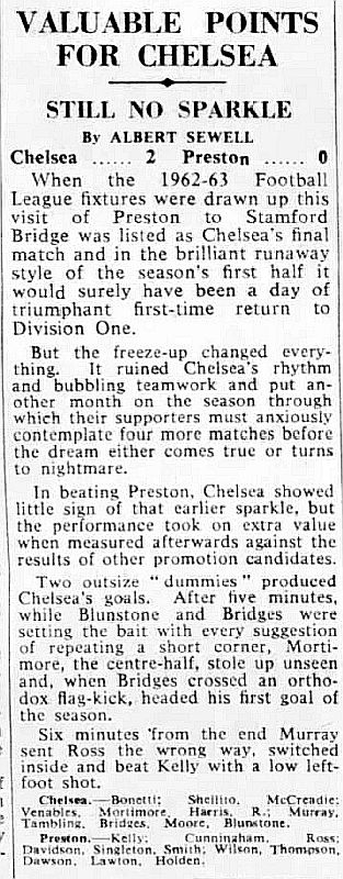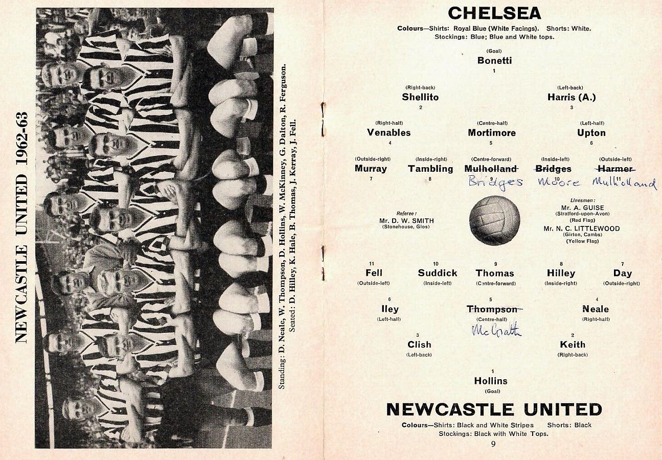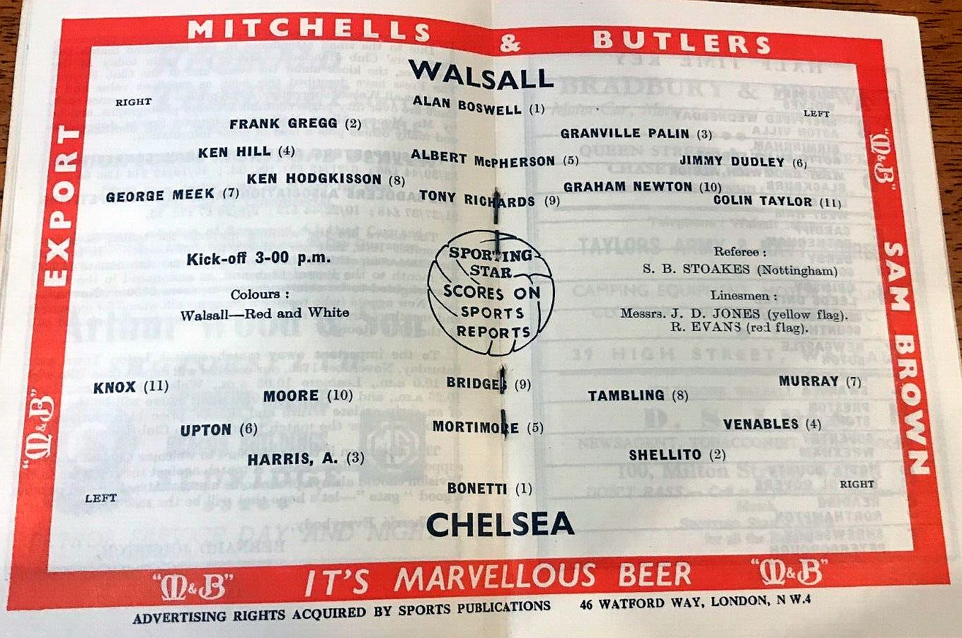 1 John Dunn, 2 Allan Harris, 3 Eddie McCreadie, 4 Terry Venables, 5 John Mortimore, 6 Frank Upton, 7 Bert Murray, 8 Bobby Tambling, 9 Barry Bridges, 10 Graham Moore, 11 Frank Blunstone |