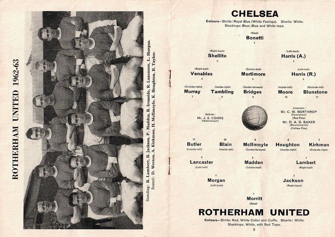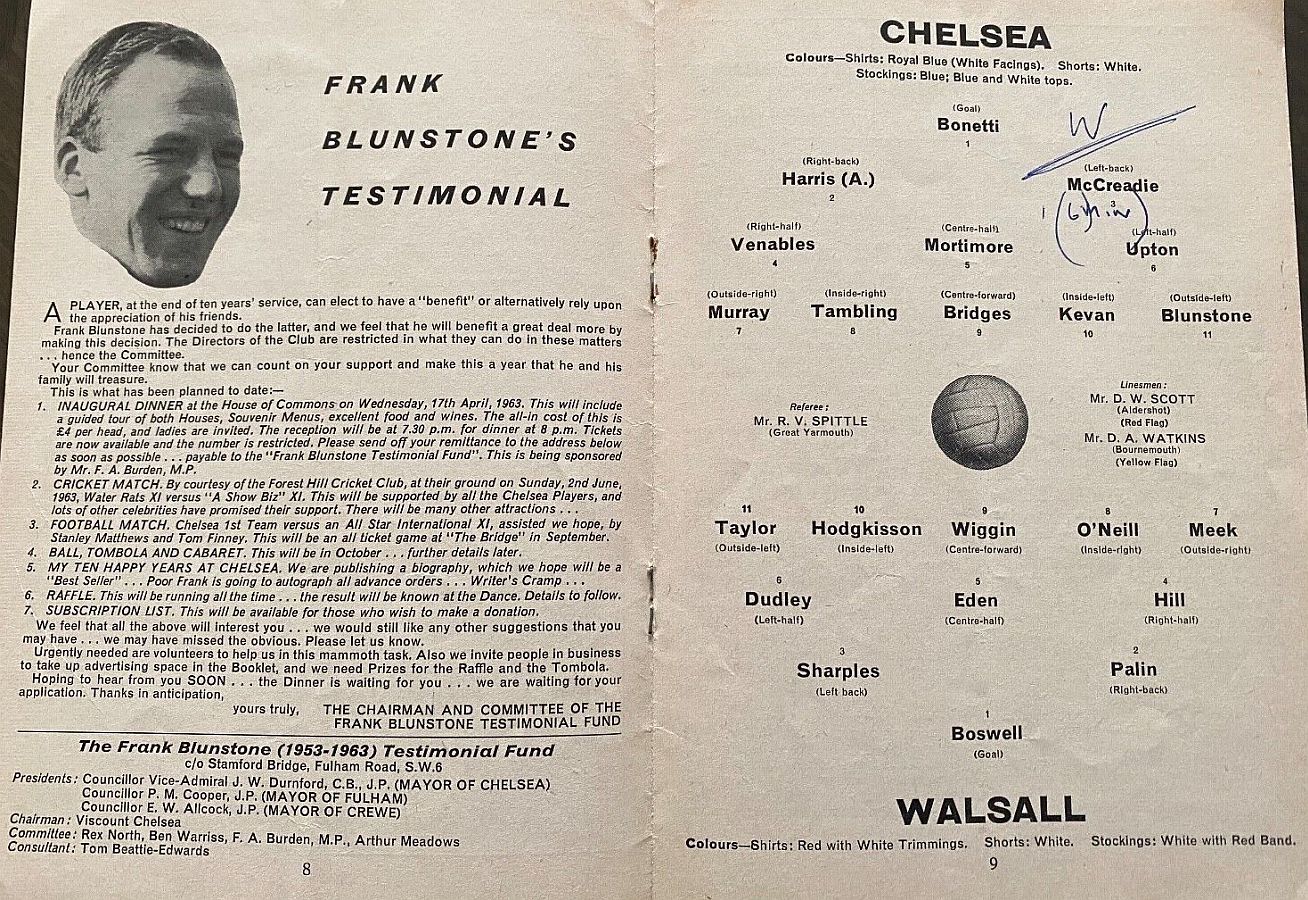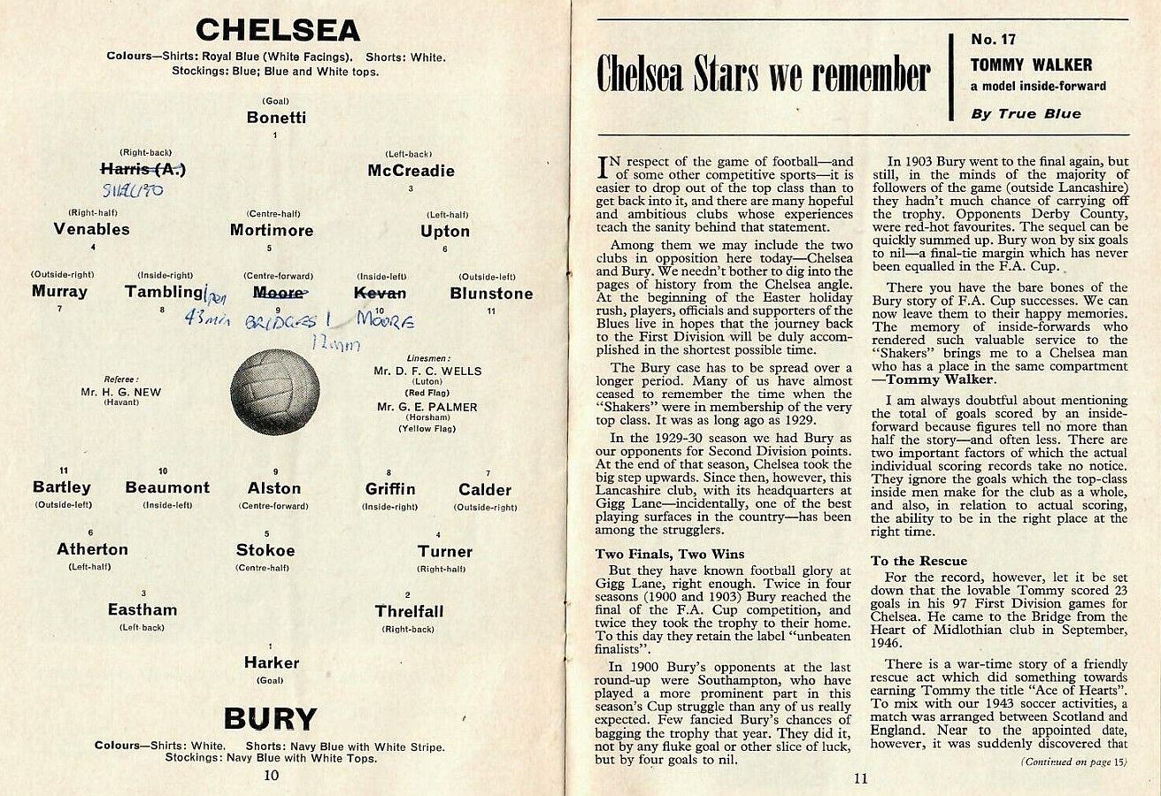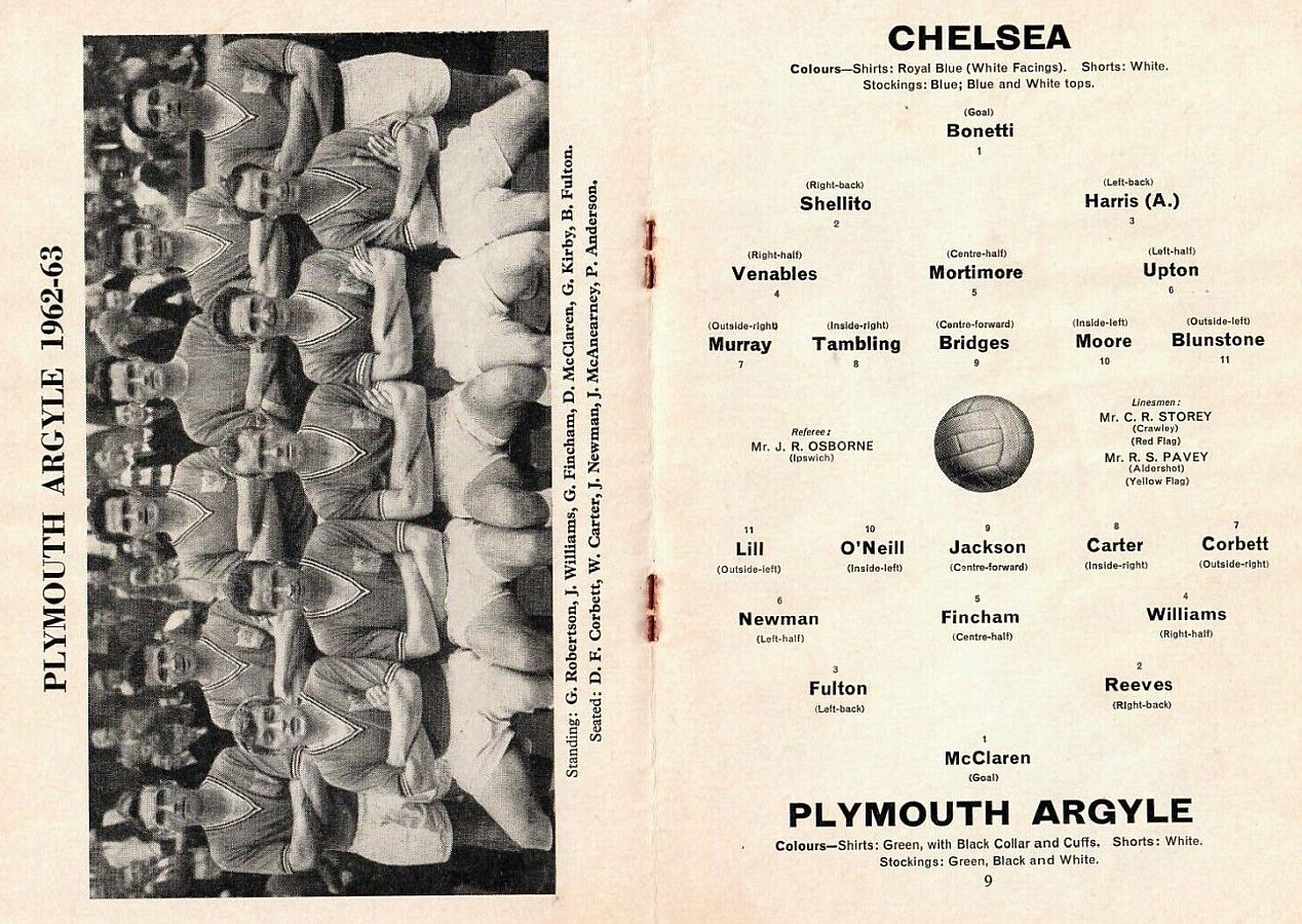 1 Peter Bonetti, 2 Ken Shellito, 3 Eddie McCreadie, 4 Terry Venables, 5 John Mortimore, 6 Frank Upton, 7 Bert Murray, 8 Bobby Tambling, 9 Graham Moore, 10 Derek Kevan, 11 Frank Blunstone |