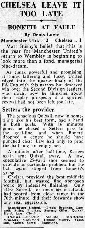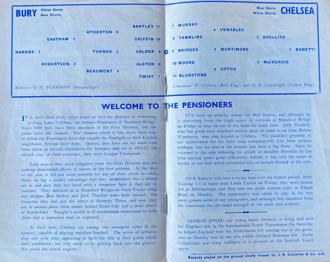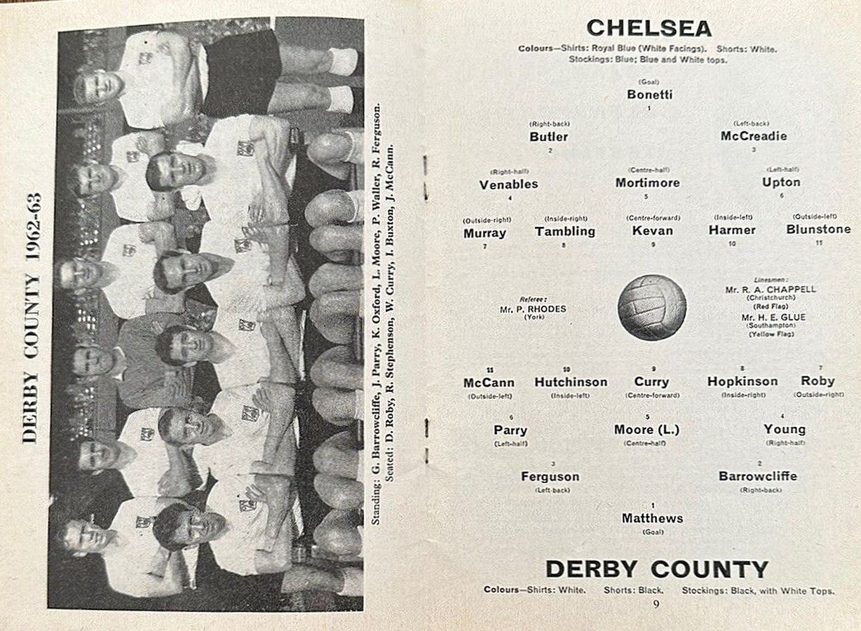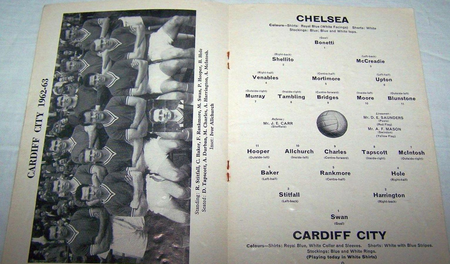 1 Peter Bonetti, 2 Ken Shellito, 3 Eddie McCreadie, 4 Terry Venables, 5 John Mortimore, 6 Frank Upton, 7 Bert Murray, 8 Bobby Tambling, 9 Graham Moore, 10 Derek Kevan, 11 Frank Blunstone |