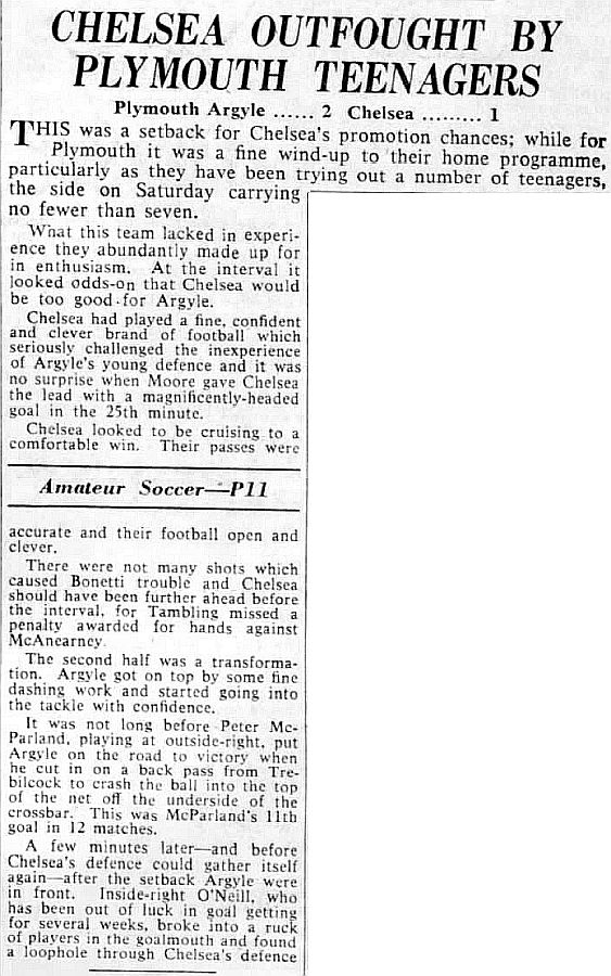 Plymouth Argyle (0) 2 Chelsea (1) 1