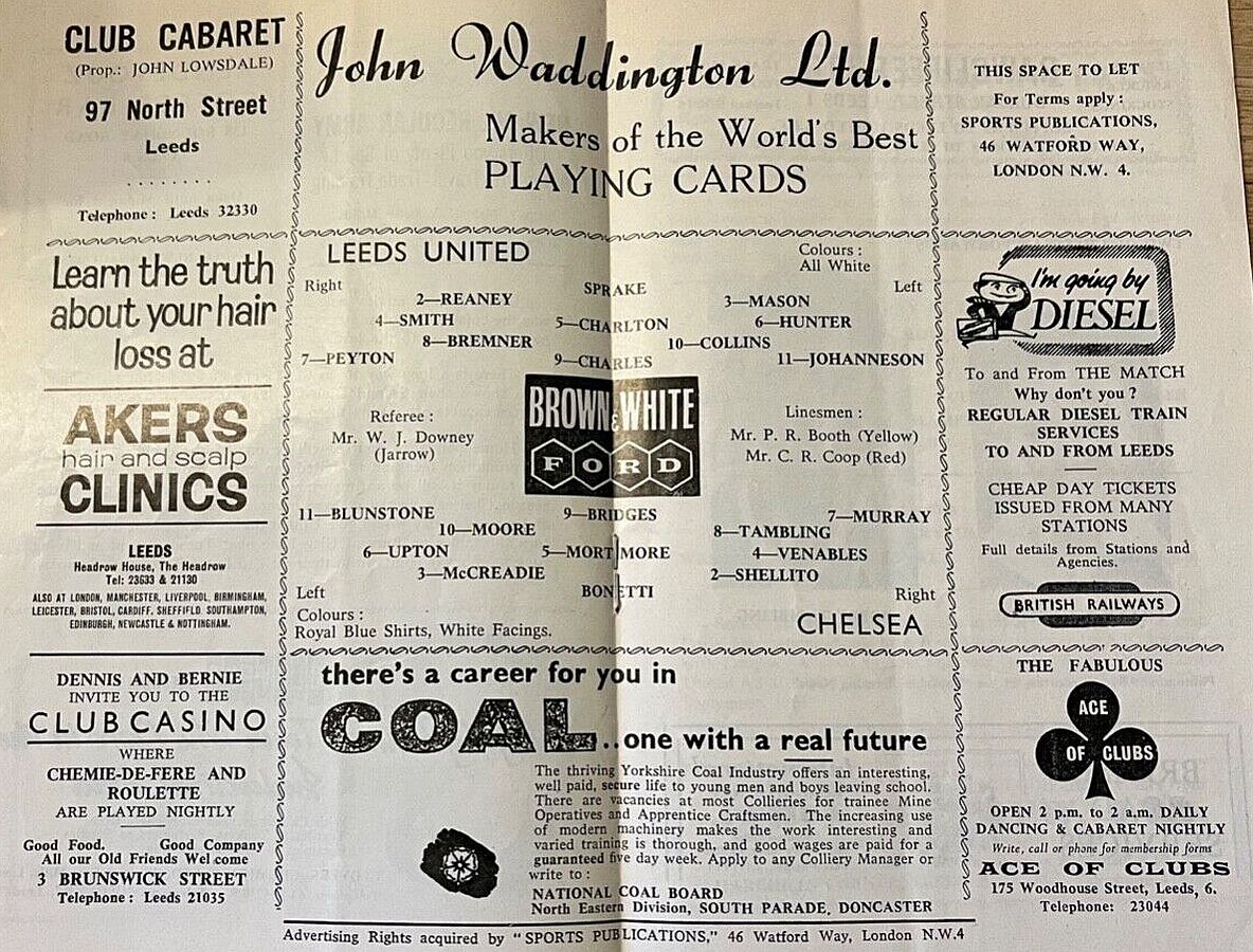 Gary Sprake, Paul Reaney, Cliff Mason, Eric Smith, Jack Charlton, Norman Hunter, Noel Peyton, Billy Bremner, John Charles, Bobby Collins, Albert Johanneson |