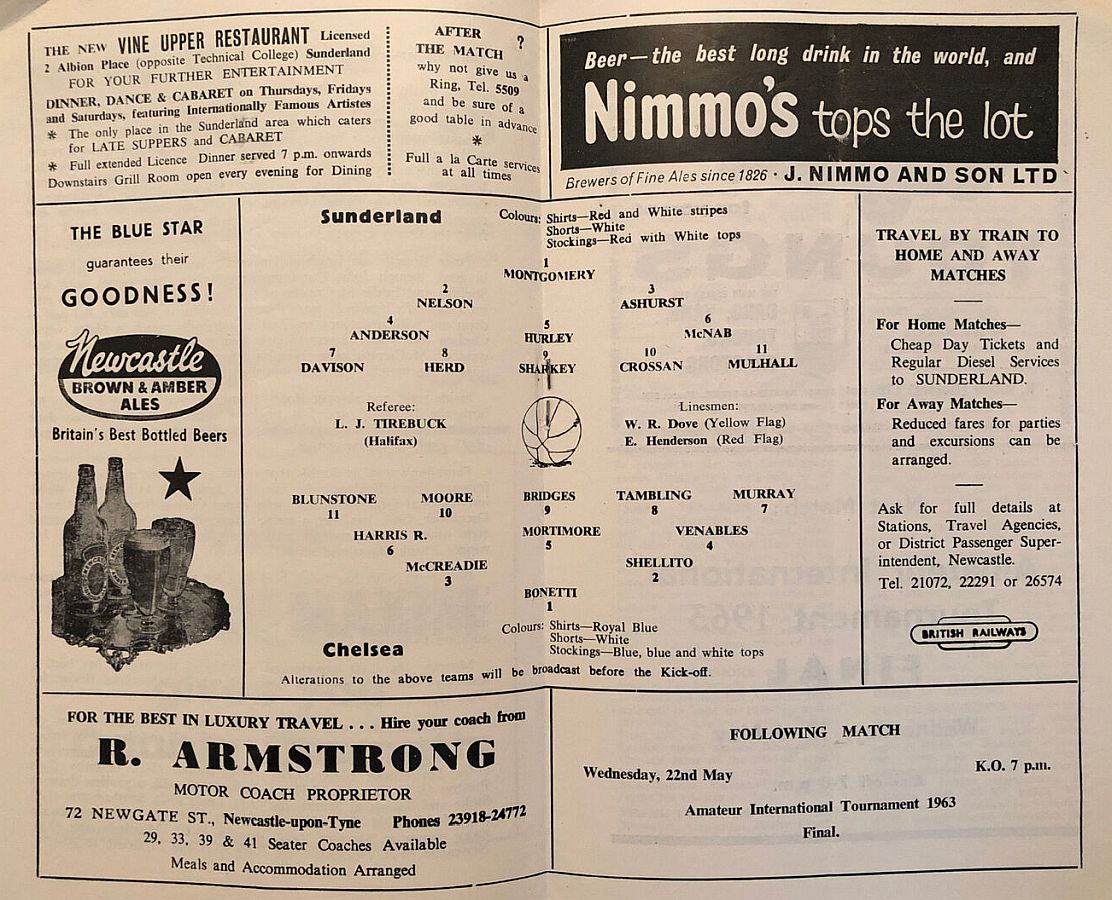 Jim Montgomery, Colin Nelson, Len Ashurst, Stan Anderson, Charlie Hurley, Jimmy McNab, Jimmy Davison, George Herd, Nick Sharkey, Johnny Crossan, George Mulhall |