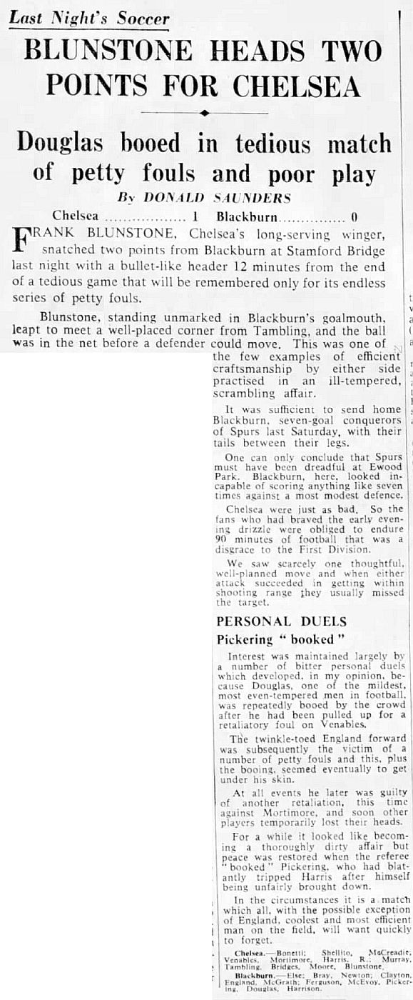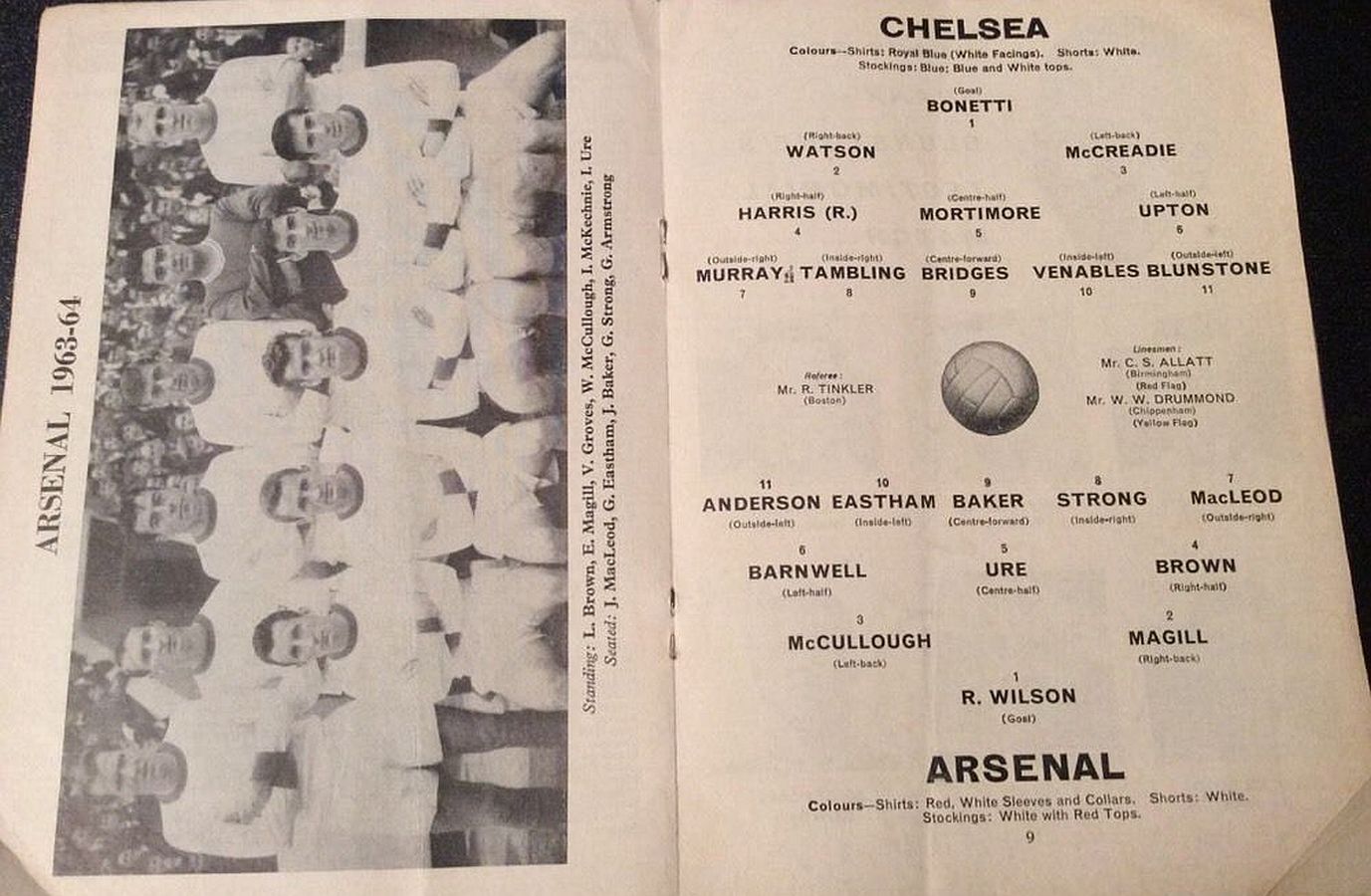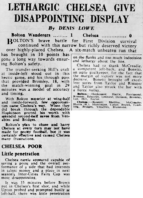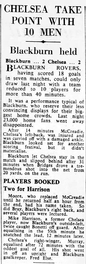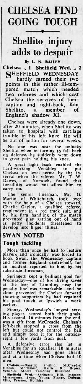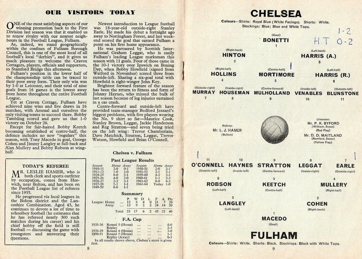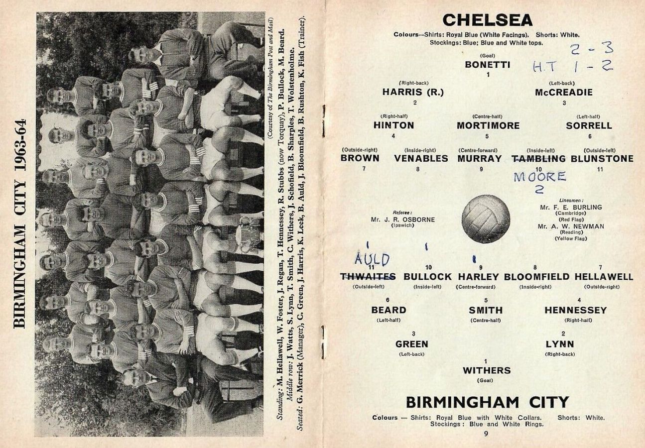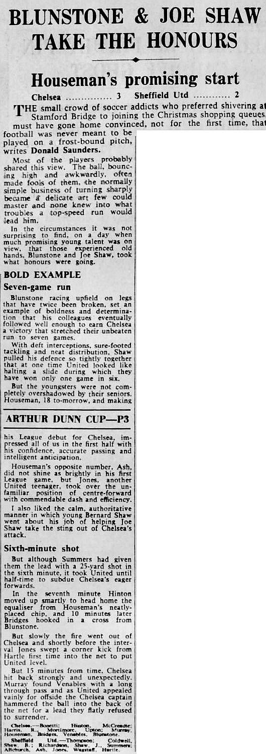 1 Peter Bonetti, 2 Marvin Hinton, 3 Allan Harris, 4 John Hollins, 5 John Mortimore, 6 Ron Harris, 7 Bert Murray, 8 Peter Houseman, 9 Jimmy Mulholland, 10 Terry Venables, 11 Frank Blunstone |