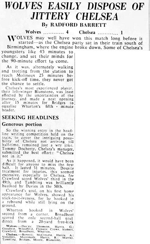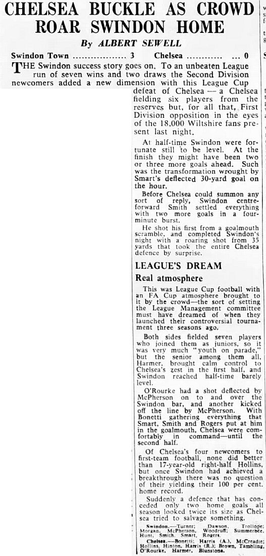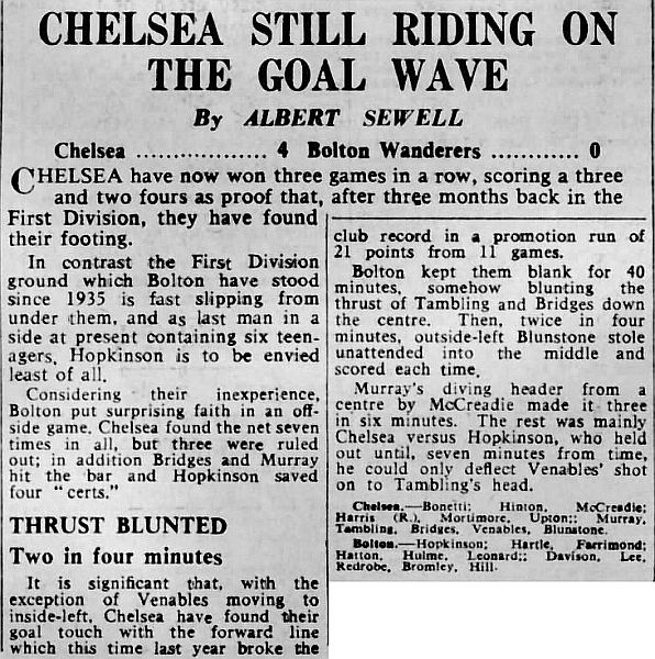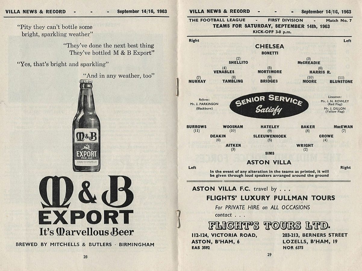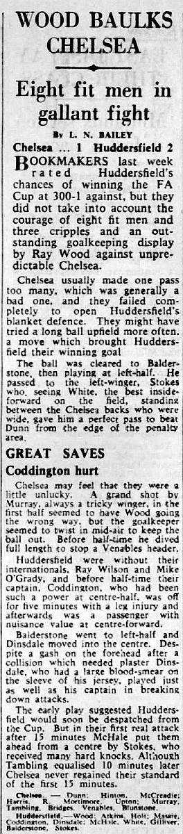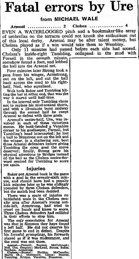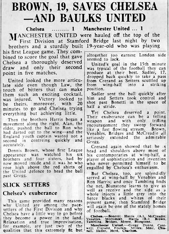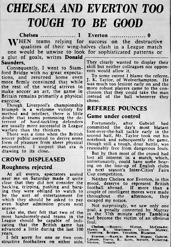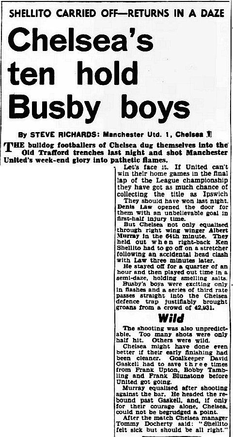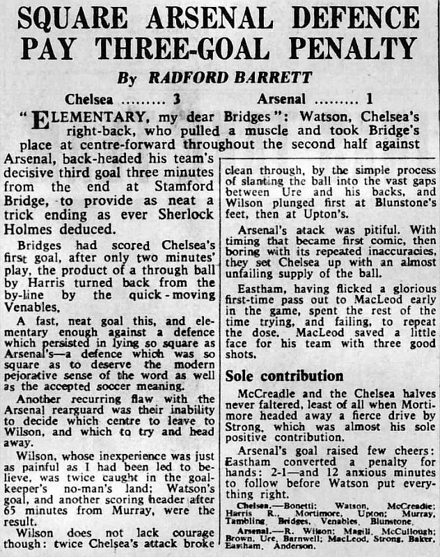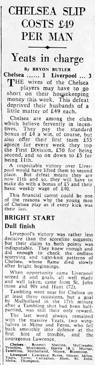 1 Peter Bonetti, 2 Marvin Hinton, 3 Allan Harris, 4 John Hollins, 5 John Mortimore, 6 Ron Harris, 7 Bert Murray, 8 Peter Houseman, 9 Jimmy Mulholland, 10 Terry Venables, 11 Frank Blunstone |