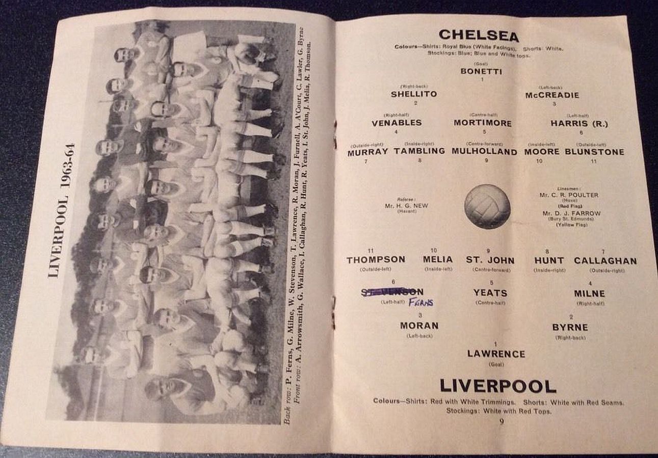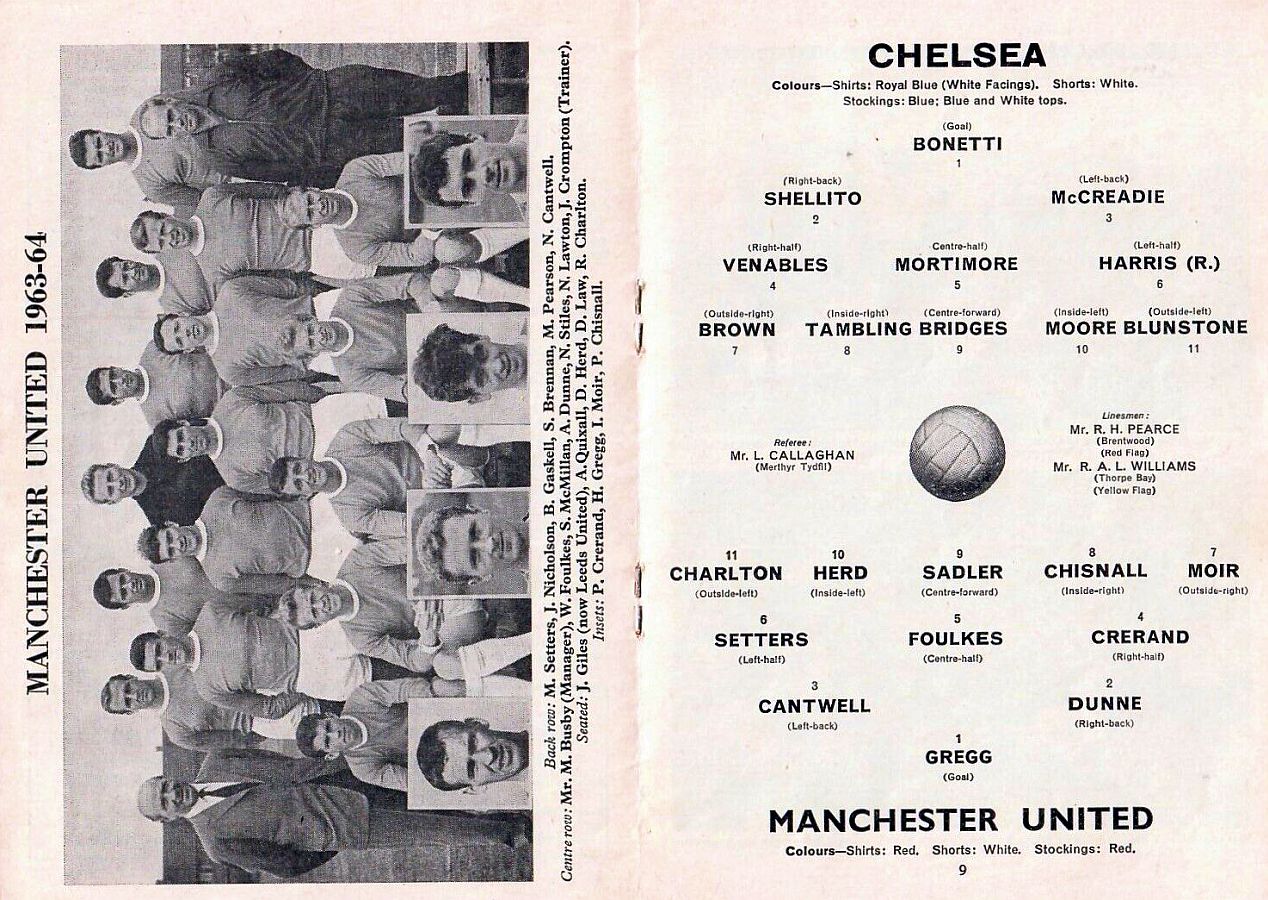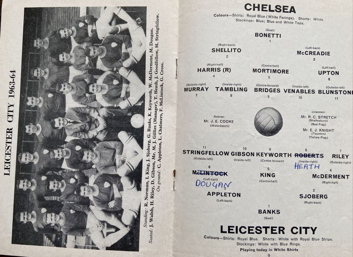 1 Peter Bonetti, 2 Ken Shellito, 3 Allan Harris, 4 Ron Harris, 5 John Mortimore, 6 Frank Upton, 7 Bert Murray, 8 Bobby Tambling, 9 Barry Bridges, 10 Terry Venables, 11 Tommy Knox |