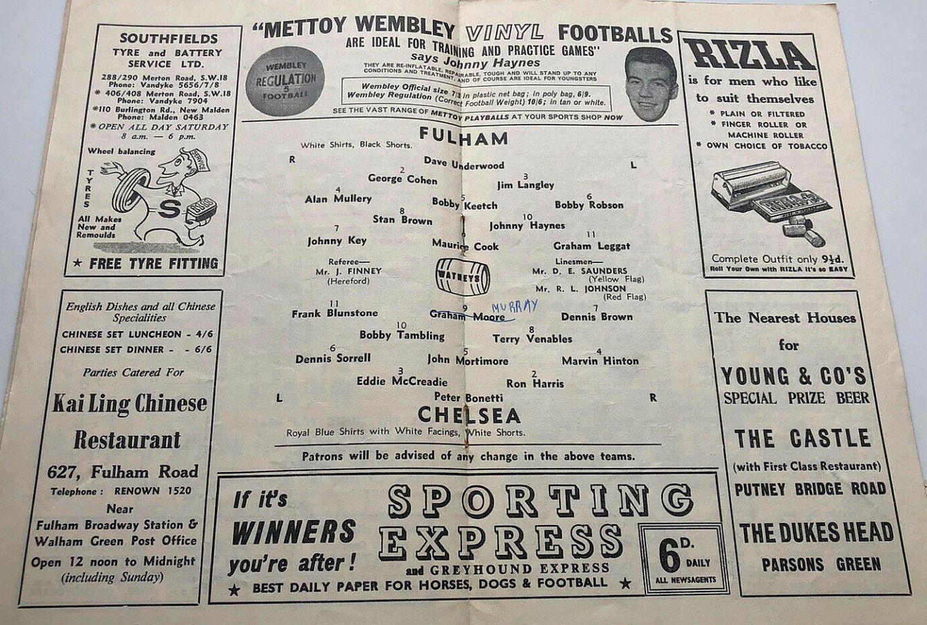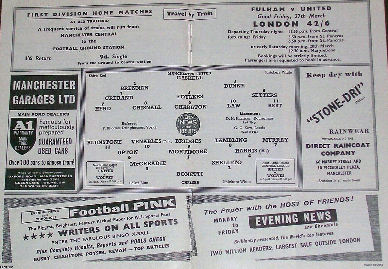 Tony Macedo, George Cohen, Jimmy Langley, Alan Mullery, Bobby Keetch, Bobby Robson, Steve Earle, Graham Leggat, Reg Stratton, Johnny Haynes, Pat O'Connell |