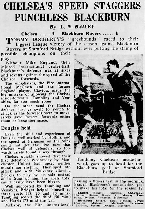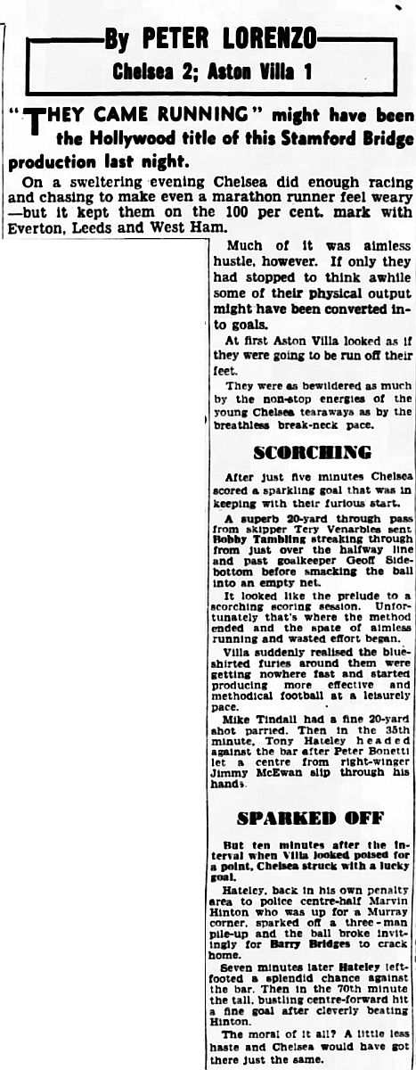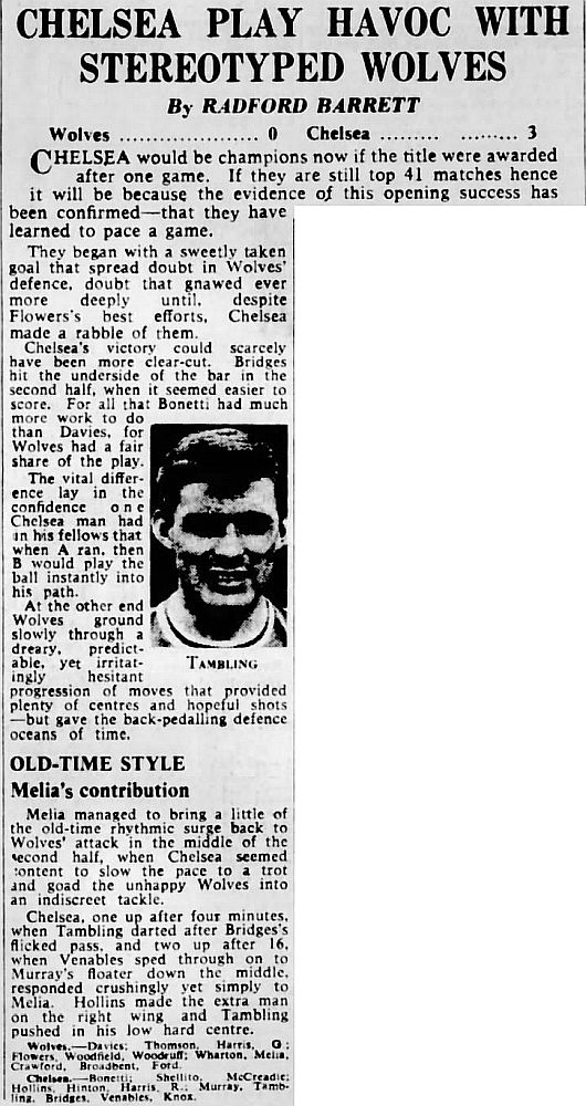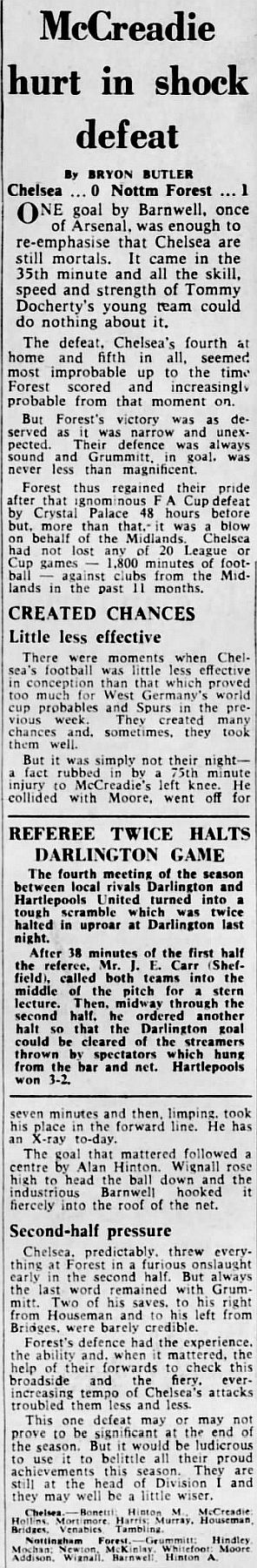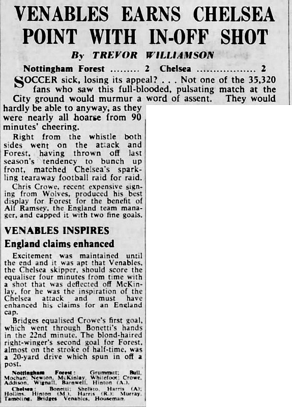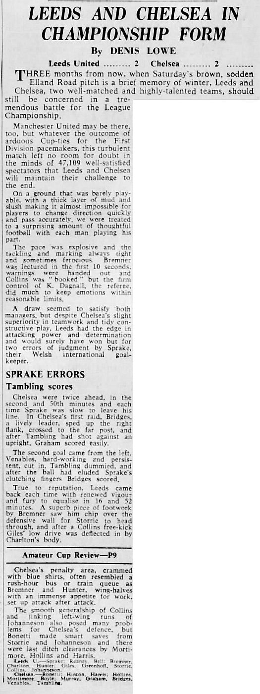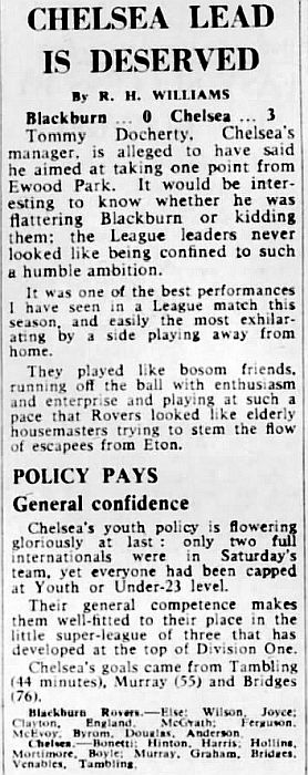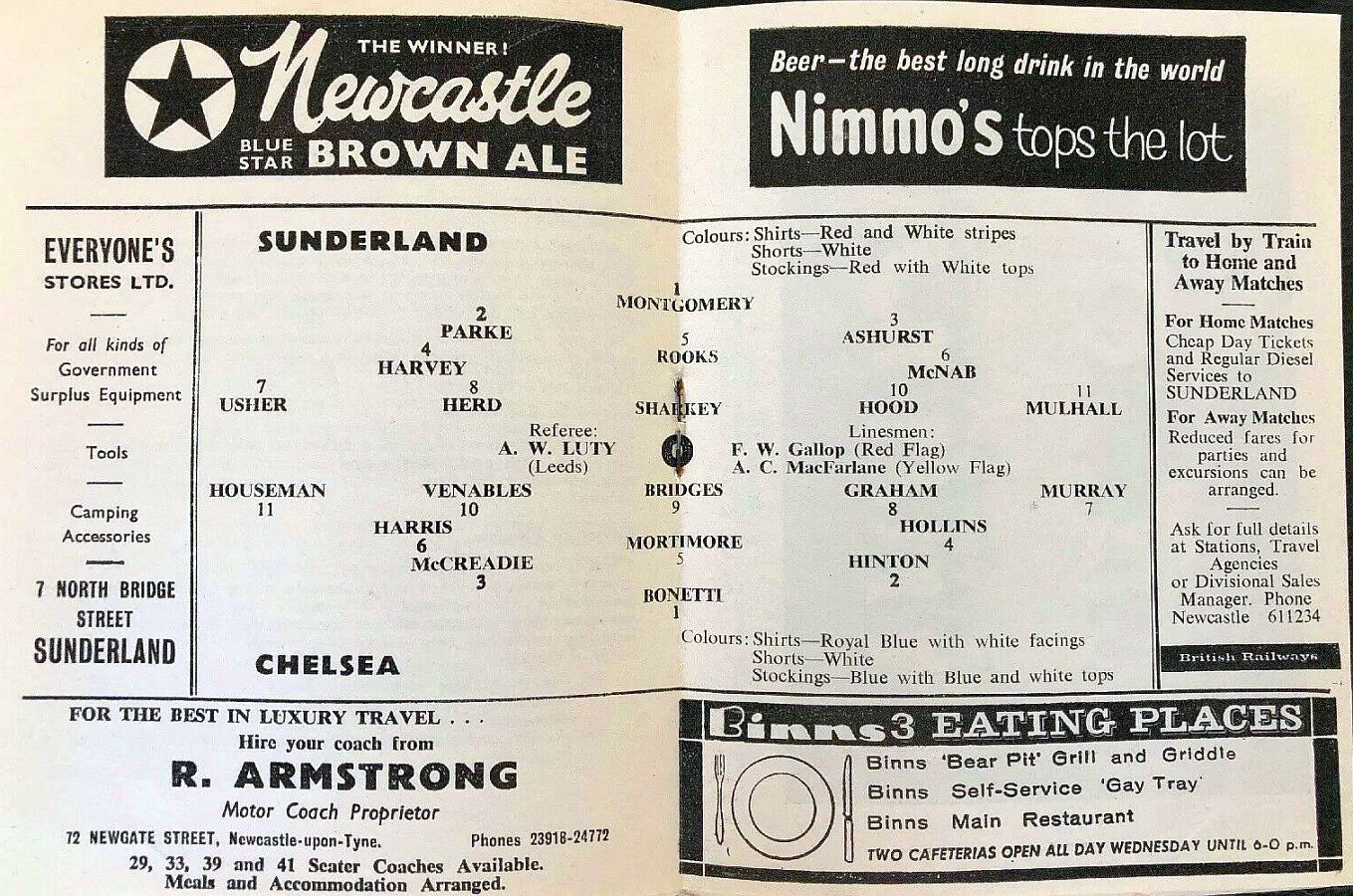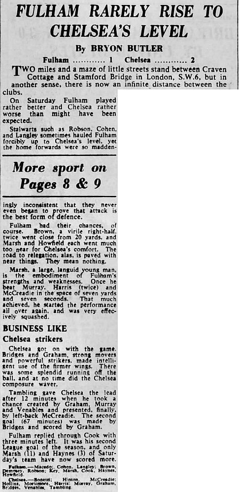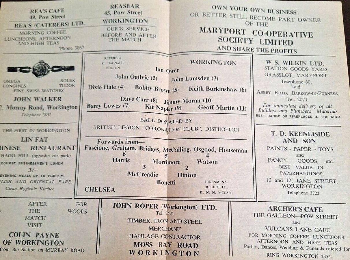1 Peter Bonetti, 2 Ian Watson, 3 Eddie McCreadie, 4 John Hollins, 5 Marvin Hinton, 6 Ron Harris, 7 Bert Murray, 8 Bobby Tambling, 9 Barry Bridges, 10 Terry Venables, 11 Tommy Knox |