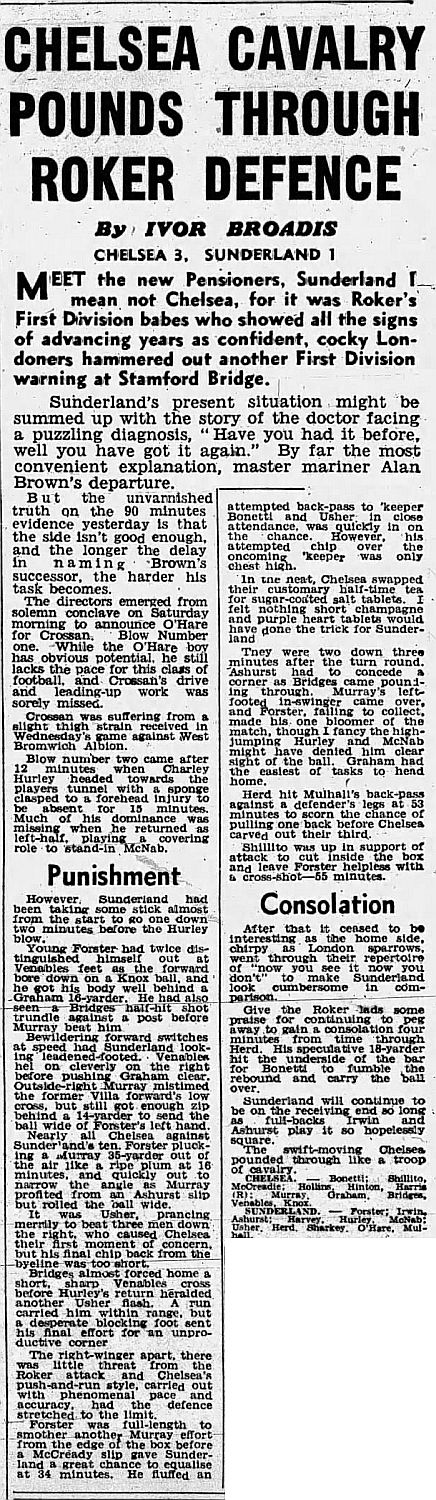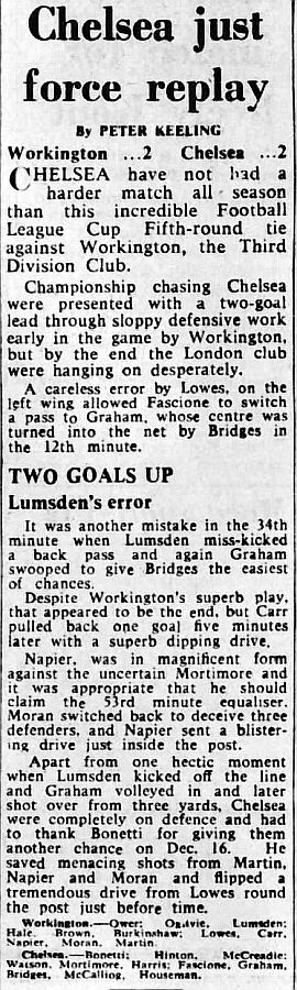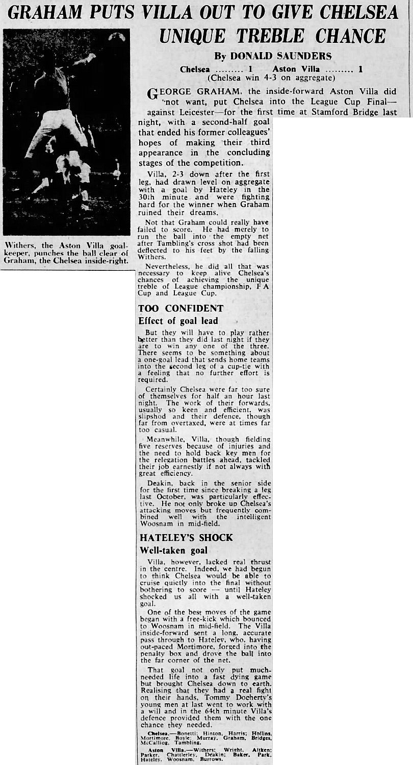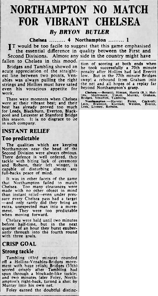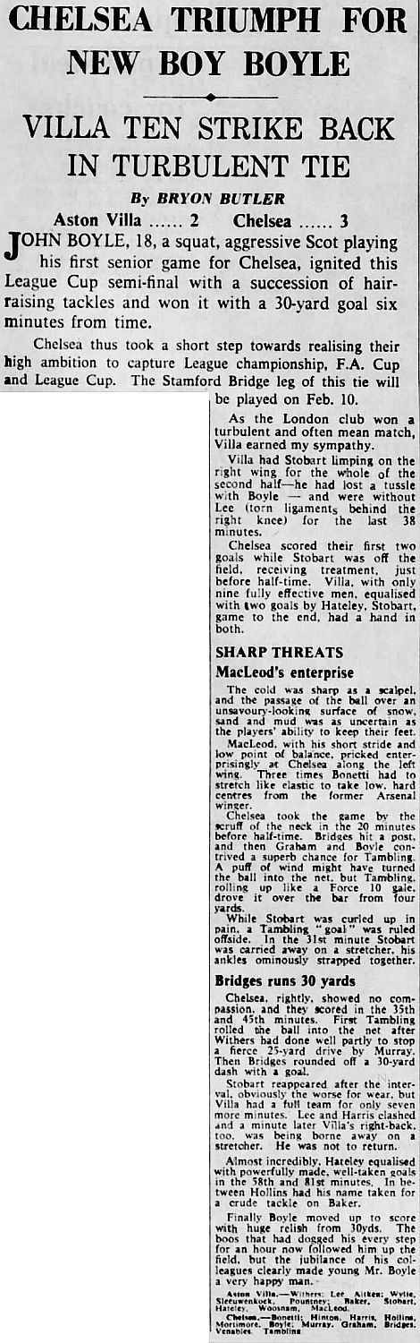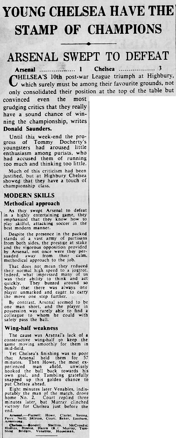 1 Peter Bonetti, 2 Ken Shellito, 3 Eddie McCreadie, 4 John Hollins, 5 Marvin Hinton, 6 Ron Harris, 7 Bert Murray, 8 George Graham, 9 Barry Bridges, 10 Terry Venables, 11 Tommy Knox |