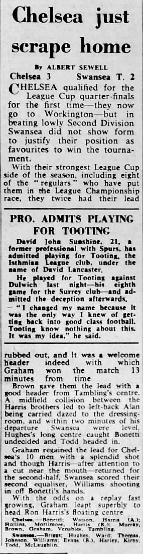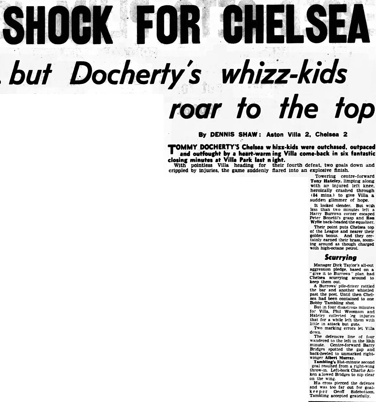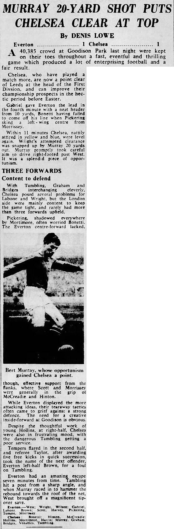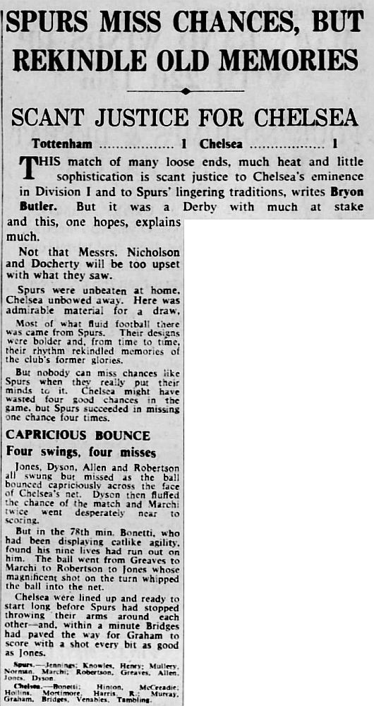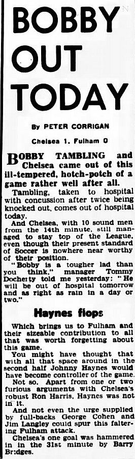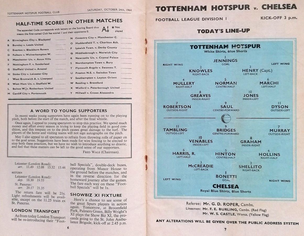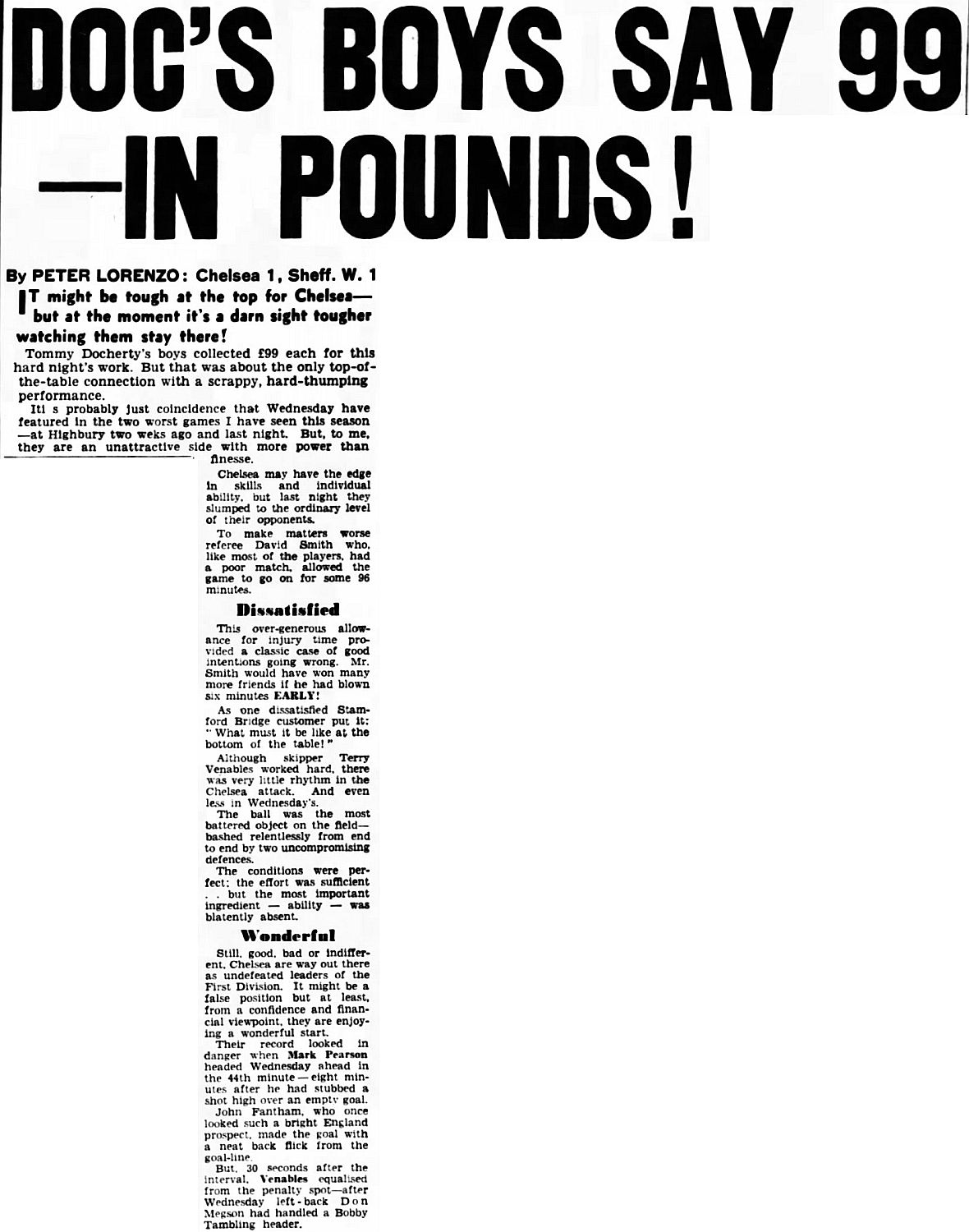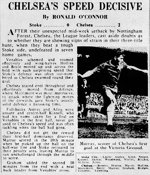 1 Peter Bonetti, 2 Ken Shellito, 3 Eddie McCreadie, 4 John Hollins, 5 Marvin Hinton, 6 Ron Harris, 7 Bert Murray, 8 Bobby Tambling, 9 Barry Bridges, 10 Terry Venables, 11 Tommy Knox |