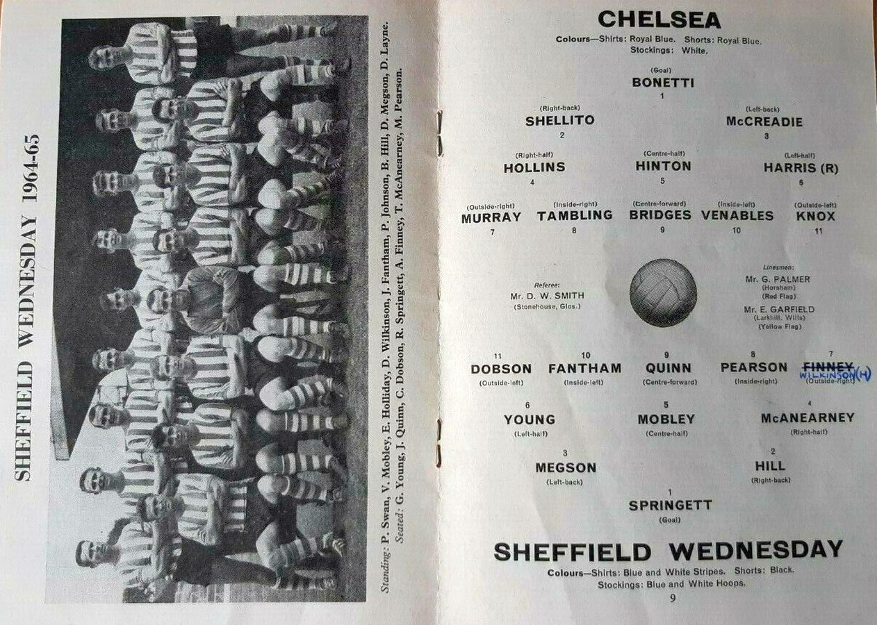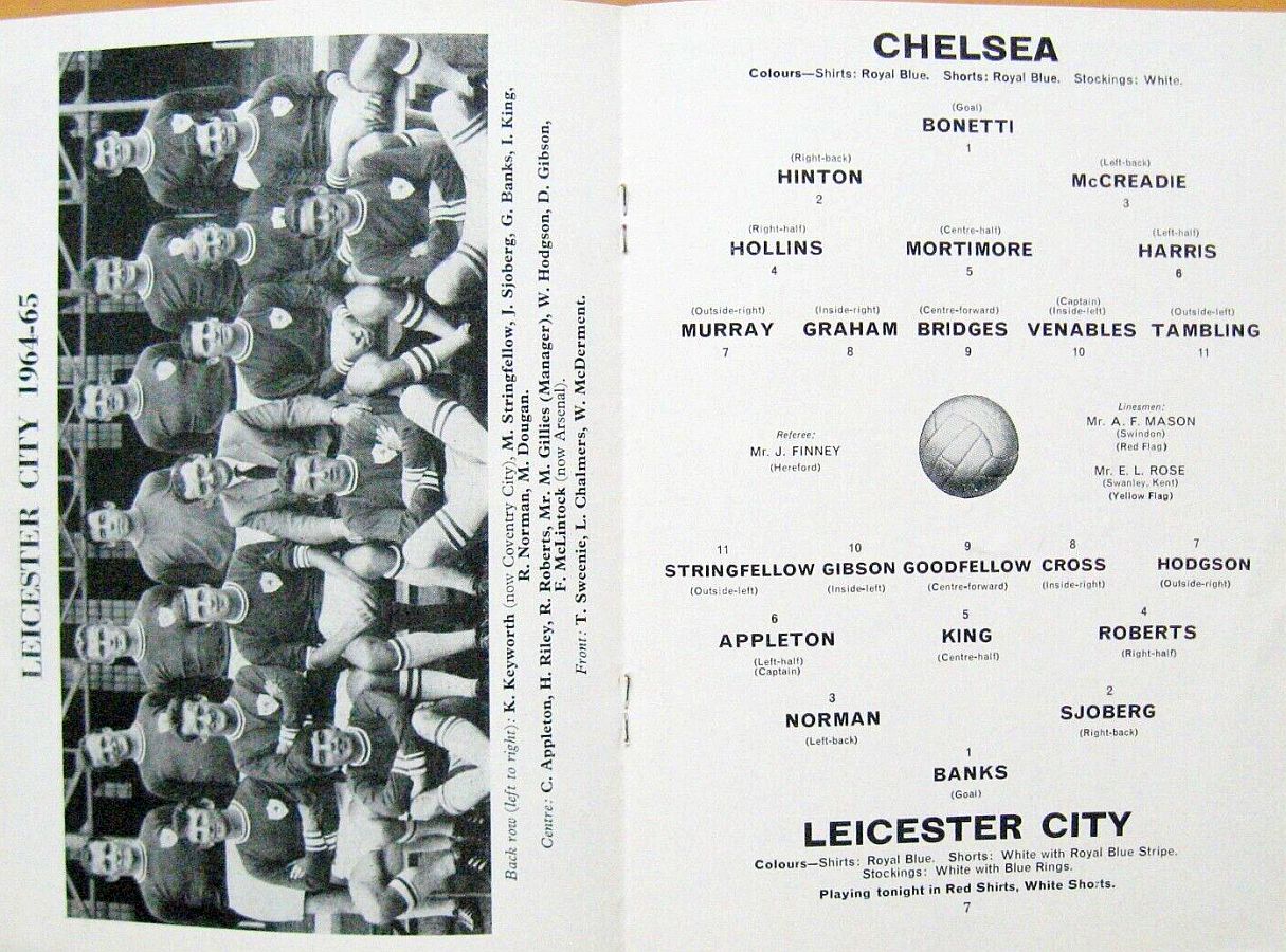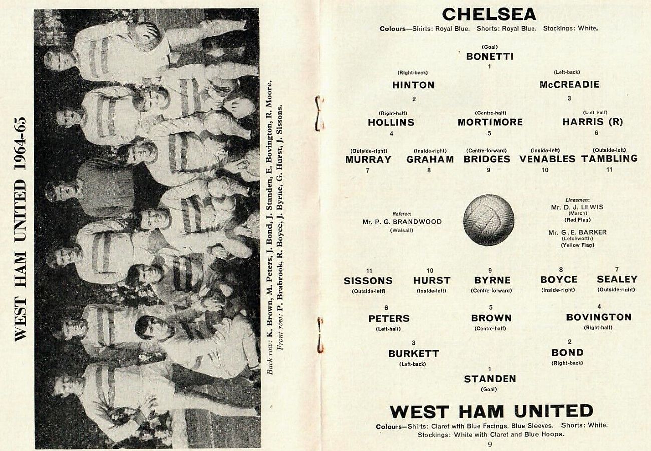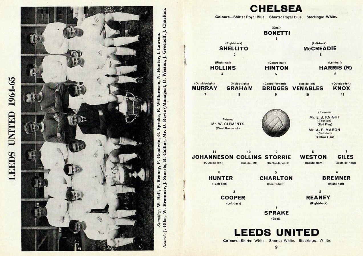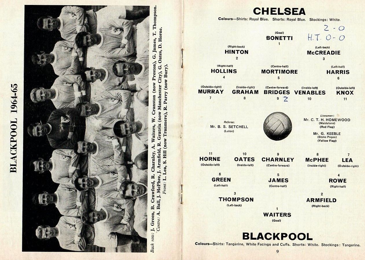 1 Peter Bonetti, 2 Ken Shellito, 3 Ron Harris, 4 William Sinclair, 5 John Mortimore, 6 John Boyle, 7 James Smart, 8 Bobby Tambling, 9 Frank Upton, 10 Jimmy McCalliog, 11 Peter Houseman |