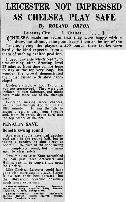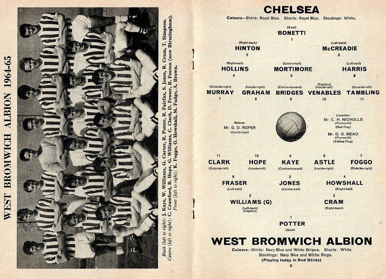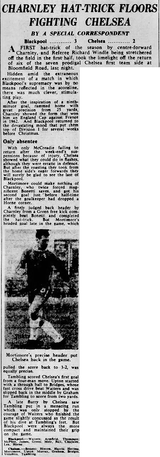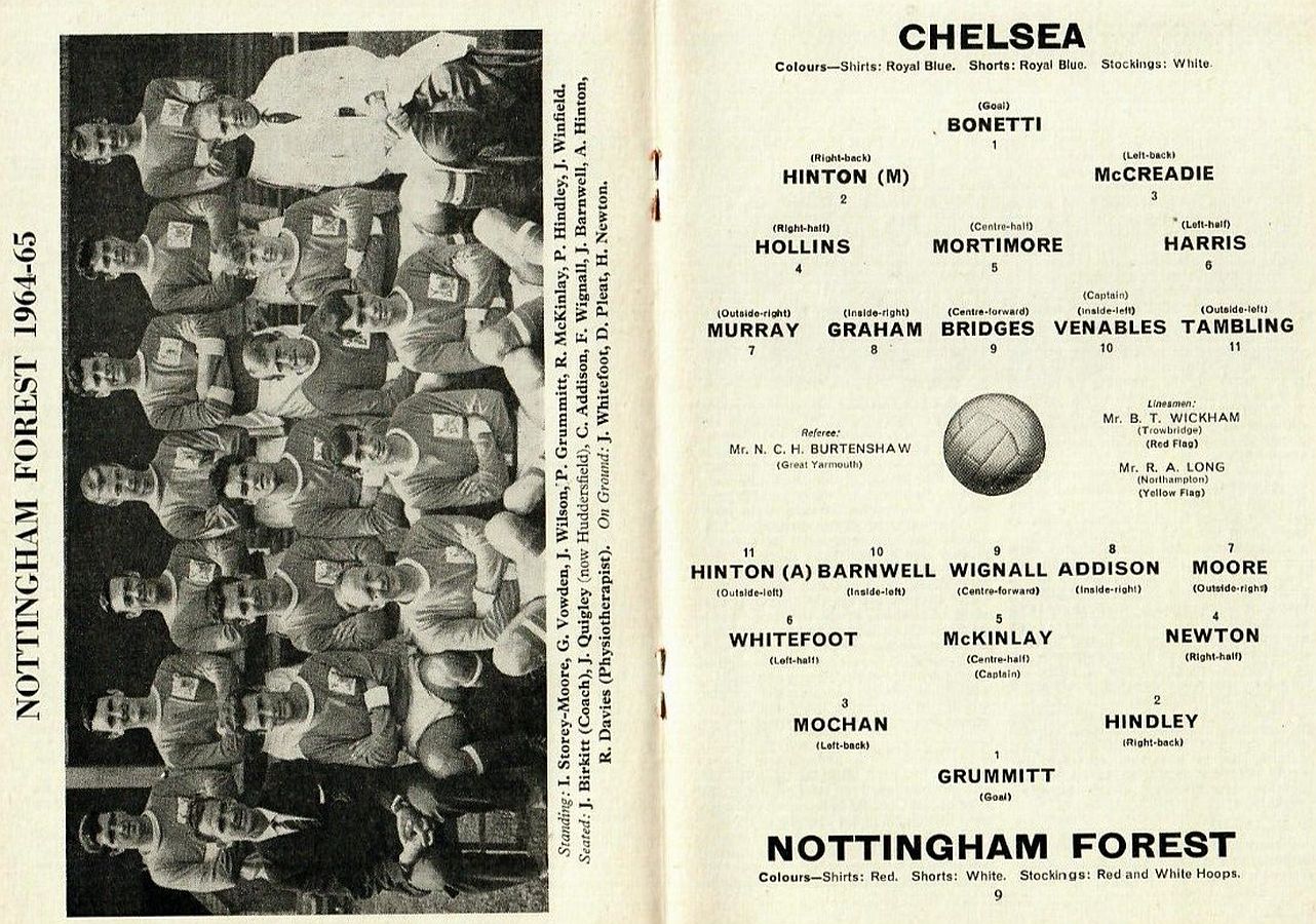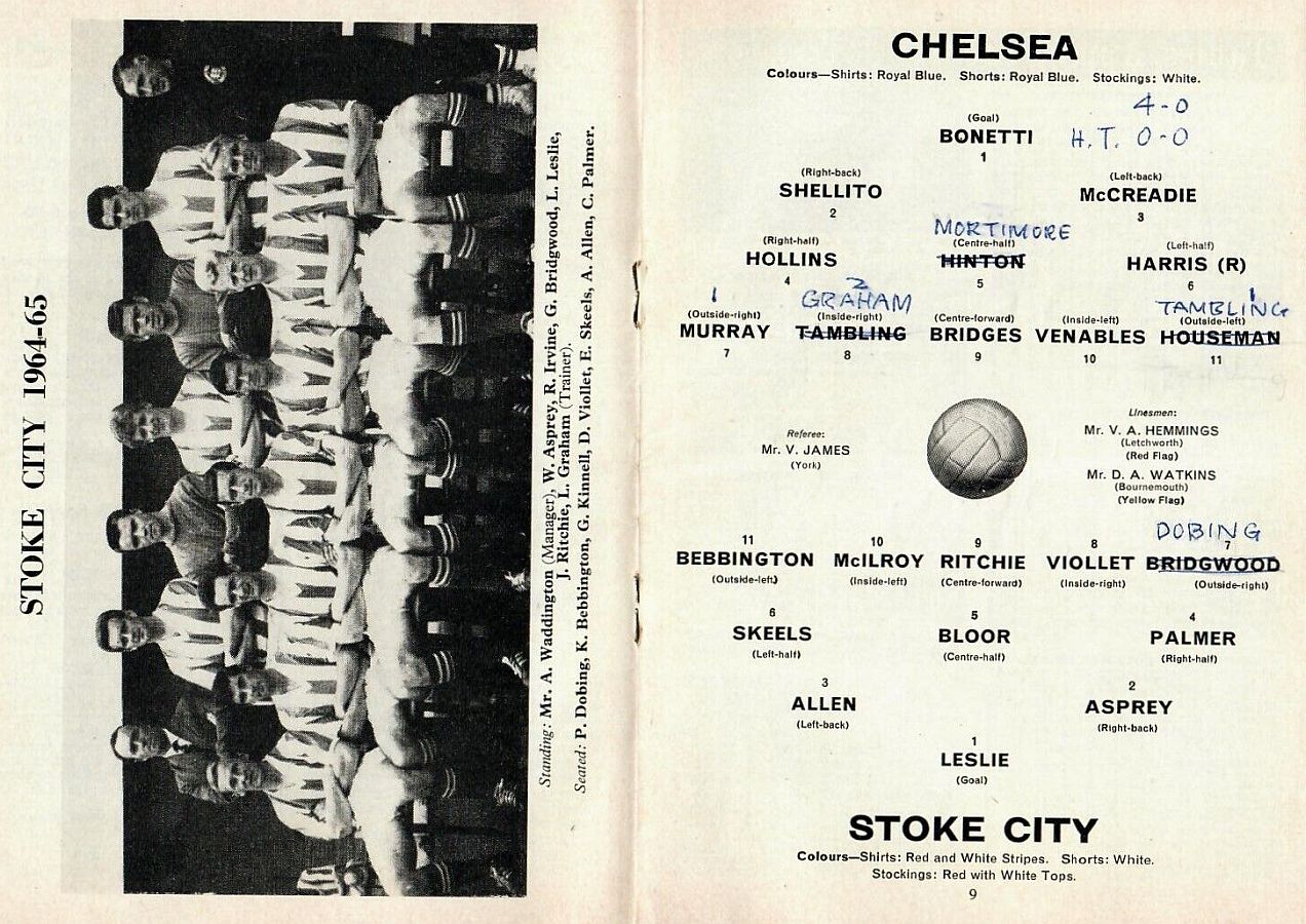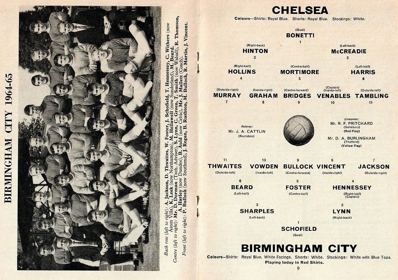 1 Peter Bonetti, 2 Ken Shellito, 3 Ron Harris, 4 William Sinclair, 5 John Mortimore, 6 John Boyle, 7 James Smart, 8 Bobby Tambling, 9 Frank Upton, 10 Jimmy McCalliog, 11 Peter Houseman |