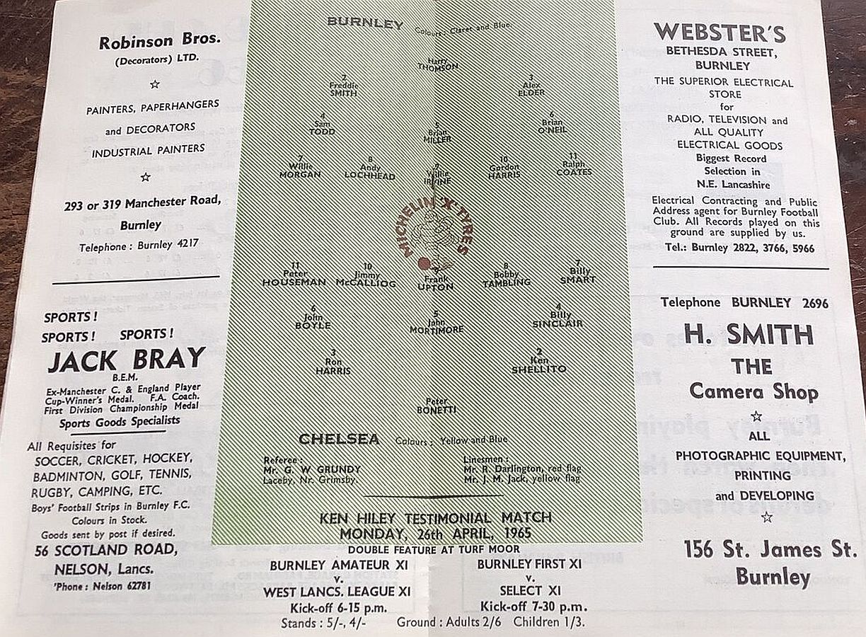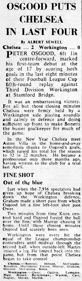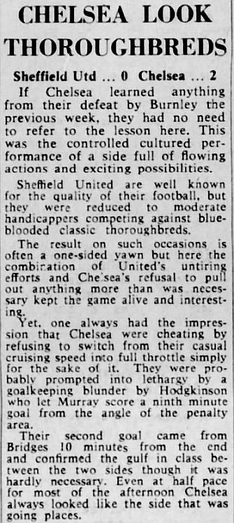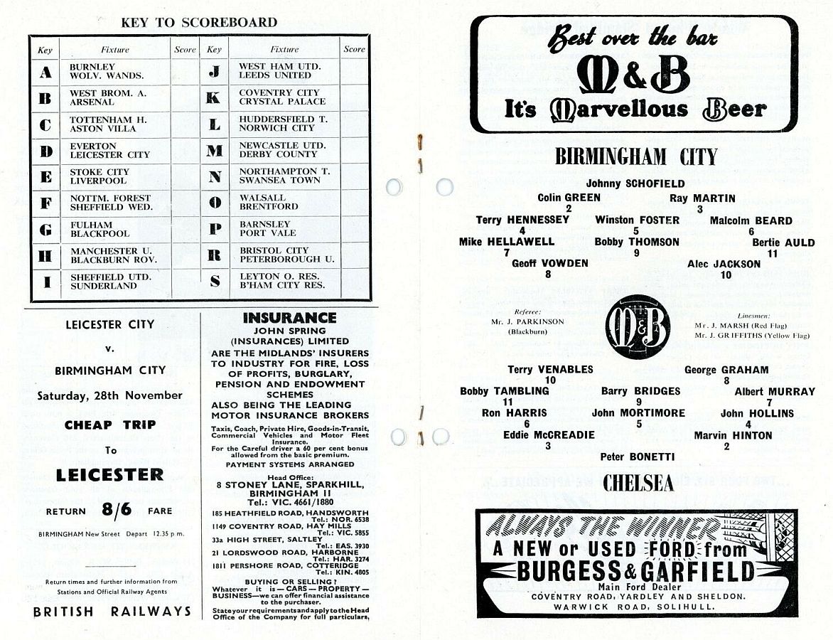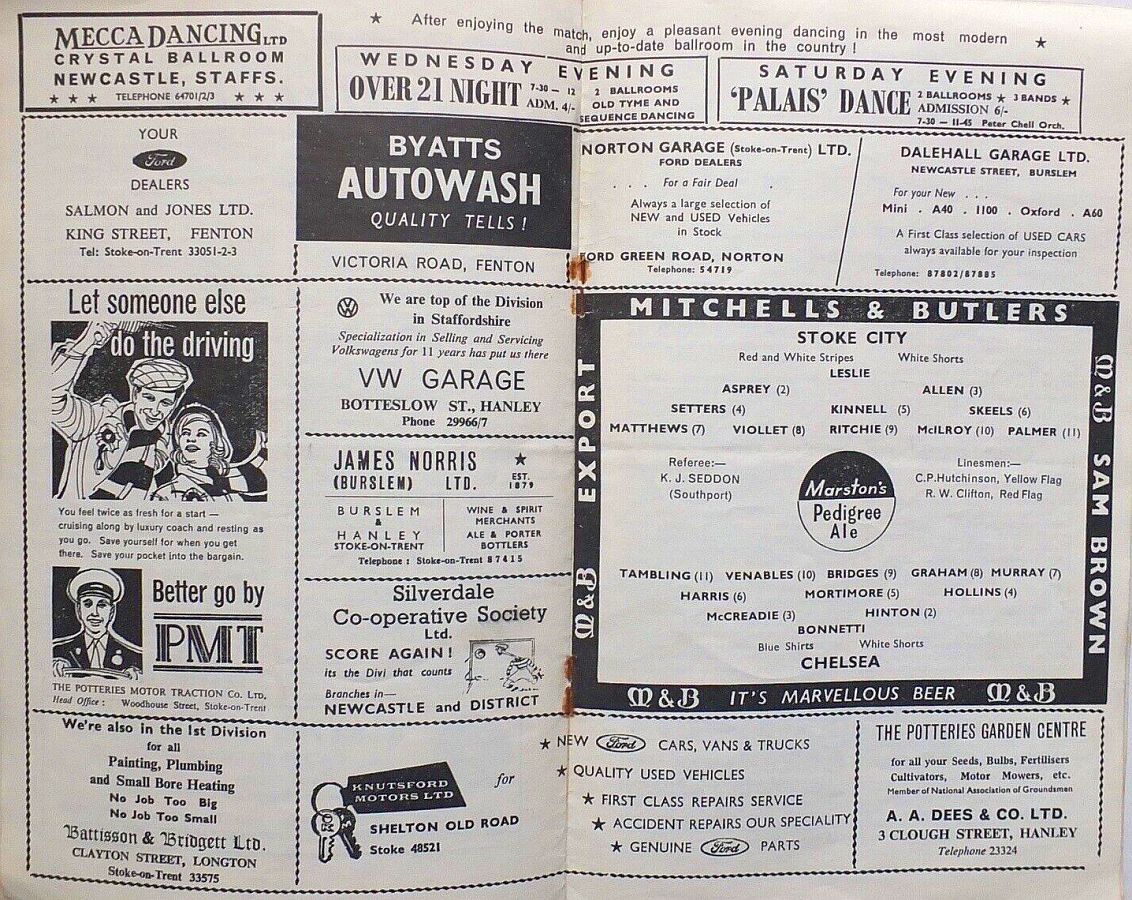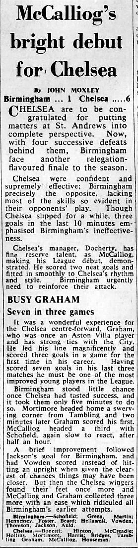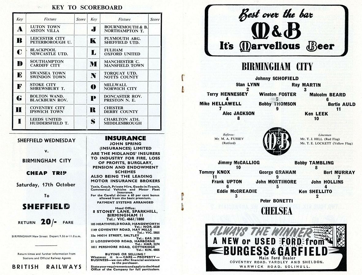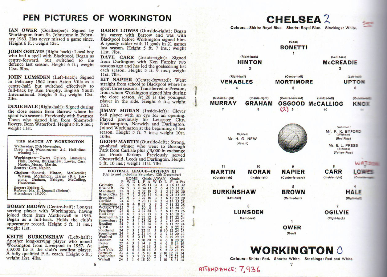 1 Peter Bonetti, 2 Ken Shellito, 3 Ron Harris, 4 William Sinclair, 5 John Mortimore, 6 John Boyle, 7 James Smart, 8 Bobby Tambling, 9 Frank Upton, 10 Jimmy McCalliog, 11 Peter Houseman |
