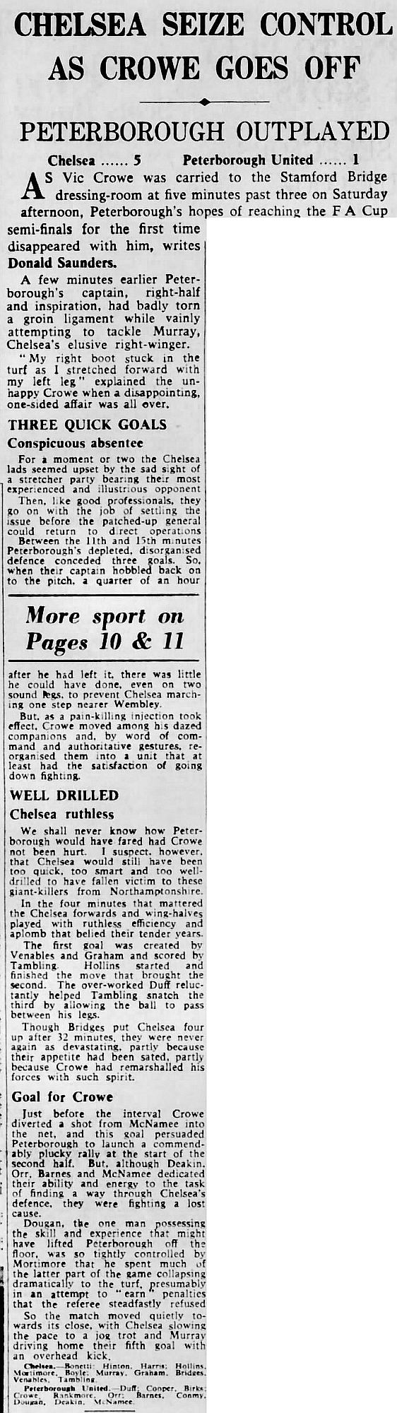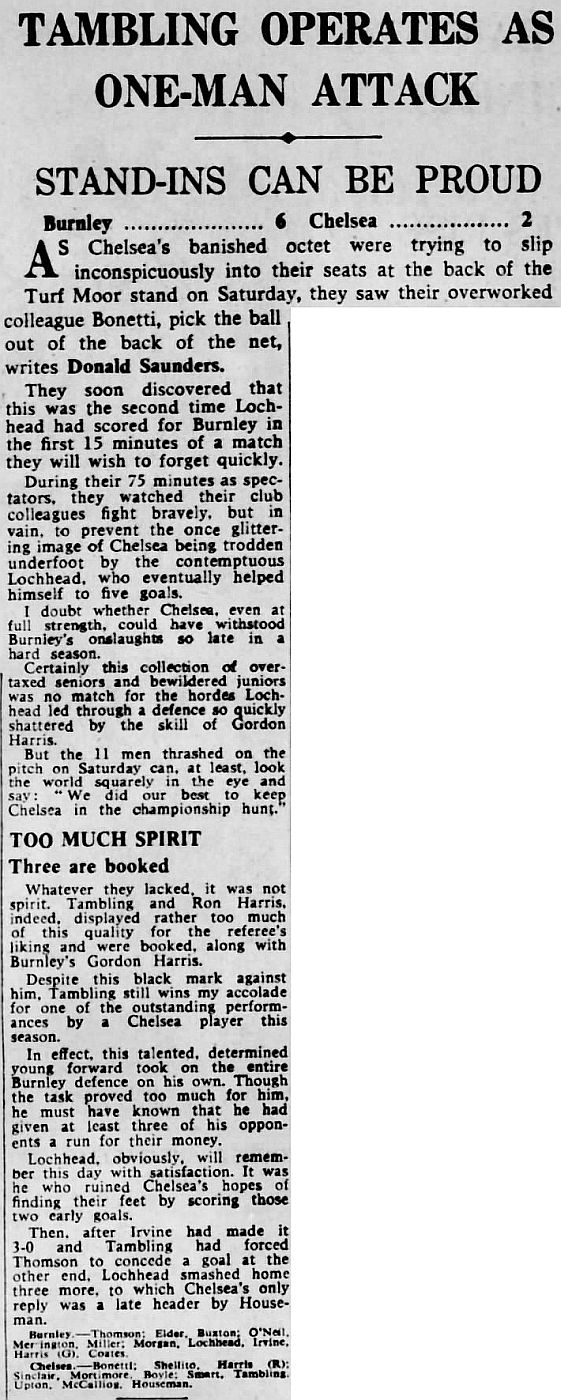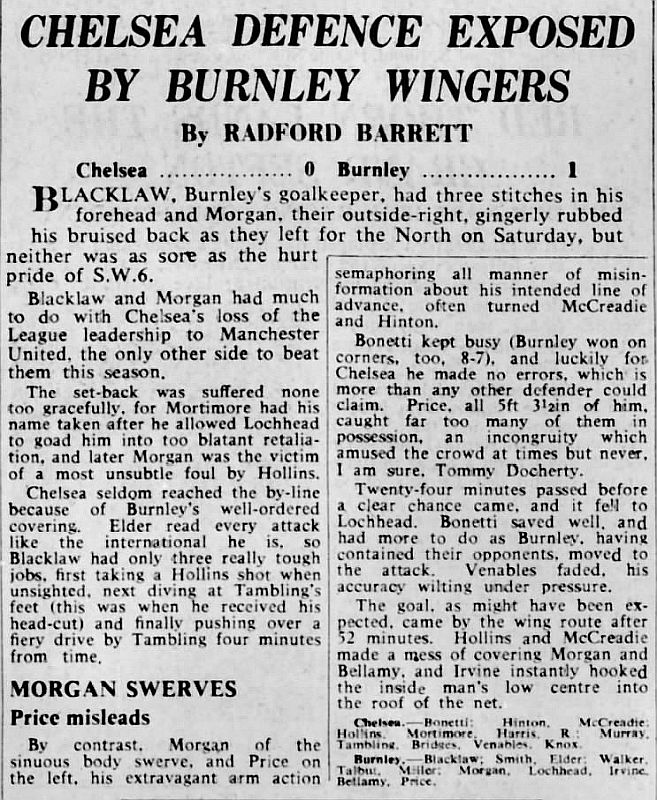 1 Peter Bonetti, 2 Marvin Hinton, 3 Eddie McCreadie, 4 Ron Harris, 5 John Mortimore, 6 Frank Upton, 7 Bert Murray, 8 John Boyle, 9 Barry Bridges, 10 Terry Venables, 11 Bobby Tambling |