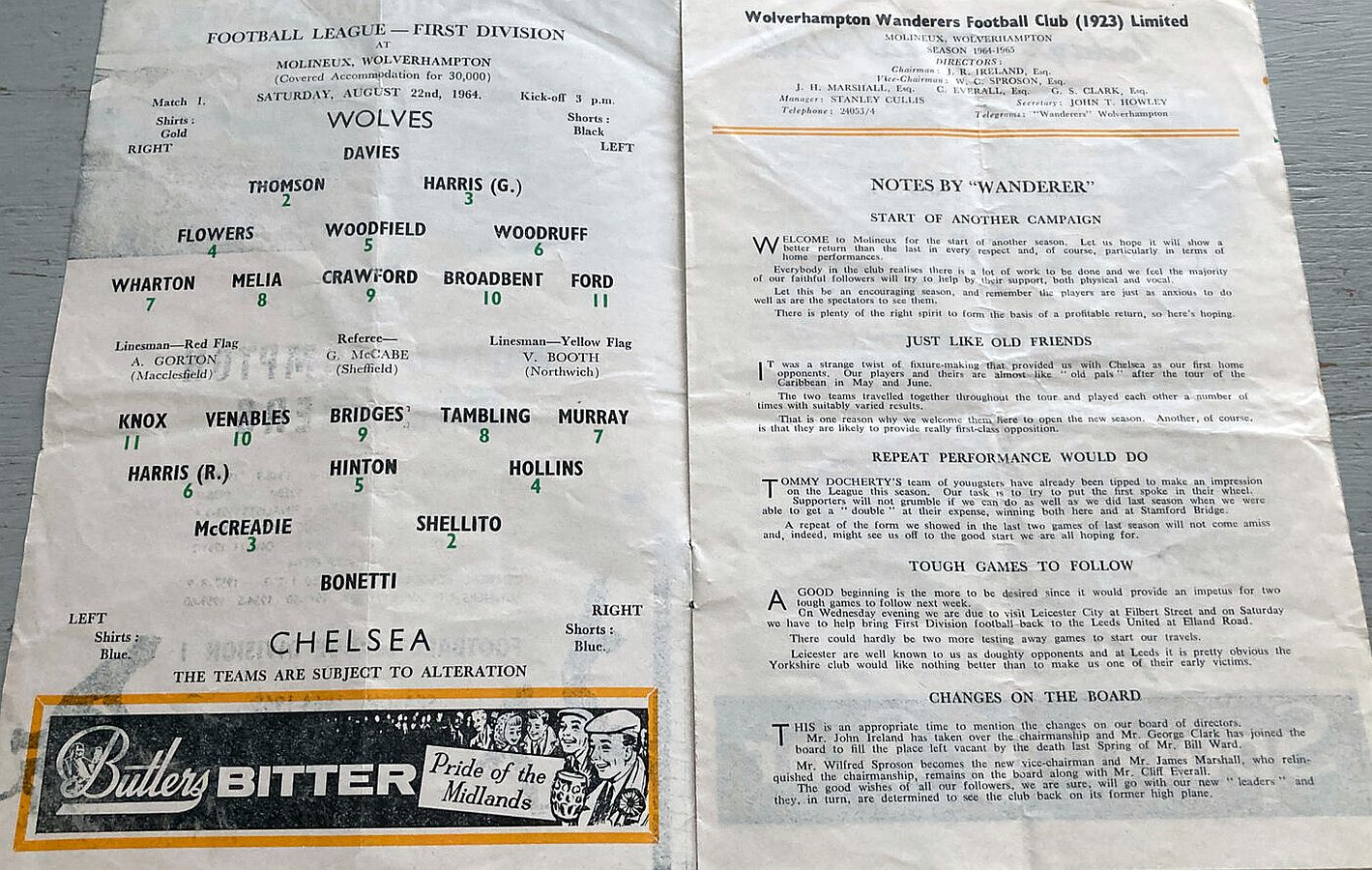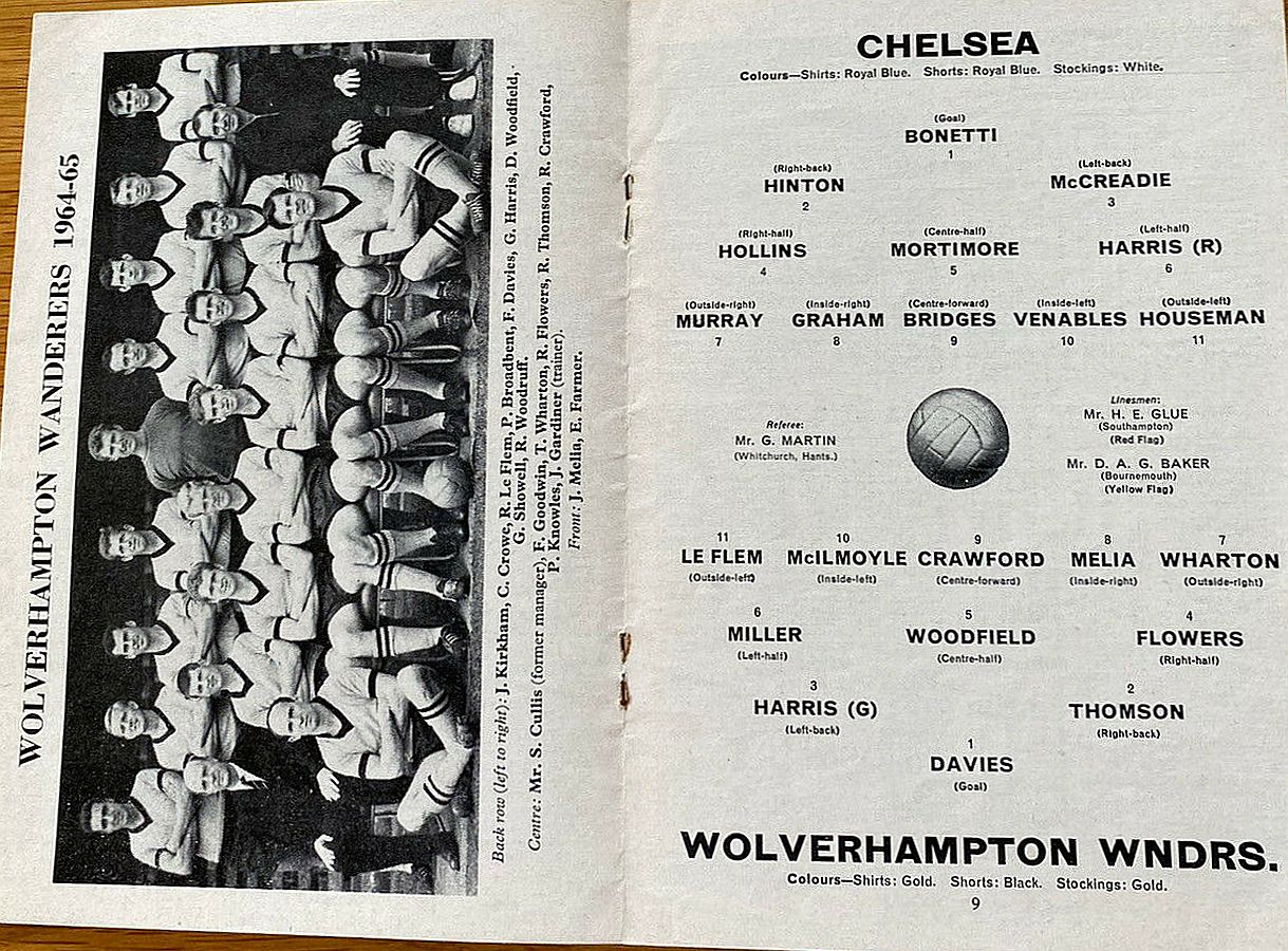 Fred Davies, Bobby Thomson, Gerry Harris, Ron Flowers, David Woodfield, Bobby Woodruff, Terry Wharton, Jimmy Melia, Ray Crawford, Peter Broadbent, Clive Ford |