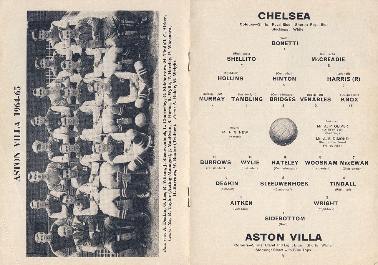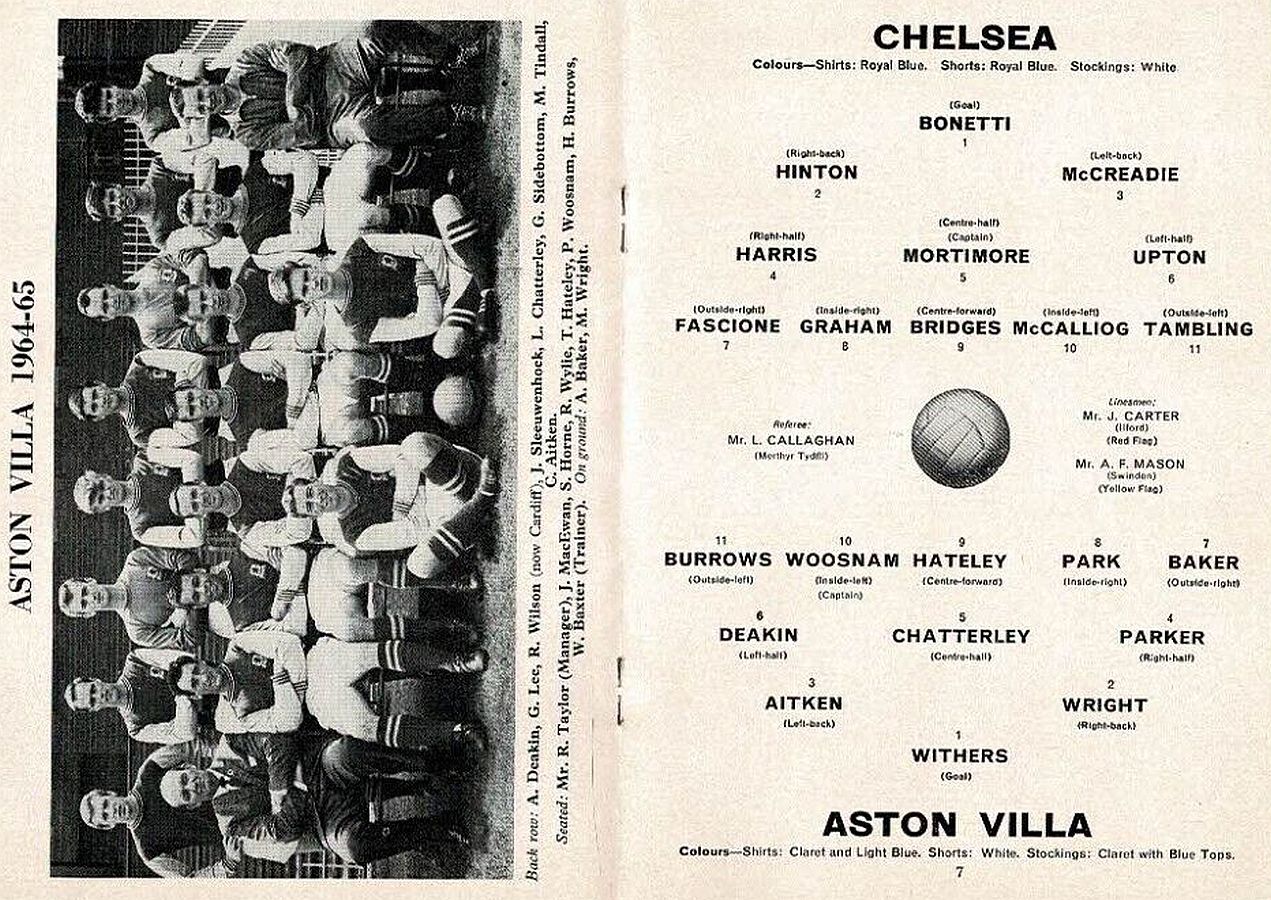 Geoff Sidebottom, Mick Wright, Charlie Aitken, Mike Tindall, John Sleeuwenhoek, Alan Deakin, Alan Baker, Phil Woosnam, Tony Hateley, Ron Wylie, Harry Burrows |