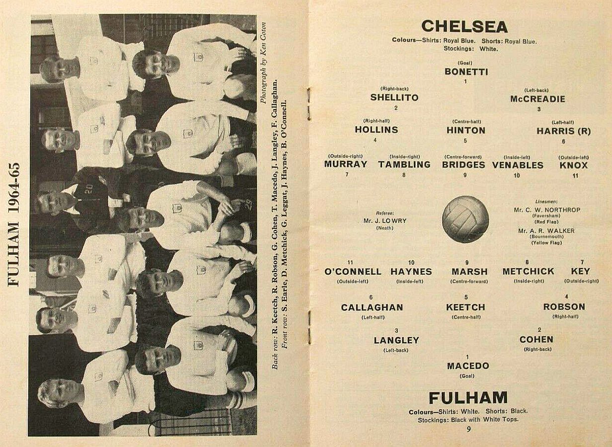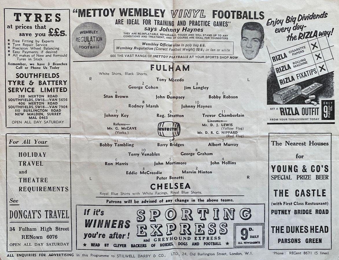 Tony Macedo, George Cohen, Jimmy Langley, Bobby Robson, Bobby Keetch, Fred Callaghan, Johnny Key, Dave Metchick, Rodney Marsh, Johnny Haynes, Pat O'Connell |