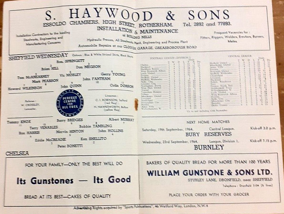 Ron Springett, Brian Hill, Don Megson, Tom McAnearney, Vic Mobley, Gerry Young, Howard Wilkinson, Mark Pearson, Johnny Quinn, John Fantham, Colin Dobson |