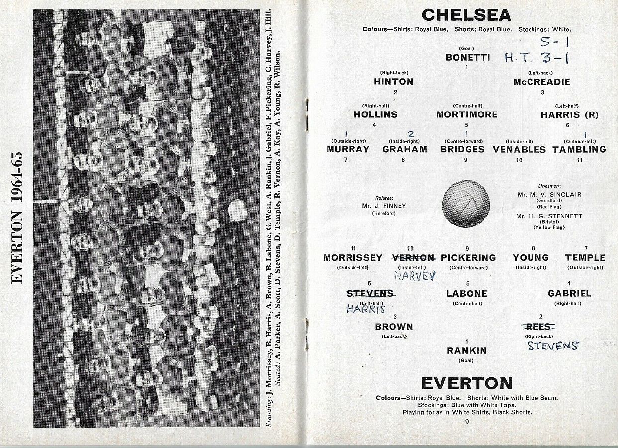Gordon West, Tommy Wright, Ray Wilson, Jimmy Gabriel, Brian Labone, Sandy Brown, Alex Scott, Colin Harvey, Fred Pickering, Derek Temple, Johnny Morrissey |