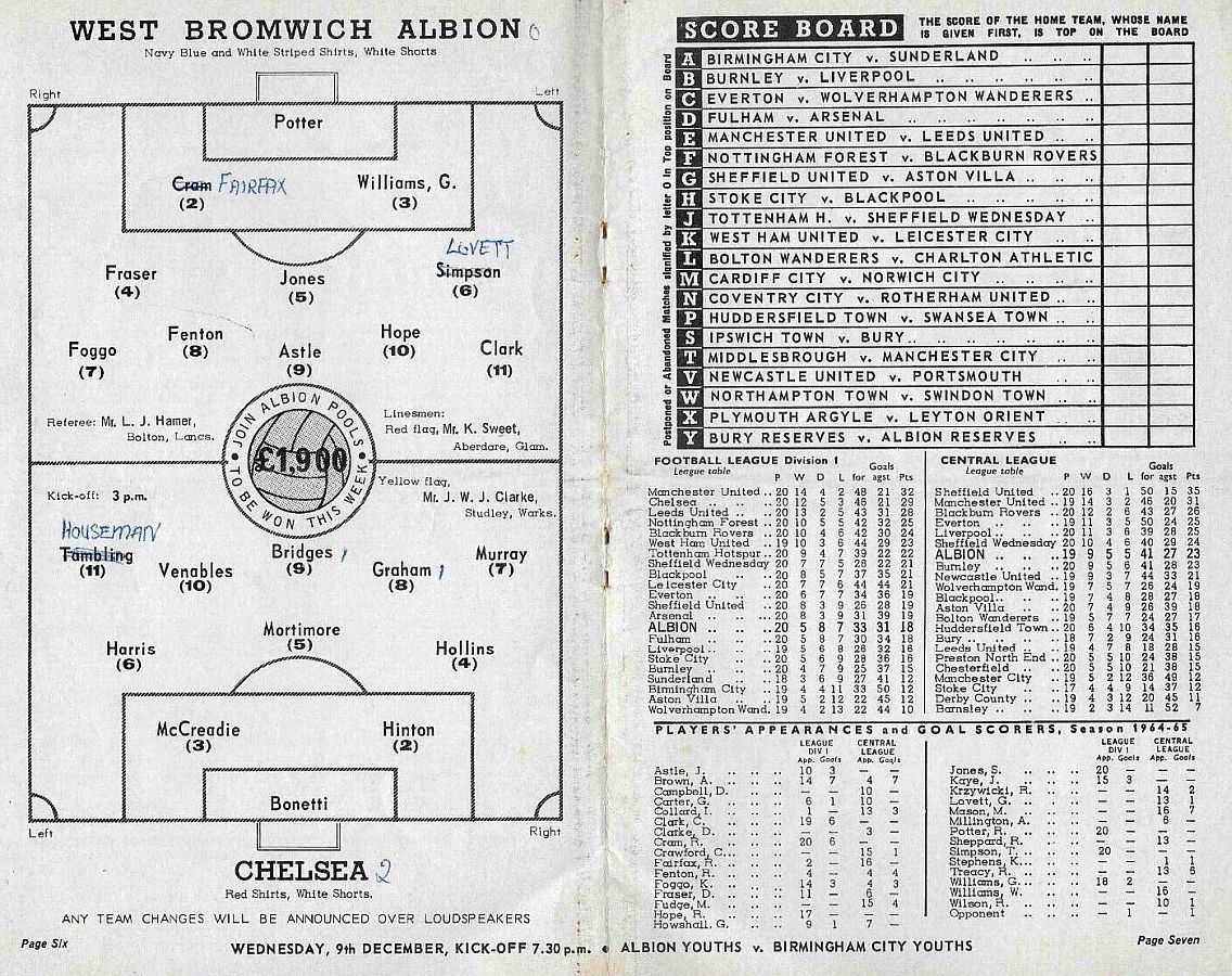 Ray Potter, Bobby Cram, Graham Williams, Gerry Howshall, Stan Jones, Doug Fraser, Ken Foggo, Jeff Astle, Ray Crawford, Bobby Hope, Geoff Carter |