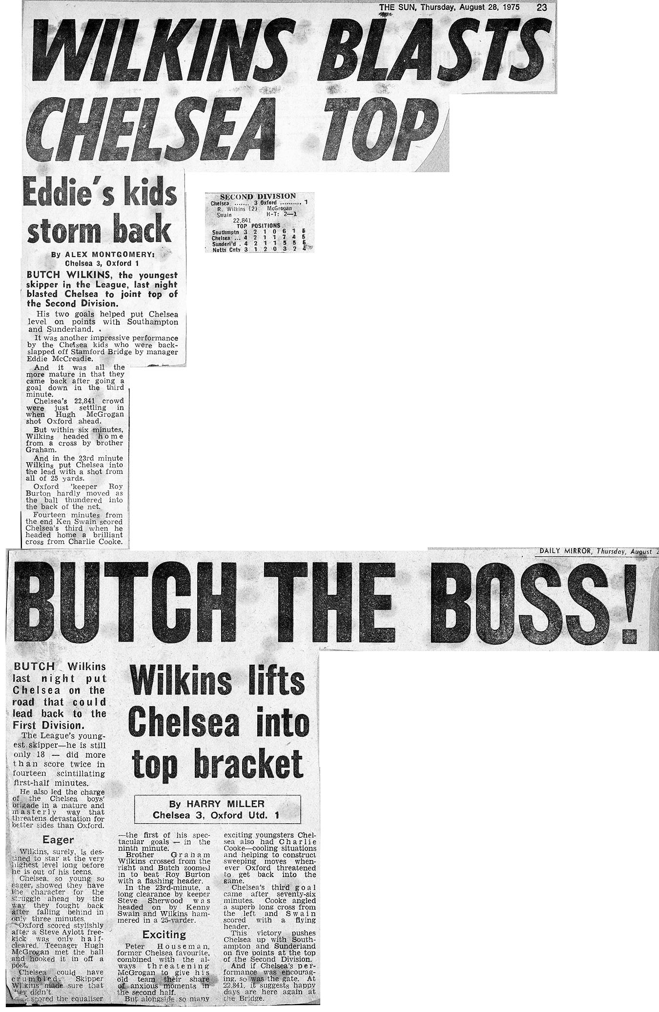 1 Steve Sherwood, 2 Graham Wilkins, 3 John Sparrow, 4 Garry Stanley, 5 Micky Droy, 6 John Dempsey, 7 Ian Britton, 8 Ray Wilkins, 9 Teddy Maybank, 10 Bill Garner, 11 Charlie Cooke |