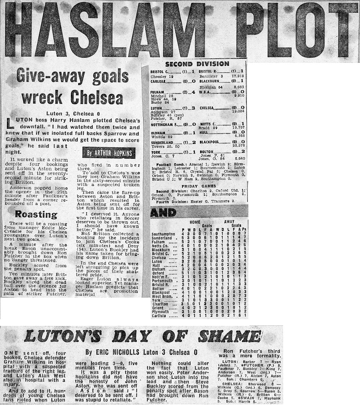 Luton Town (1) 3 Chelsea (0) 0