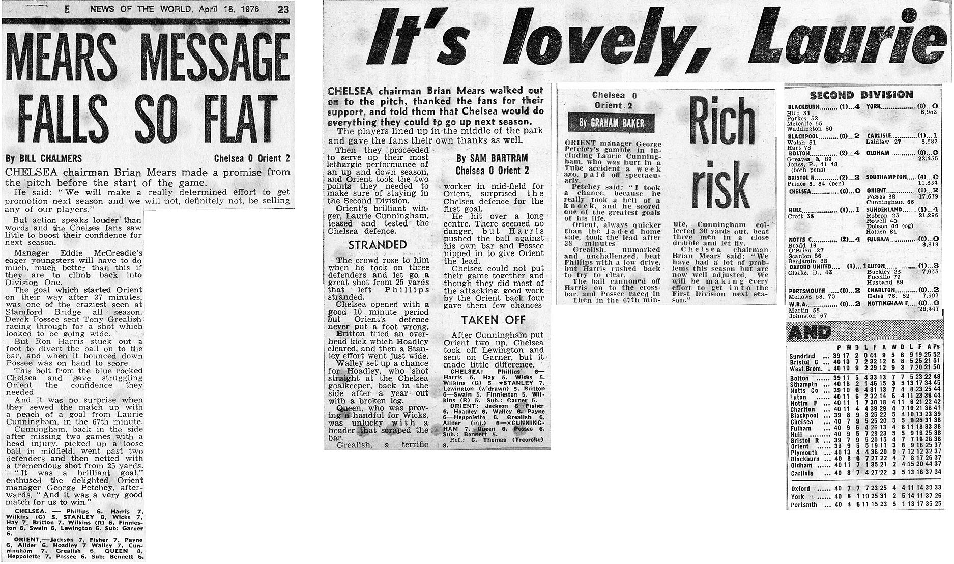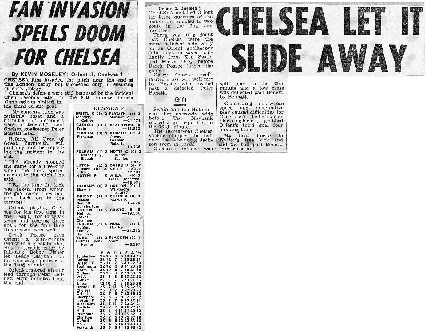 Chelsea (0) 0 Orient (1) 2