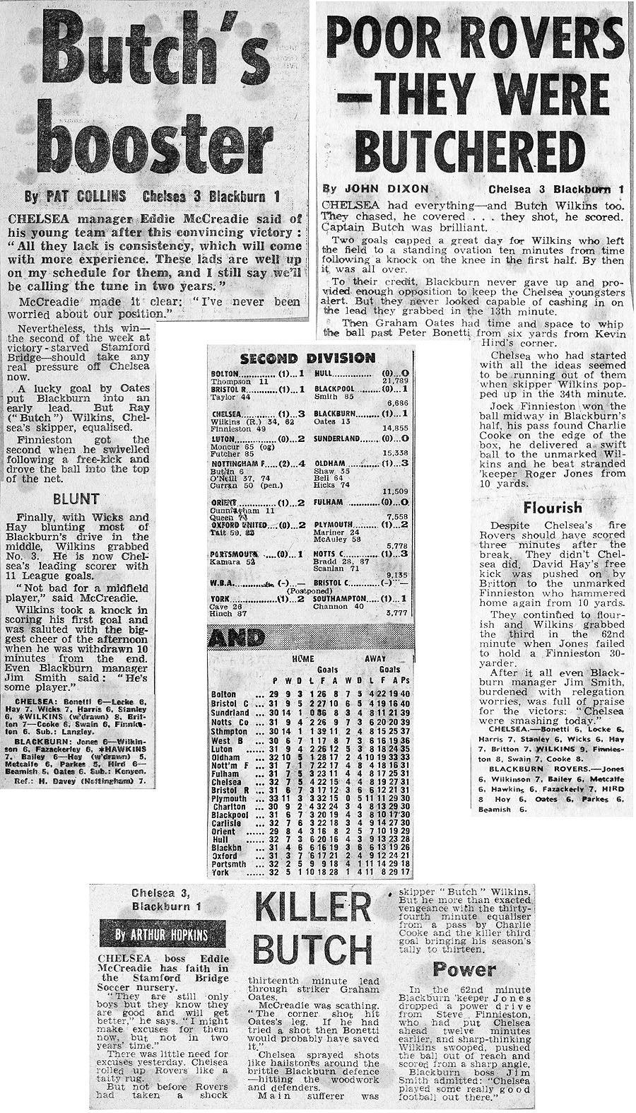 1 Peter Bonetti, 2 Graham Wilkins, 3 Ron Harris, 4 Garry Stanley, 5 Steve Wicks, 6 David Hay, 7 Ian Britton, 8 Ray Wilkins, 9 Bill Garner, 10 Ken Swain, 11 Ray Lewington |
