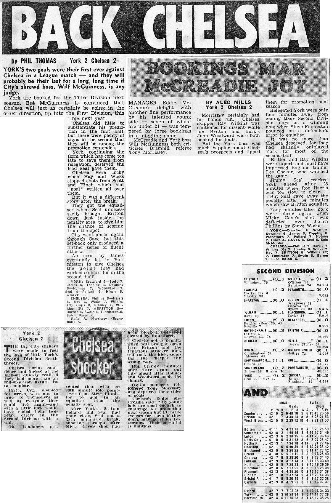 1 John Phillips, 2 Ron Harris, 3 Graham Wilkins (12 Brian Bason), 4 Garry Stanley, 5 Steve Wicks, 6 David Hay, 7 Ian Britton, 8 Ray Wilkins, 9 Steve Finnieston, 10 Ken Swain, 11 Bill Garner |