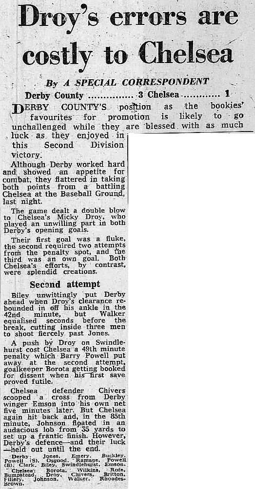 Derby County (1) 3 Chelsea (1) 2