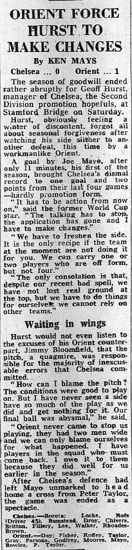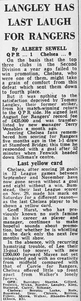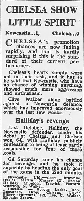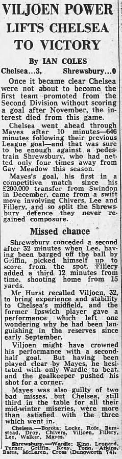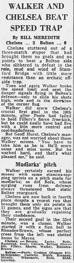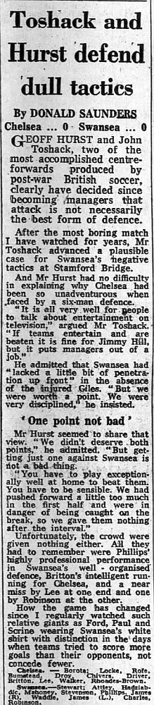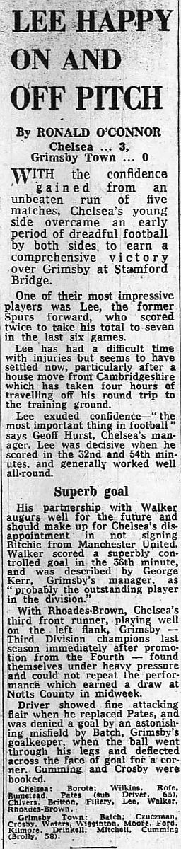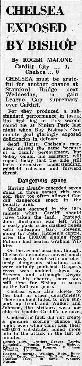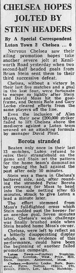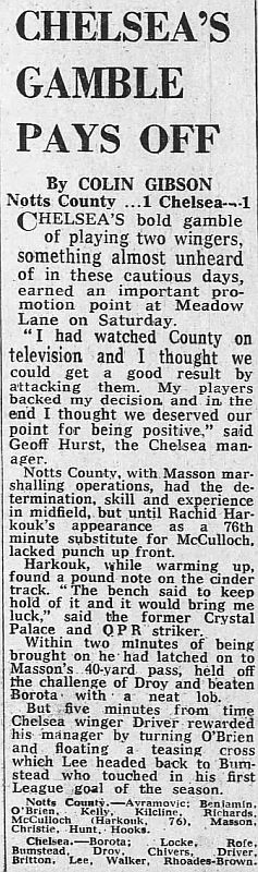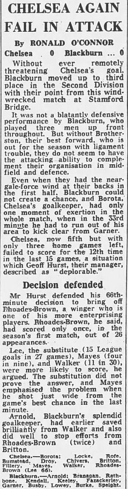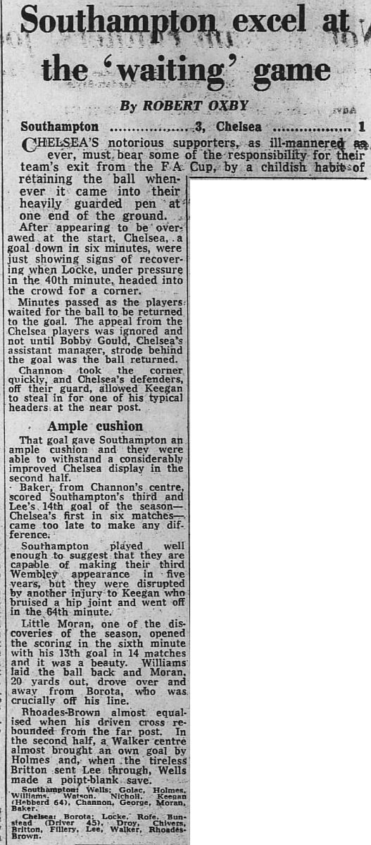 1 Petar Borota, 2 Gary Locke, 3 Dennis Rofe, 4 John Bumstead (12 Clive Walker 64), 5 Micky Droy, 6 Gary Chivers, 7 Colin Viljoen, 8 Mike Fillery, 9 Colin Lee, 10 Alan Mayes, 11 Peter Rhoades-Brown |