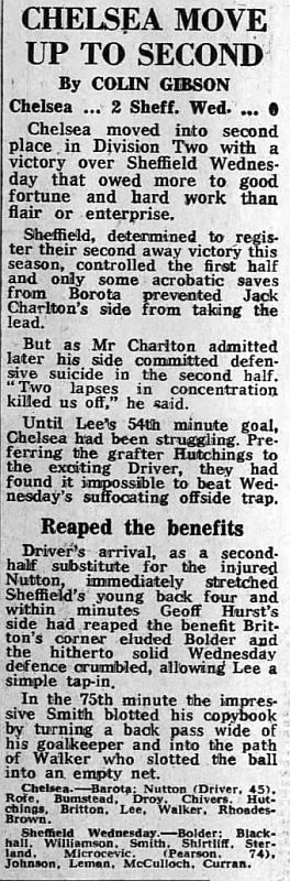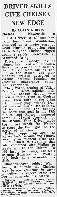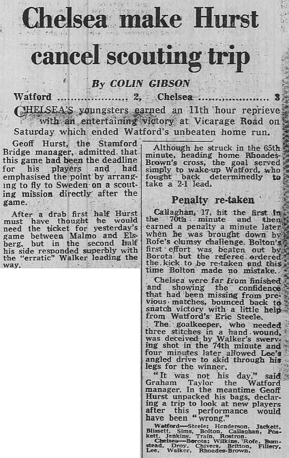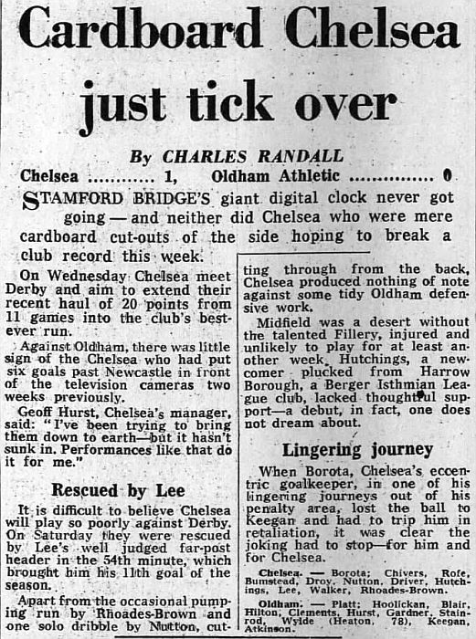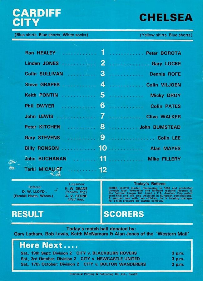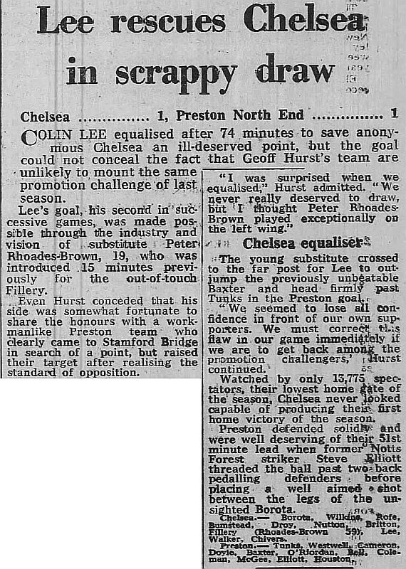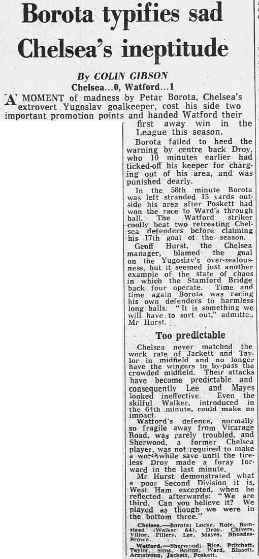 1 Petar Borota, 2 Graham Wilkins, 3 Dennis Rofe, 4 John Bumstead, 5 Micky Droy (12 Clive Walker 64), 6 Gary Chivers, 7 Ian Britton, 8 Mike Fillery, 9 Colin Lee, 10 Lee Frost, 11 Colin Viljoen |