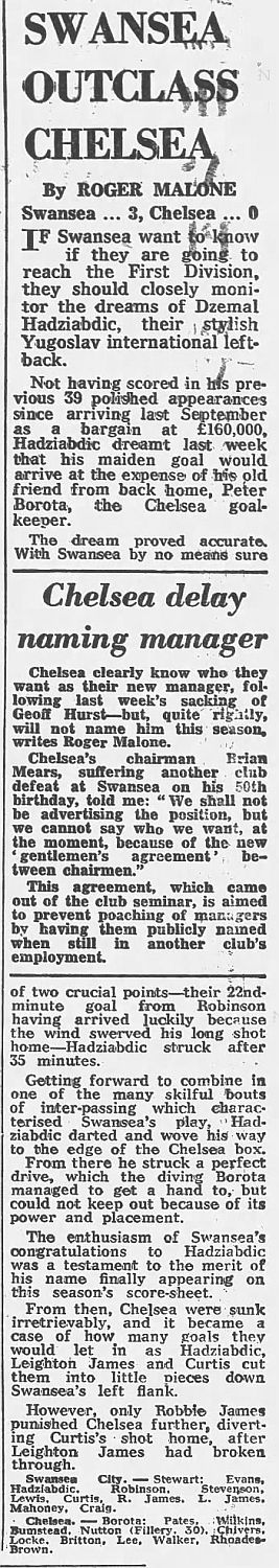 Swansea City (2) 3 Chelsea (0) 0