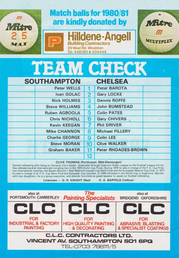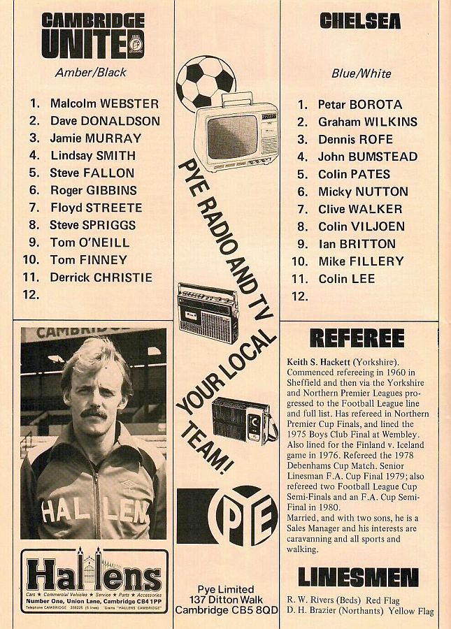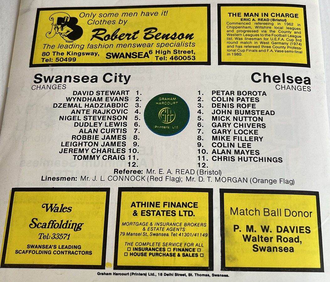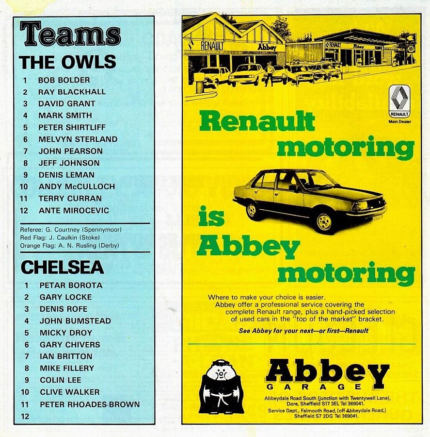 1 Petar Borota, 2 Graham Wilkins, 3 Dennis Rofe, 4 John Bumstead (12 Gary Chivers 35), 5 Mike Nutton, 6 Colin Pates, 7 Ian Britton, 8 Mike Fillery, 9 Colin Lee, 10 Clive Walker, 11 Colin Viljoen |