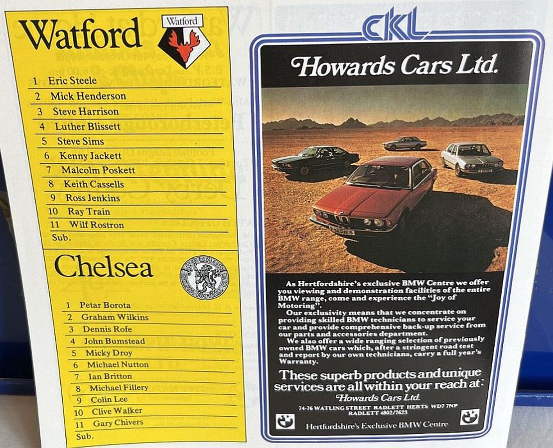 Steve Sherwood, Pat Rice, Keith Pritchett, Les Taylor, Steve Sims, Ian Bolton, John Ward, Luther Blissett, Gerry Armstrong, Kenny Jackett, Malcolm Poskett |