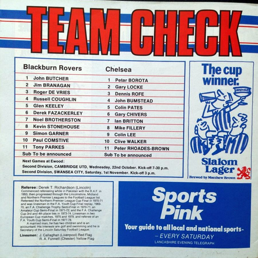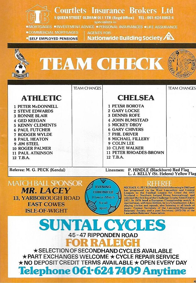 Peter Grotier, Steve Grapes, John Lewis, Alan Campbell, Keith Pontin, Phil Dwyer, Ray Bishop, Peter Kitchen, Gary Stevens, Billy Ronson, John Buchanan (Rod Thomas 25) |