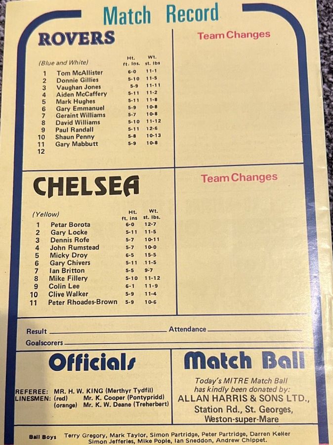 Bristol Rovers (0) 1 Chelsea (0) 0