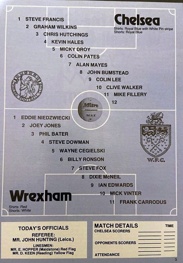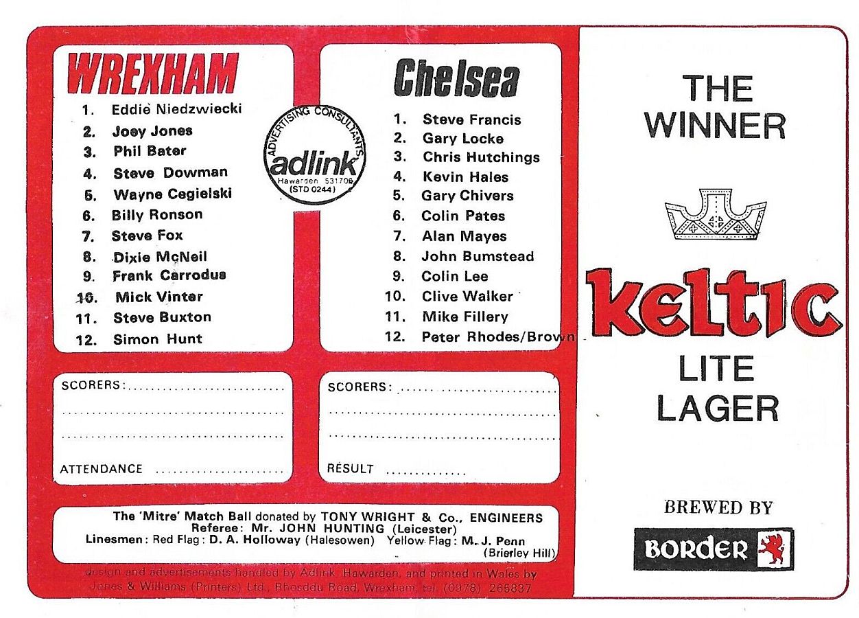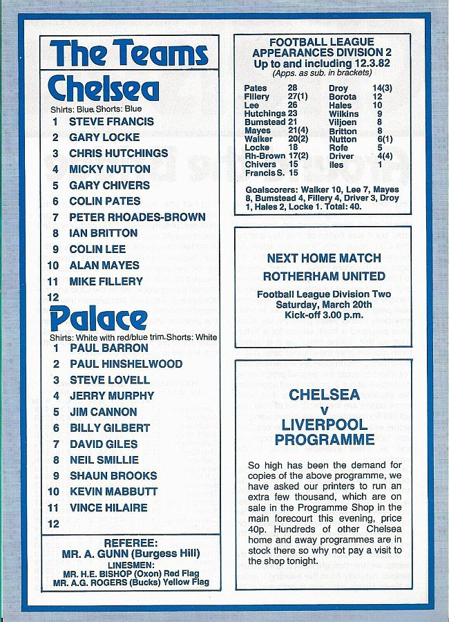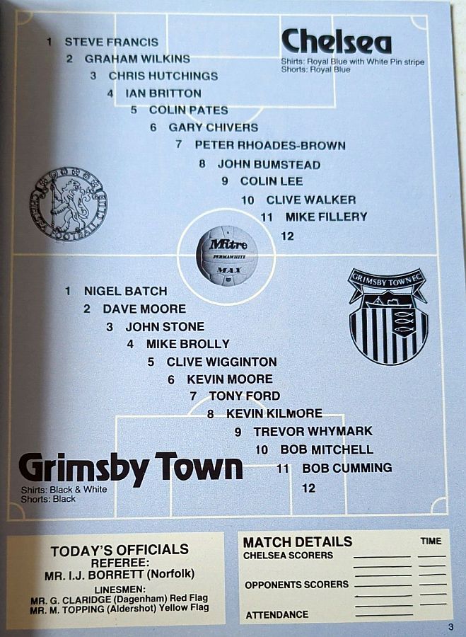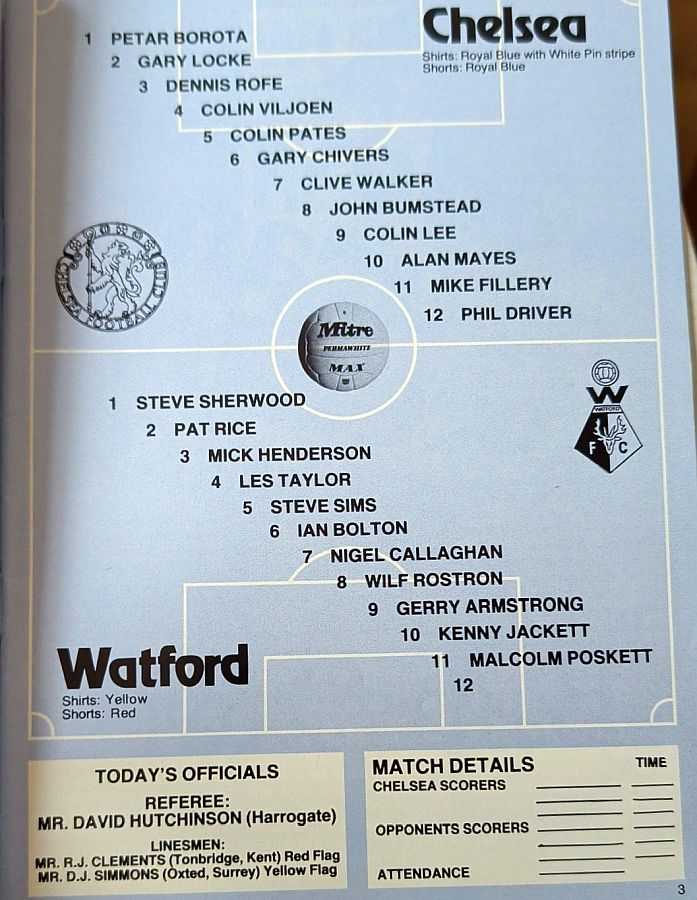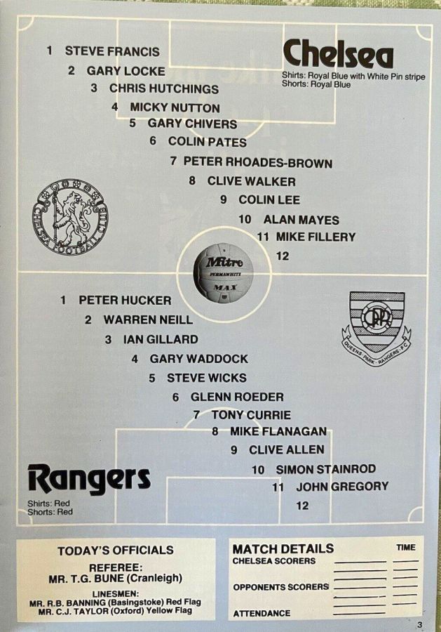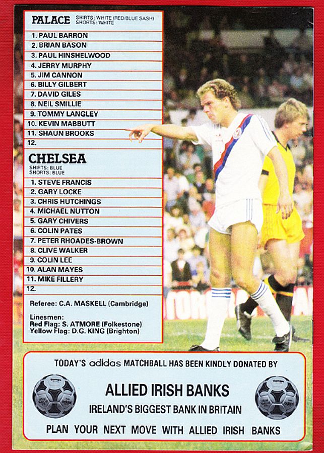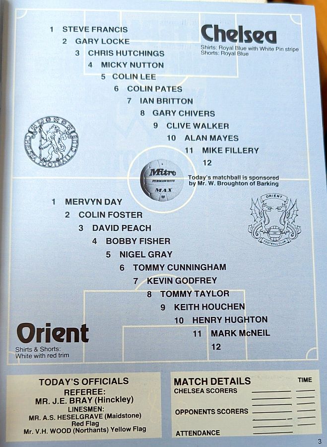 1 Steve Francis, 2 Gary Locke, 3 Chris Hutchings, 4 Colin Pates, 5 Micky Droy, 6 Gary Chivers, 7 Paul Canoville, 8 Clive Walker (12 Mike Nutton), 9 Colin Lee, 10 Alan Mayes, 11 Mike Fillery |