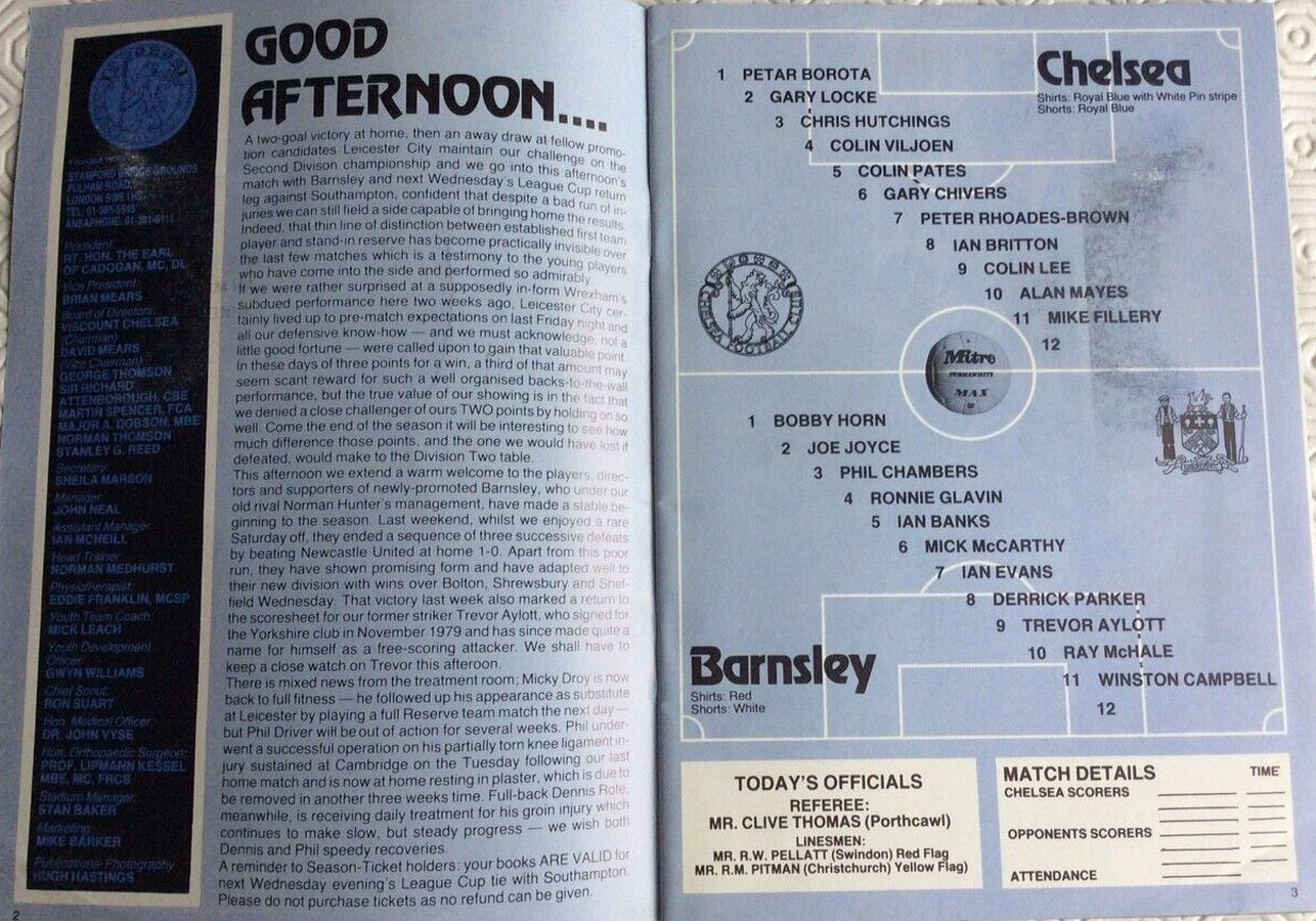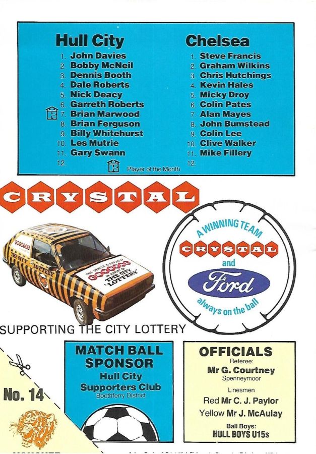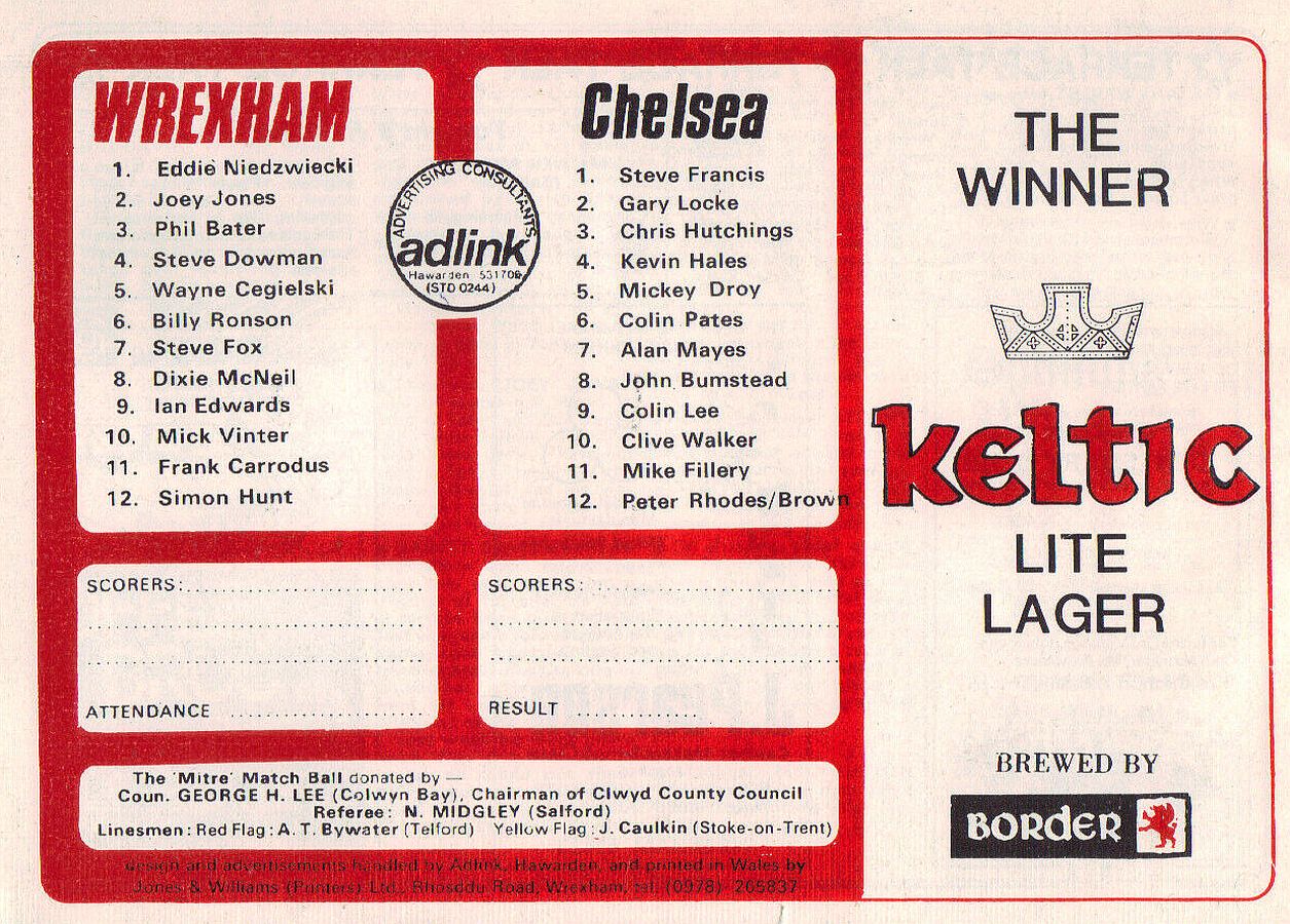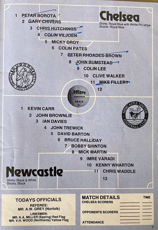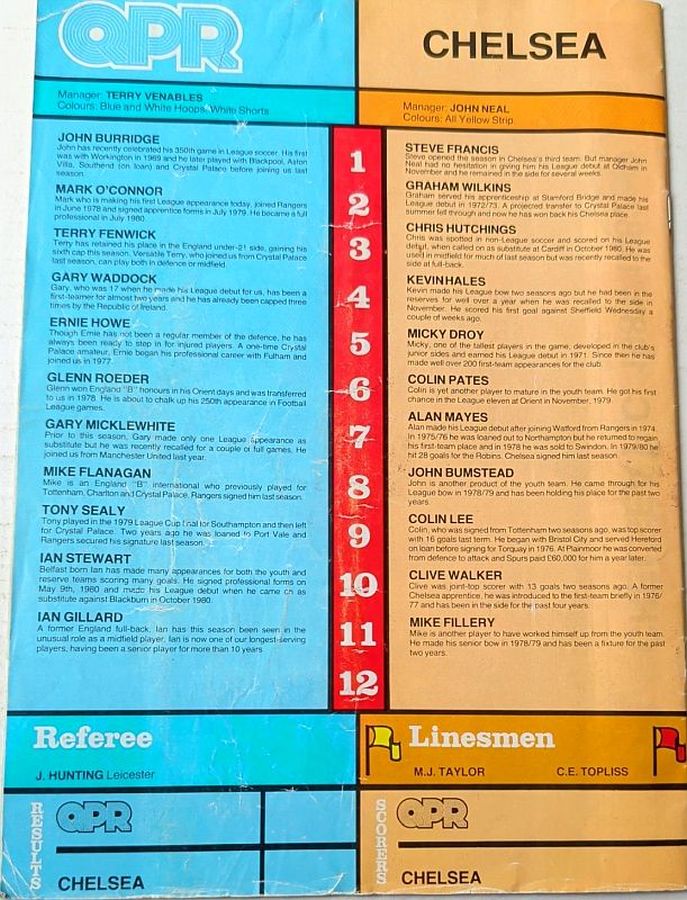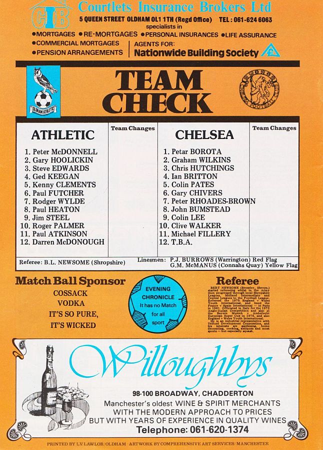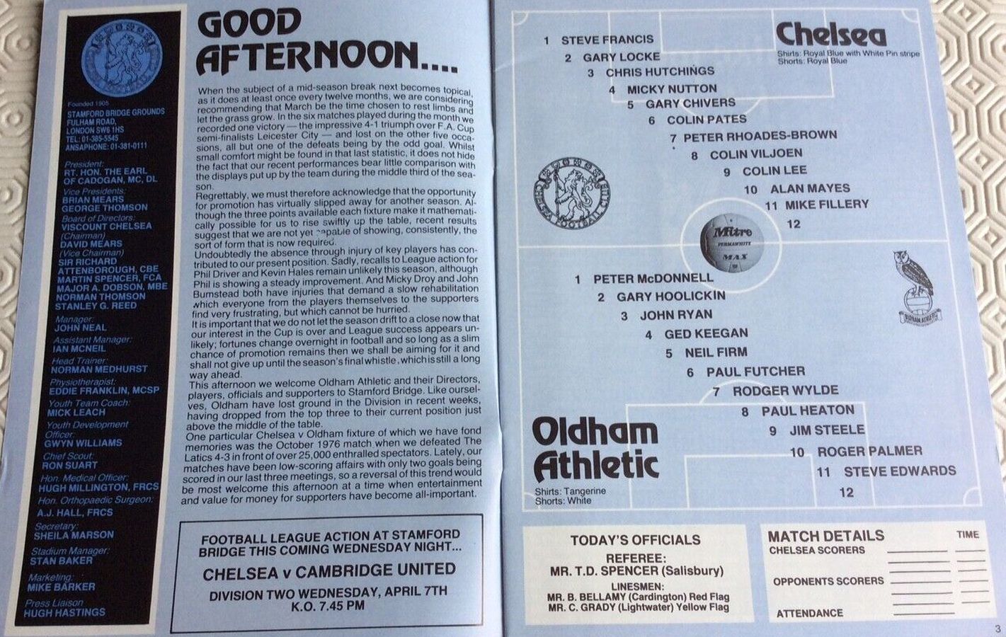 1 Steve Francis, 2 Gary Locke, 3 Chris Hutchings, 4 Colin Pates, 5 Micky Droy, 6 Gary Chivers, 7 Paul Canoville, 8 Clive Walker (12 Mike Nutton), 9 Colin Lee, 10 Alan Mayes, 11 Mike Fillery |
